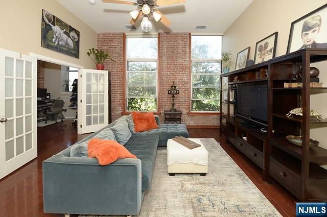 Welcome to The Mill, located on 12 stunning acres along the banks of the Passaic River. This site was once the Beattie Carpet Mill in the 1880's and is now this unique condo complex. When entering the unit you're greeted with soaring ceilings & dramatic 9 foot windows exposing natural light and serene river views! This beautiful unit boasts brick exposed walls, and a bright second bedroom/office suite. The primary bedroom suite overlooks the river crest, with a walk-in closet and immaculate bathroom. Kitchen is equipped with stainless steel appliances, laundry, and there are gleaming wood floors throughout the unit. Assigned parking is located close to the main entrance and NJ Transit to NYC. The Mill has beautiful trails along the river, a brand new gym, club house, and the pool is perfect for summer days.