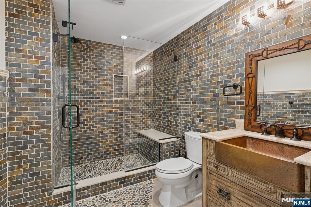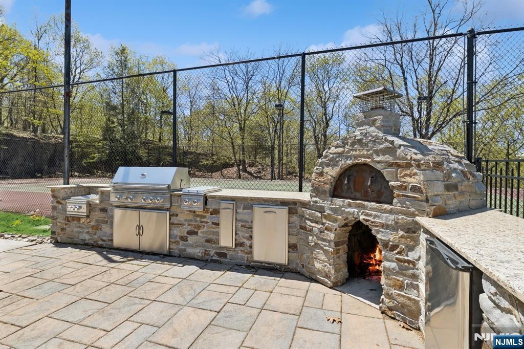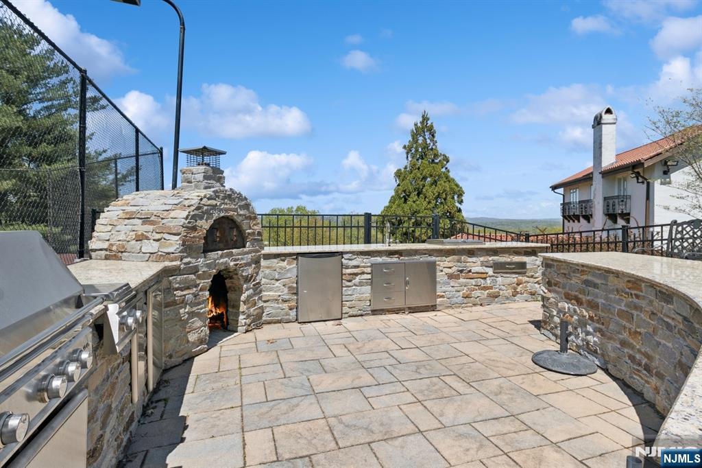 Set high atop 3.2 acres of manicured grounds, this magnificent villa offers resort style living with stunning mountain views and unparalleled tranquility and privacy. This exceptional property, rarely found in the Northeast, provides the feeling of a dream vacation destination in Central America or California, yet is only 30 minutes from NYC. The grounds are a true private oasis, with a heated pool, tennis court, and a fully outfitted outdoor kitchen. Multiple balconies and terraces create seamless indoor-outdoor living, where the breathtaking views transform with the seasons. The property offers 7,700 square feet of exquisite living space with an additional 3000 square feet of unfinished space to expand further. With a full interior renovation in 2018, every inch of this extraordinary home reflects master craftsmanship, sophisticated style, and effortless elegance. Designed for grand living and effortless entertaining, the estate features 8 bedrooms and 5.5 baths, a 3-stop elevator, whole-house generator, 5-zone central air, and 7-zone heating. The expansive chef’s kitchen opens into a sun-drenched breakfast room, while the primary suite offers a private balcony with amazing views. Enjoy luxuries such as a cedar closet, sauna, steam bath, wet bar, and changing rooms. In sought-after Franklin Lakes, 912 Cherokee Lane promises an unparalleled lifestyle of distinction, privacy, and beauty. Moments from everything, yet a world away.