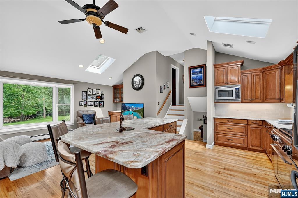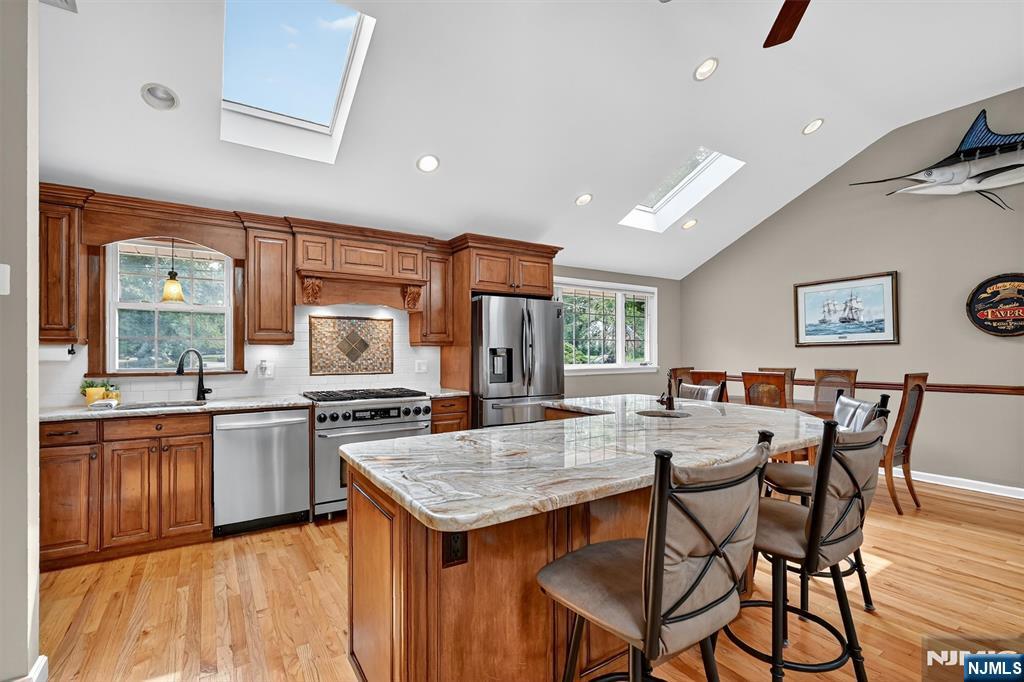 Gorgeous expanded sugar maple split offering over 2,000 square feet of well-designed living space. Plenty of sleeping quarters with 4 large bedrooms and 2.5 bathrooms, including a meticulously designed primary suite featuring hickory wood floors, a custom closet and spa shower system. This home blends comfort and style with an open-concept kitchen, soaring ceilings, game room, and oversized windows creating a bright and airy atmosphere. The kitchen is truly a chef’s delight, with custom maple cabinetry, detailed moldings, granite countertops, large center island, stainless appliances, and Dacor 6 burner cooktop. Step out to the deck where you can soak up a panoramic view of the natural landscape, local wildlife and perfectly maintained inground heated pool with safety cover for added security. Fully fenced in yard, finished basement with french drains around whole perimeter, 2 car garage, brand new leaf filters w/ ex-wide gutters, 6 zone sprinkler system and so much more! The best part is the award winning public schools and easy commute to NYC making this an opportunity that can’t be missed! Schedule your private showing today.