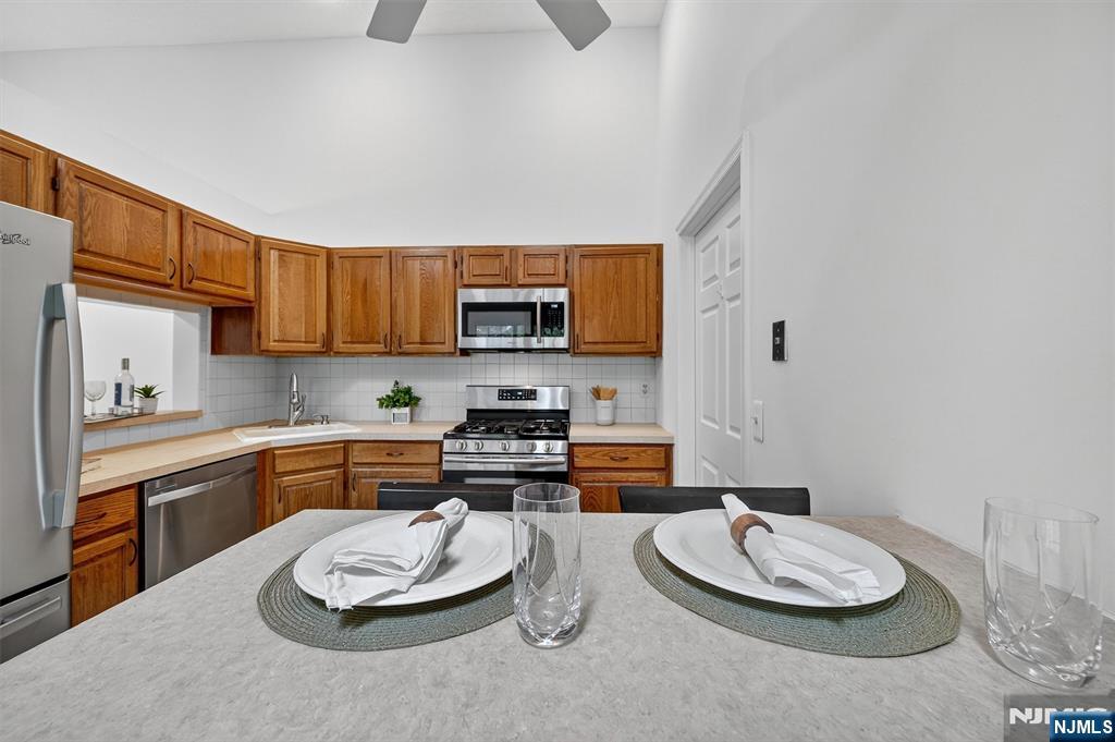 Experience comfort and convenience in this beautiful penthouse unit at Society Hill in Mahwah. This freshly painted 2-bedroom, 2-bath home offers a kitchen with stainless steel appliances, a dedicated dining area, and a living room with vaulted ceilings, a cozy wood-burning fireplace, and access to a private balcony. The primary suite serves as a peaceful retreat, featuring a walk-in closet and an updated en-suite bath. A second bedroom, full hall bath, and a bonus storage closet just outside the unit add to the home’s functionality. Residents enjoy low HOA fees and access to excellent community amenities, including a pool, tennis courts, clubhouse, and plenty of parking. Ideally located near top-rated schools, public transportation, major highways, parks, shopping, and diningâ€â€쳌this home truly offers the best of Mahwah living!