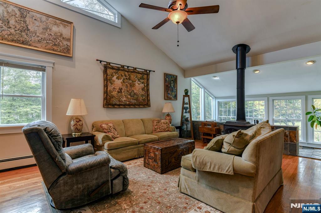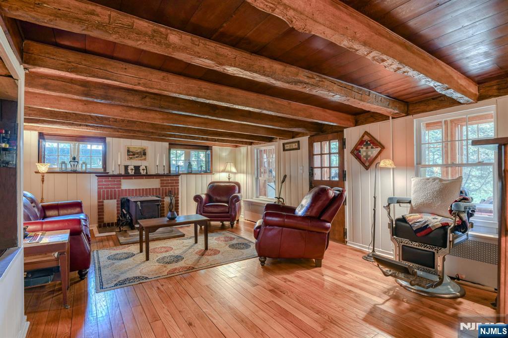 Historic Charm Meets Modern Luxury on 1.01 Acres in River Vale. Step into timeless elegance with this stunning historic home that perfectly blends classic craftsmanship and modern comfort. Set on over an acre of park-like grounds with majestic black walnut trees, Japanese maples, and lush landscaping, it offers a tranquil retreat just minutes from town and NYC. Inside, exquisite architectural details abound: coffered ceilings in the formal dining room, hand-hewn beams, and wide plank floors. The great room’s soaring 20ft ceilings lead to a solarium with wall-to-wall windows that flood the space with natural light, seamlessly connecting indoors and out. Enjoy cozy evenings by one of the home’s charming wood-burning stoves or entertain with ease in the chef’s kitchen and adjoining dining area that opens to a sun-drenched deck and stone patio overlooking the in-ground saltwater pool. The luxurious primary suite features a Jacuzzi tub, steam shower, and serene views. Upstairs includes a laundry room, two bedrooms, a full bath, and a finished attic with two flexible rooms ideal for guests, an office, or art studio. Additional highlights include a cedar sauna with hot tub leading to a private sunroom, and a two-car garage with an additional double-door storage am low taxes. Offered for the first time in over 40 years, this remarkable home is rich in history, comfort, and beauty: a truly one-of-a-kind River Vale gem.