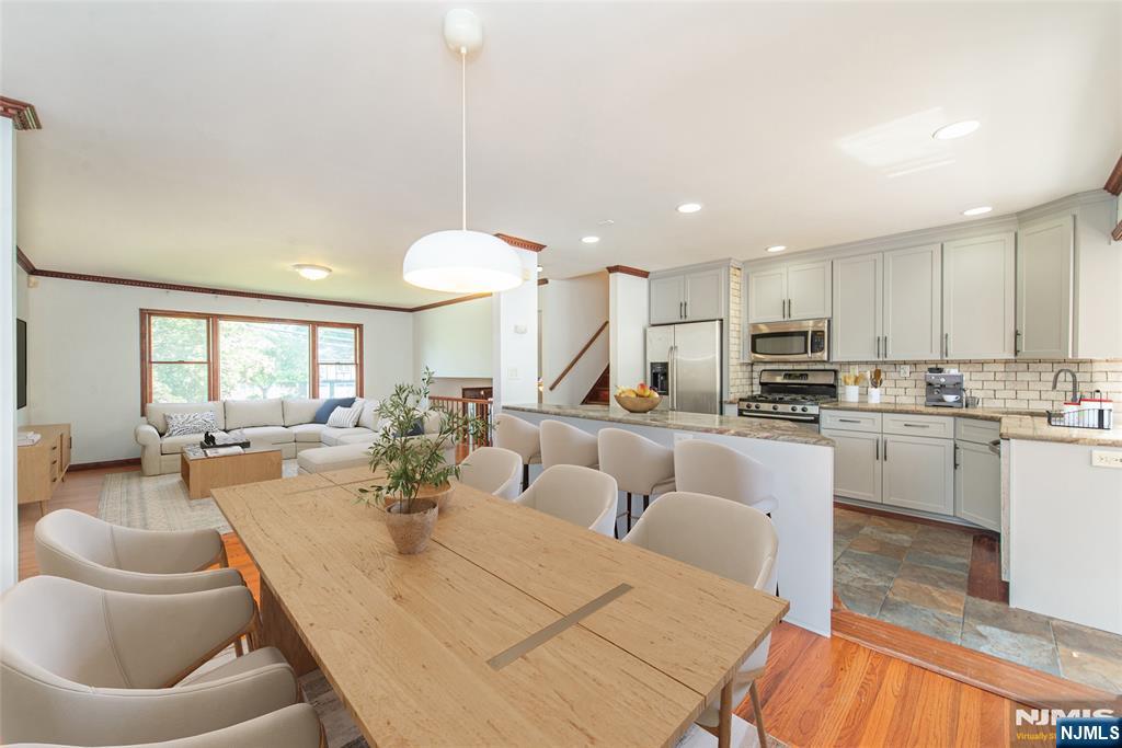 If heaven were a place on earth, it would be 728 Prospect, located in one of Bergen County’s most sought-after towns. This stunning home features 4 Bedrooms, 2.5 Baths, an oversized 2-Car Garage, & 2,500+ sq. ft. of luxury living space. Once inside, you'll be greeted to a Foyer adorned with natural stone flooring. Attention to detail is evident throughout with its gleaming hardwood floors, millwork, built-ins, & thoughtful design. The open floor plan offers a Living Room/Dining Room ideal for entertaining. Next, imagine preparing your favorite dish in the Modern Eat-in Kitchen while guests gather around the island. The Great Room highlights a fireplace as its focal point, while a Half Bath, Laundry Room, & Sunroom complete the main level. Upstairs, the Primary Suite includes a W.I.C. & a spa-like ensuite bath. Three additional Bedrooms & a Full Bath complete the second floor. The fully finished Basement offers a versatile space for recreation, fitness, or a home office. Outdoors, the park-like backyard serves as both a private retreat & an entertainer’s paradise, with a multi-tiered deck & perfectly manicured lawn. Enjoy all that Glen Rock affords you with access to top-rated schools, beautiful parks, fine dining, convenient shopping, & an easy commute to NYC.
