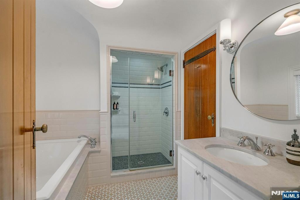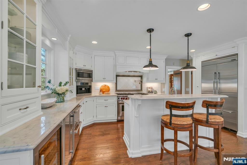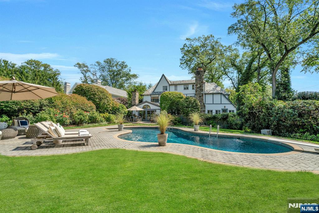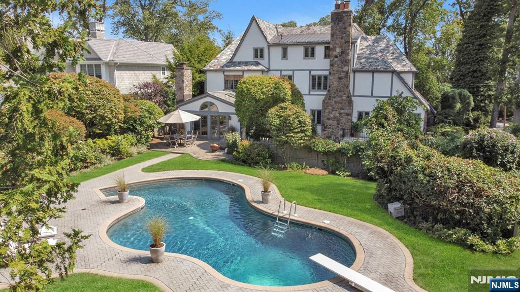 Welcome to 350 Highland Avenue, a sophisticated Tudor that sits with timeless grace on over a half-acre in Ridgewood’s coveted Old Country Club section. Exuding elegance and modern comfort, this meticulously maintained home highlights original architectural details, custom millwork, hardwood floors and newer leaded windows all while blending seemlessly with thoughtful updates. A gracious foyer with sweeping staircase opens to oversized living and dining rooms, perfect for entertaining. A stunning custom wine room, a true showpiece, artfully designed to showcase over 250 bottles of your finest collection. The first floor also features a private office with balcony. At the heart of the home is a stunning white kitchen with Calacatta marble counters and top-of-the-line appliances, opening to a vaulted family room with glass doors to the outdoors. Step outside to the private resort-like property with a heated saltwater pool, patios, and lush landscaping create the ultimate escape. Over 6,000 sq ft of living space, the home offers 6 bedrms, 4 full and 2 half baths, including 5 bedrms on the 2nd flr with a Jack & Jill suite. The 3rd flr has a 2nd office, bedrm, bath, and walk-in storage. Finished basement w/high ceilings offers rec room, gym, updated laundry rm, pantry, mudroom, half bath, and attached garage with EV Charger and full house generator. This extraordinary home combines privacy, sophistication, and an elevated lifestyle in one of Ridgewood’s most premier