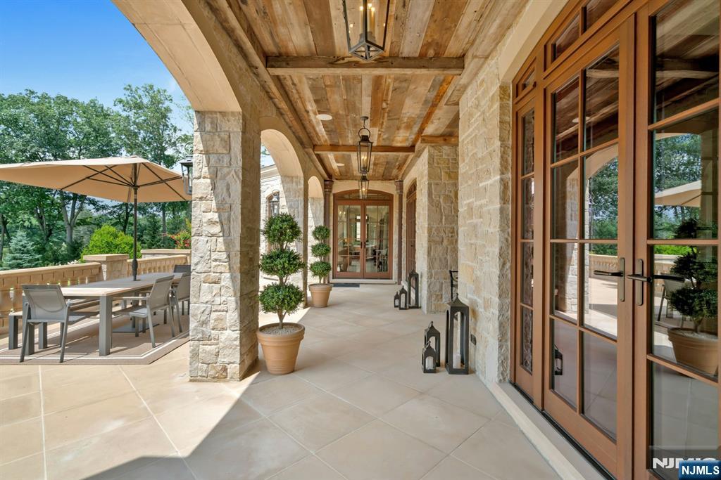 Beyond a gated approach on 4.4 serene acres, this Saddle River estate evokes a timeless French chateau, fusing refined architecture with resort living. The grounds showcase a sun splashed pool terrace with spa, formal gardens, playground, pergola and an expansive great lawn. Terraced open and covered patios span each level for seamless indoor/outdoor flow. A 4 car garage and single vehicle porte cochere complete the elegant arrival. For equestrians, a four stall stable with bonus space and fenced grass pasture/paddock elevate the offering. Inside, an elevator services three meticulously finished levels encompassing 25 rooms, 6 ensuite bedrooms, 7 full baths, and 2 guest baths. A grand foyer with sweeping staircase introduces impeccable craftsmanship and gracious scale. The main level includes formal sitting and dining rooms, a mahogany office/library with fireplace, and a family living area with informal dining and a chef's kitchen. The private primary suite features a foyer entry, fireplace, dual walk in boutique closets, a spa inspired bath, and a secluded patio; four additional ensuite bedrooms, full laundry, and a bonus room complete this floor. The walkout lower level is designed for wellness and play: a full ensuite bedroom, dual fitness rooms, massage room, sauna, media area, lounge with billiards, and a climate controlled wine cellar with tasting area. A partial kitchen opens to the covered patio and pool terrace, ideal for grand entertaining and everyday luxury.