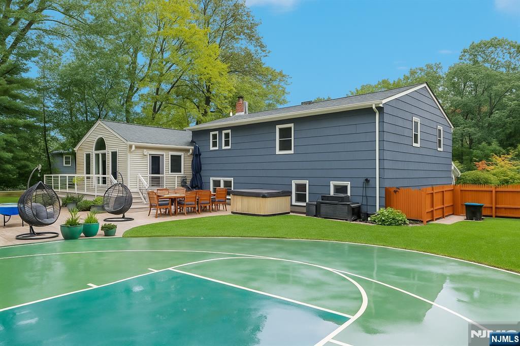 Beautiful 5-bedroom, 2.5-bath home nestled in highly desirable northern River Vale. This home perfectly combines modern comfort with timeless elegance. Enjoy an open-concept kitchen with custom cabinetry, a large center island, and seamless flow to bright living and dining spaces ideal for entertaining. The finished lower level includes a private home theater for movie nights or game-day gatherings. Step outside to your own backyard oasis featuring a heated in-ground pool, relaxing hot tub, soothing waterfall feature, outdoor fireplace, and basketball court â€â€쳌 creating the ultimate resort-style retreat right at home. Surrounded by lush landscaping for privacy and tranquility. Conveniently located near top-rated schools, parks, shopping, dining, and easy NYC transportation. A rare opportunity to own a home that truly has it all in one of Bergen County’s most sought-after communities.