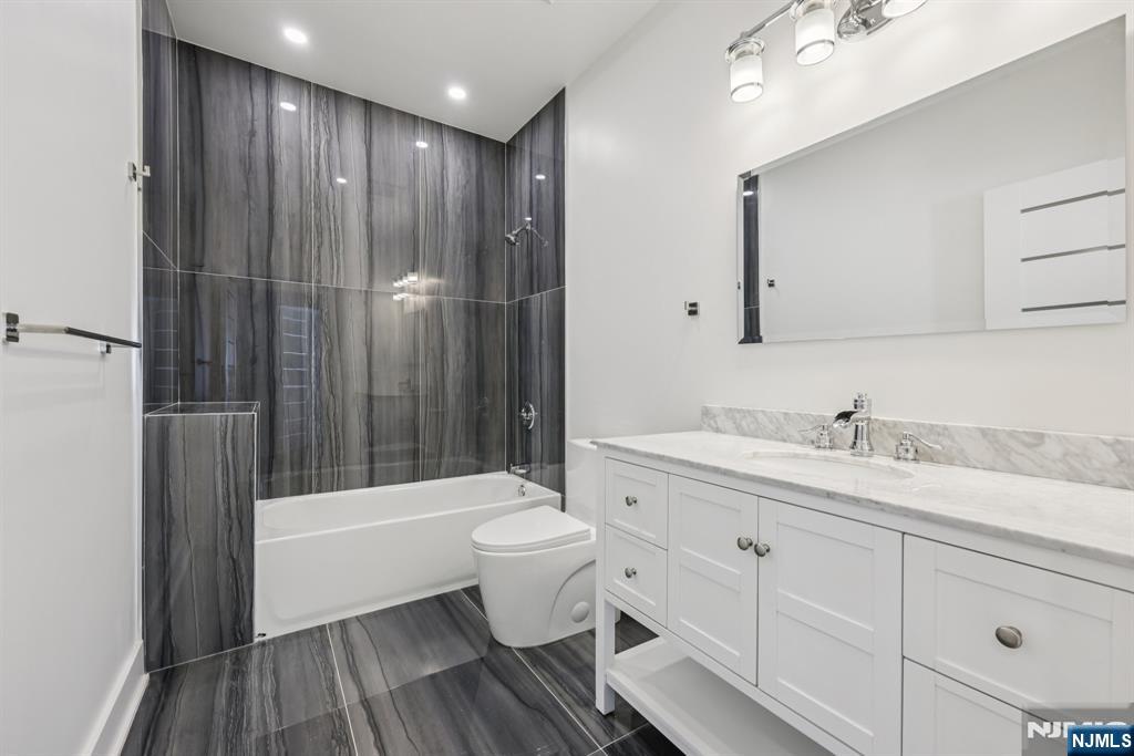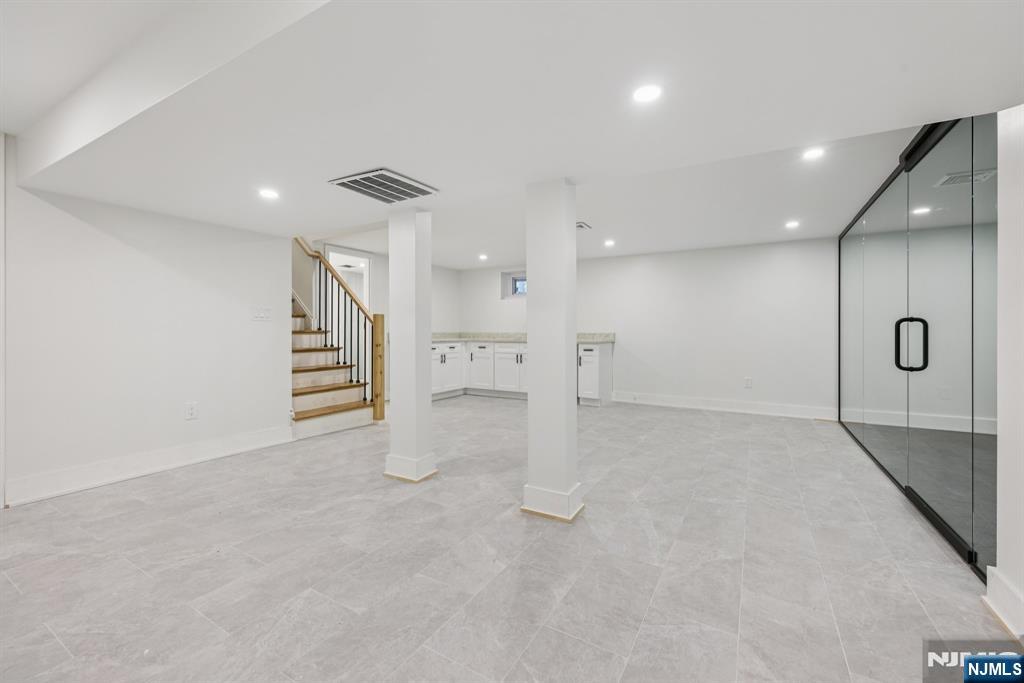 Sophisticated New Construction Offering Elevated Living Experience modern elegance in this stunning new build atop an existing foundation. Featuring 4 bedrooms and 4.5 baths, including a first-floor junior suite and a serene upstairs primary retreat with spa-inspired amenities. Main Level Highlights: Designer kitchen with double-hung cabinetry, under-cabinet lighting, and quartz waterfall island. Seamless flow through kitchen, dining, and family room with electric fireplace. Sitting room, powder room, and dramatic two-story entry with coat closet. Junior suite with full bath (SOT) and soaring ceilings Second Floor Retreat: Private primary suite with walk-in shower, LED mirrors, and tray ceiling. His & Hers custom walk-in closets. Two additional bedrooms, full bath (SOT), and spacious laundry room. Lower Level Lifestyle: Home gym and theatre setup with ambient lighting Recreation room with wet bar Full bath with walk-in shower and mechanical room Premium Features: European-style windows with dual airflow options Sleek European doors with hidden hinges and magnetic closures 3-zone central air, sprinkler system, pull-down attic storage Trex deck porch, bluestone patio and walkway Fresh landscaping, 2-car garage, and parking for 5 vehicles Prime Location: Close to downtown, top-rated schools, and everyday conveniences. Enjoy access to one of the state’s premier school districts in a home that blends luxury, comfort, and functionality.