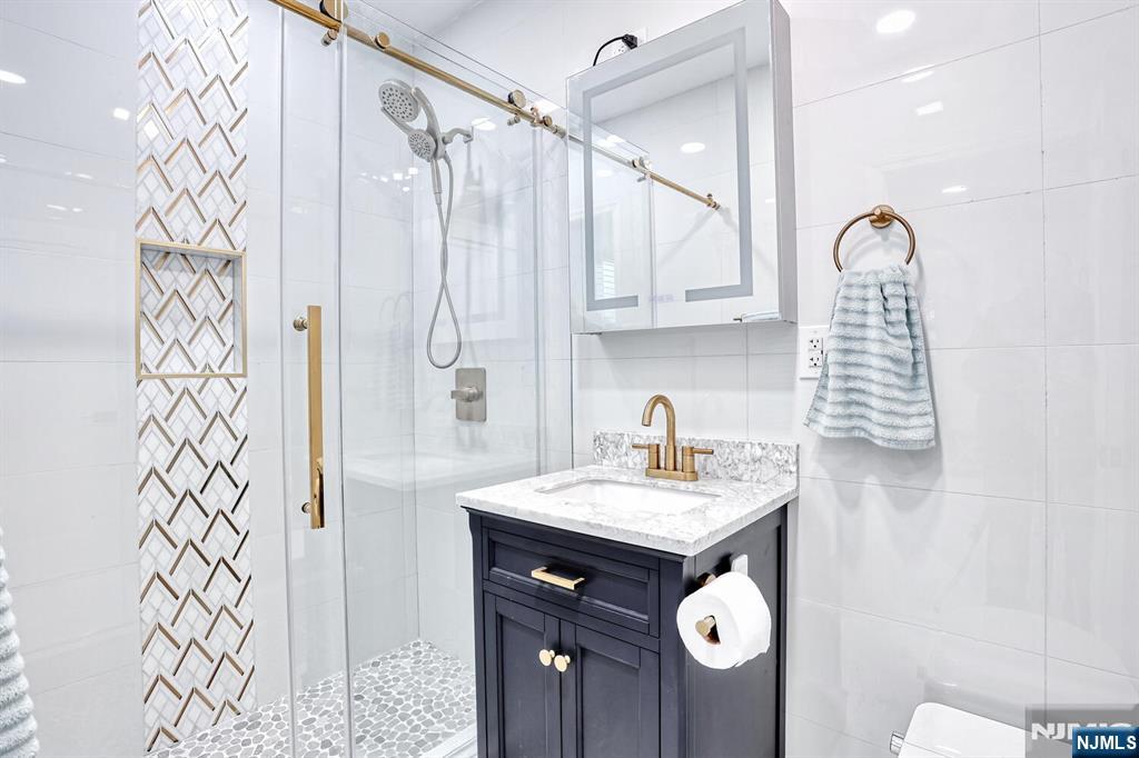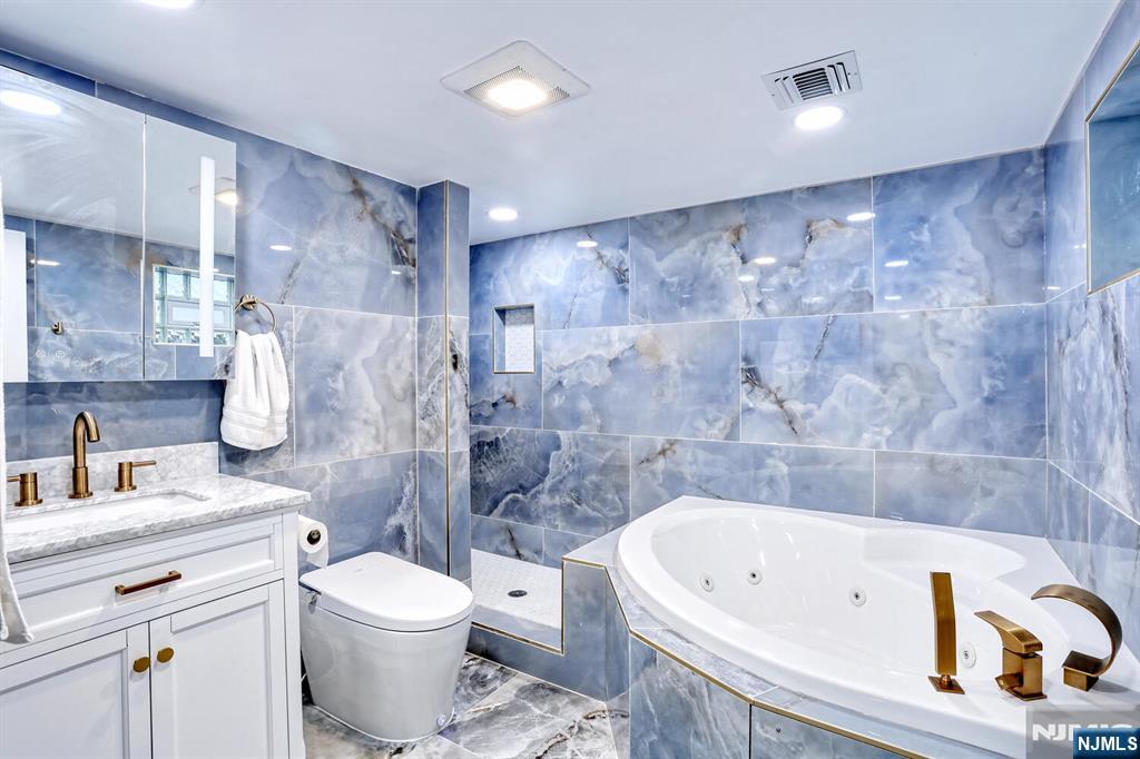 The best location in Fair Lawn: 2 blocks from Memorial Middle School, pool, park & dog park. Houses of worship, buses to NYC & in NJ, are right out. Stunning sun lit fully renovated over 3,000sqft house. New roof, floors, privacy fence, gorgeous paver driveway for 5 cars, multi-level central AC & heating, 200amp electric panel. Gorgeous gourmet kitchen with high-end Forno & Cafe appliances, quartz counters, double sink, huge island with wine cooler & microwave. Marble electric fireplace. Professional 48â€Â쳌 stove - 10 burners, 2 ovens, & 48" exhaust fan. Automatic blackout remote controlled blinds. Large windows. High ceilings. Recessed lighting w dimmers. 5 king size bedrooms with walk-in closets. 5 stunning bathrooms w smart toilets, bidets, LED med cabinets & vanities with marble counters. Large enclosed front porch/Florida room has mudroom area & coffee nooks for a large family. Glamorous 2 bedroom 2 bathroom suite located on the 1st floor. 3 bedrooms & 2 bathrooms located on the 2nd floor. 5th 4pc windowed bathroom with shower & jacuzzi located in the finished basement with separate entrance, huge living space & 2 windowed bonus rooms/offices. Laundry room with high-end washer & dryer. Picturesque yard with emerald grass. 5 min drive or15 min walk to FLHS. Marina is 5 min drive. The proximity of the river brings clean air and easy breathing. The house located on a hill, so flood insurance isn’t required. The basement was never flooded. New built-in sump pump. O
