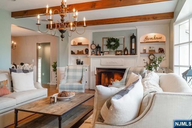 French Country meets Farmhouse Modern in this gorgeous & completely remodeled SF residence. 4BR/2BA home features a living room with exposed wood beams, a focal point fireplace, & built-in bookshelves. Dining room with French doors, leading to the back deck & sweeping yard. The kitchen highlights plentiful cabinetry, quartz countertops, SS appliances, & a farmhouse sink. An expansive family room or 4th bedroom leads to a first-floor MBR suite with sitting area, walk-in closet & master bathroom. An additional bedroom & full bathroom complete this floor. The second level houses an additional bedroom. A three-season sunroom leads to the stunning outdoor space with luxuriant landscaping! Gunite heated pool surrounded by a full paver patio & gas fire pit. Finished basement with full bath and kitchen. 2 Car Garage parking & driveway. Every detail has been attended to, with an unmatched appeal to luxury, form, & function!