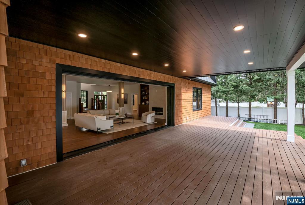 Introducing a truly one of a kind new construction in the heart of River Vale! From the moment you arrive, this home commands attention with its striking curb appeal. Step inside to discover white oak flooring throughout, bathed in abundant natural lighting. 10 foot ceilings enhance the open layout, elevating the space and flow. The heart of the home is the chef’s kitchen, with a massive quartzite island, high end Viking appliances, a spacious pantry, and editorial worthy finishes. The adjacent rotunda-style dining room offers gorgeous sunset views. A 25 foot Anderson sliding door creates a seamless connection between indoor and outdoor living, complimented by ample trex deck. The first floor includes a bedroom, dedicated office, and two full bathrooms, offering flexible living arrangements. Upstairs, the luxurious primary suite features coffered ceilings, a large custom closet, and a spa-like bathroom perfect for decompressing. Three additional en-suite bedrooms ensure privacy and comfort for all. A bonus room adds versatility for a playroom, home gym, or second office. The nearly 2,500 sqft basement with soaring ceilings is ready to be transformed into your dream space. Every detail from foundation to finishes was thoughtfully selected. Located in a Blue Ribbon school district, within close proximity to NYC transportation, this is a rare opportunity to own a high quality custom built residence of this caliber!