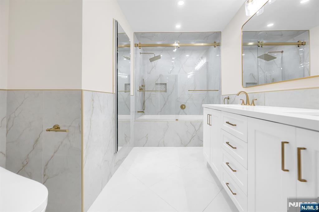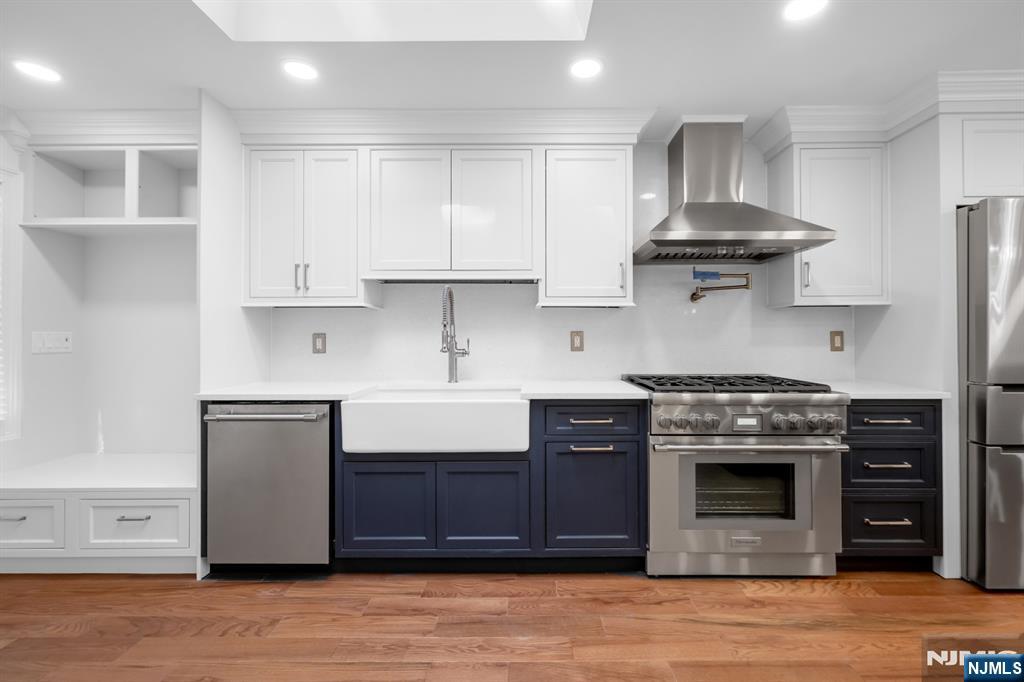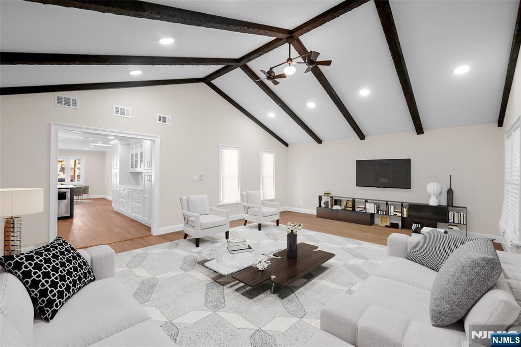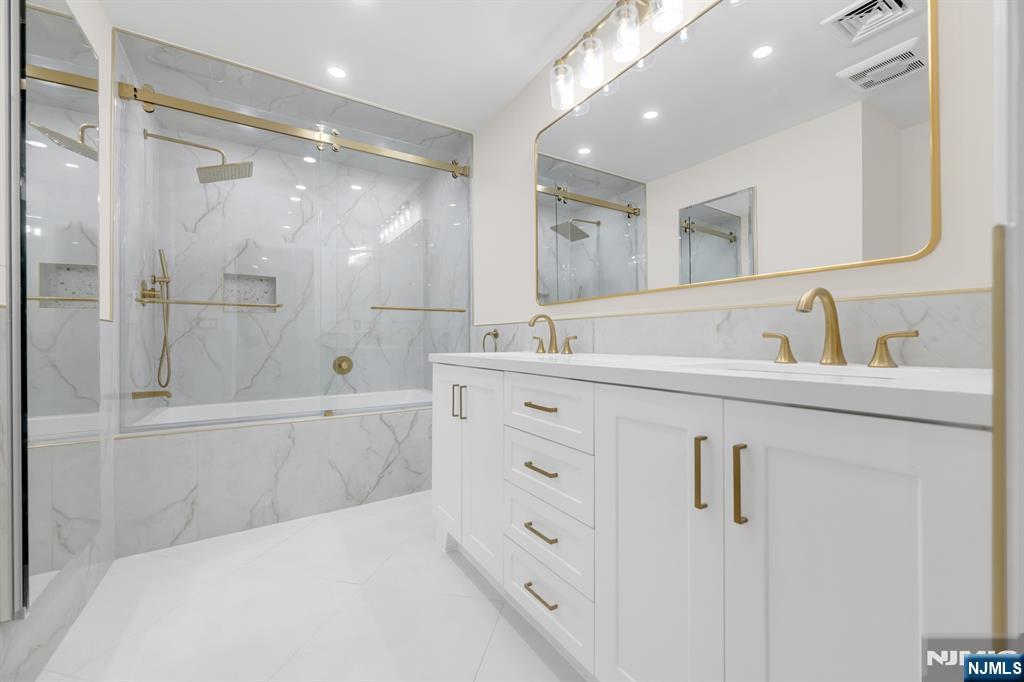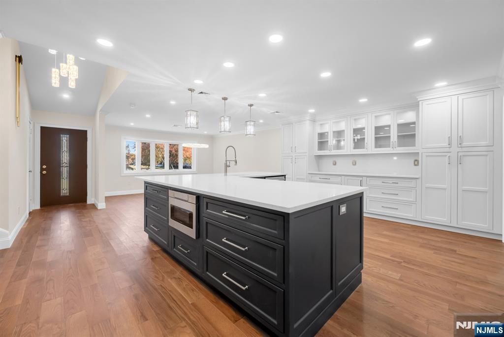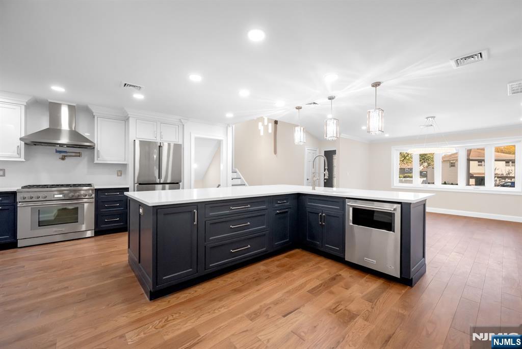 Incredible Expanded Split Level in the heart of Fair Lawn with a spacious, modern layout offering 5 bedrooms and 3.5 bathrooms. Fully renovated with exceptional finishes throughout. The chef’s kitchen is the heart of the home, featuring a massive center island with sparkling quartz countertops, a Thermador stove, SS appliances, 2 dishwashers, & abundant cabinetry. The home continues to impress with a stunning, oversized family room showcasing vaulted ceilings and beautiful wood beams. 3 bedrooms on the top level including a large primary with WIC & gorgeous en-suite bathroom. 2 bedrooms on the ground level with a private entrance, plus a fully finished basement offering even more space. Premium upgrades include 4-zone central air, radiant heated flooring, Toto toilets, a jetted tub, sprinkler system, EV charger, & 2 sets of LG washer/dryers. Outside, a large deck overlooks the private backyard. An attached garage and oversized 4-car driveway provide exceptional convenience. Located on a quiet, tree-lined street close to shopping, parks, houses of worshop, & NYC transportation. A rare opportunity to own a truly spacious, beautifully upgraded home in a prime Fair Lawn location.