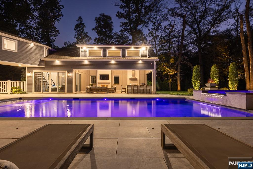 Welcome to this stunning luxury estate, offering a perfect blend of sophistication, comfort, and resort-style living. From the moment you arrive, the circular driveway, elegant uplighting, and manicured landscaping set the tone for what awaits inside. Step through the front door and experience exceptional craftsmanship throughout every space. Custom wallpaper, designer finishes, and thoughtfully curated details create a warm yet refined atmosphere. The gourmet kitchen is a chef’s dream, featuring a 64-inch refrigerator and freezer, double wall ovens, a built-in microwave, a farmhouse sink with filtered water, and a spacious wet bar with a wine fridge and sink, perfect for entertaining. Sliders from the kitchen open directly to the backyard patio, making indoor-outdoor living effortless. A separate pantry and abundant cabinetry ensure both beauty and function. Enjoy multiple living and entertaining spaces, including a formal dining room, a living room with a cozy gas fireplace, and a screened-in porch off the living room that also opens to the backyard and a powder room. The office, set behind elegant French doors, features custom cabinetry and shelving, creating a perfect work-from-home environment. The first-floor guest suite offers a walk-in closet and a private en suite bath, providing a comfortable retreat for visitors. Upstairs, the primary suite boasts a private deck, custom closets, and a luxurious en suite bathroom. Two additional bedrooms share a stylish Jack
