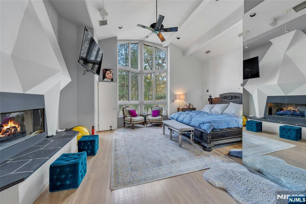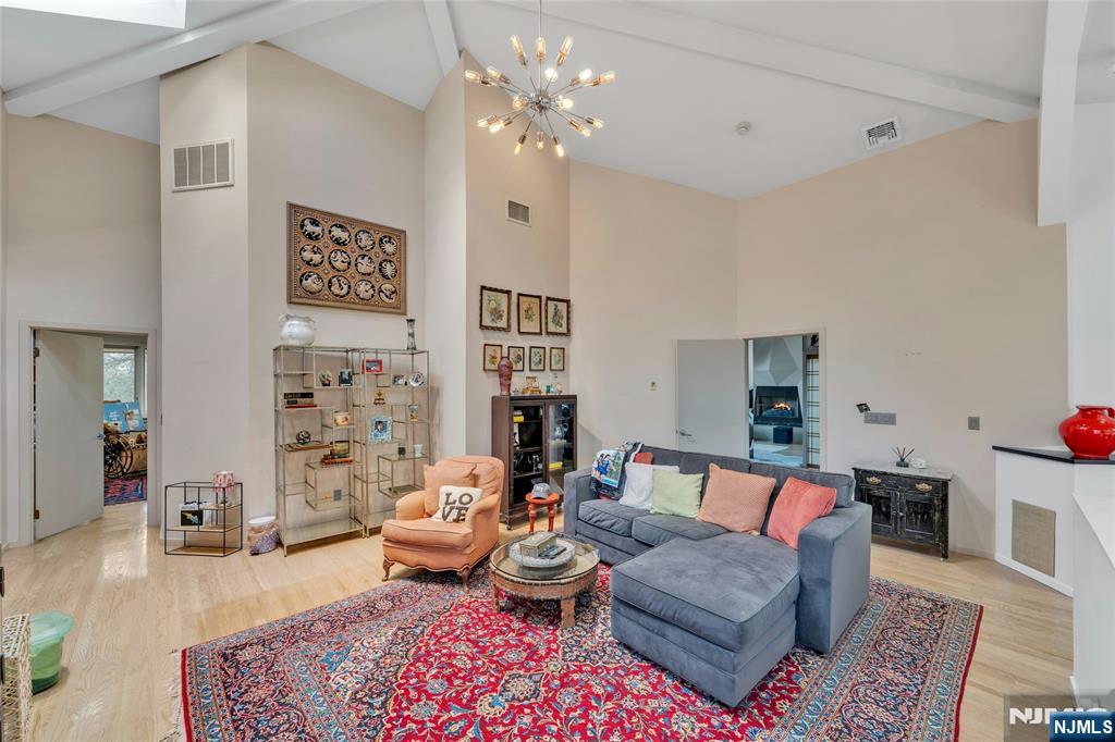 Designed by renowned architect Eleanore Pettersen, inspired by Frank Lloyd Wright, this chic & stunning masterpiece is situated on 1.86 acres along the picturesque Saddle River. The 5-bedroom, 3.5 bath home offers approx. 5100 sf of unique living space including a wine room on the 1st floor, & has an open floorplan offering spectacular views of the natural setting. Exterior amenities include a large deck for entertaining, 250-foot stone wall, lush landscaping & a tennis court. This is a true opportunity for the discerning buyer..
