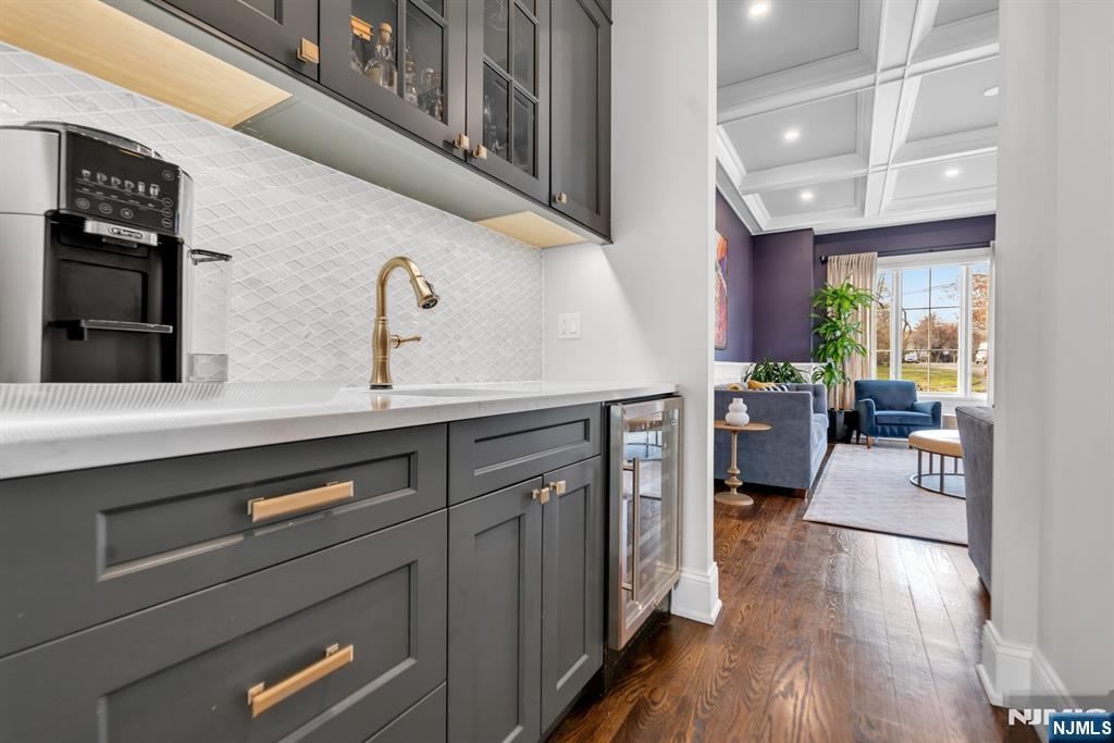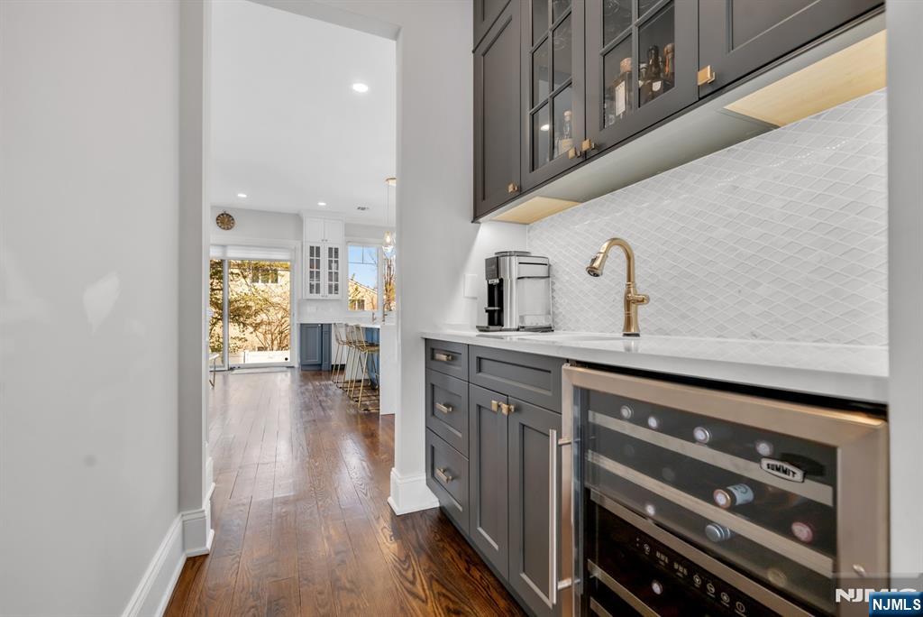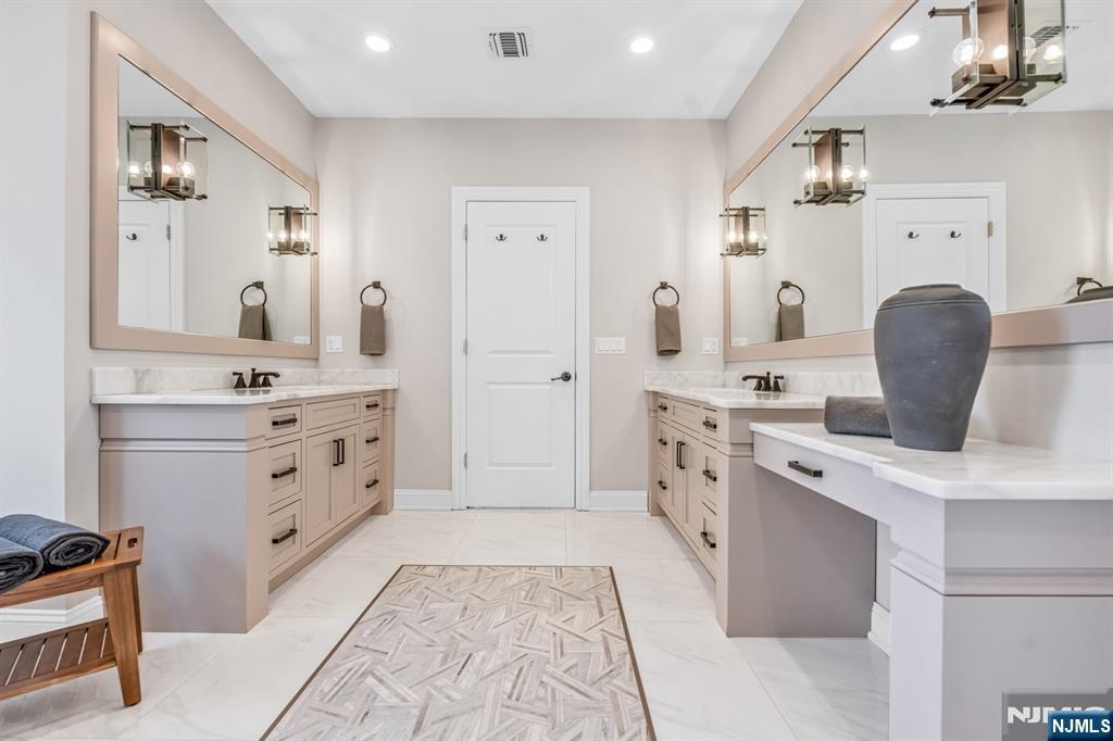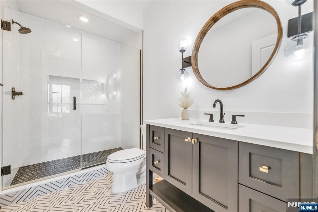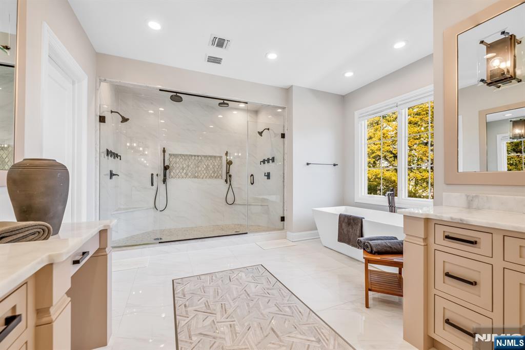 Welcome to a truly exceptional Glen Rock residence that blends timeless craftsmanship with modern luxury. Only 7 years old and built by one of Bergen County’s premier builders, this stunning home with 6 bed 5.5 baths and approx. 6,330 sq ft on all levels, offers timeless design and curb appeal with Hardie Plank siding, Azek trim, stone accents, a paver driveway, walkways, and a fully fenced backyard with patio. Inside, 10’ ceilings and a dramatic two-story foyer and great room set the tone for elevated living. The designer kitchen features custom St. Martin cabinetry, quartz countertops, a large center island, and a premier appliance package including Sub-Zero, Wolf, and Miele. The great room showcases a gas fireplace and beautiful custom millwork. First-floor guest suite. Serene primary retreat with dual walk-in closets and a spa-like bath with oversized shower and soaking tub. Very spacious bedrooms with custom, finished closets. The fully finished basement offers the 6th bedroom, a large rec room, a full bath, and a theater-ready bonus room. Advanced systems include 4-zone HVAC, 200-amp electric, central vac, & a 20kW generator. Upgrades such as a Tesla charger, whole-house water filtration, custom window treatments, Elfa garage storage, & Ring cameras complete this magazine-worthy home in a dream location, walking distance to the elementary school. Glen Rock offers excellent schools and a wonderful community.