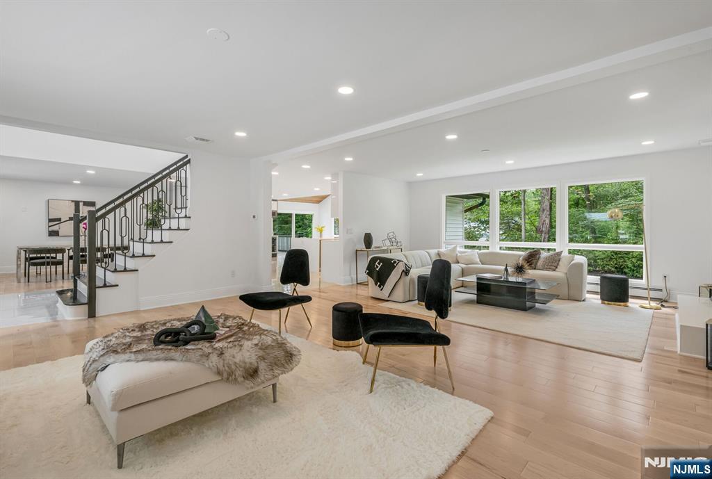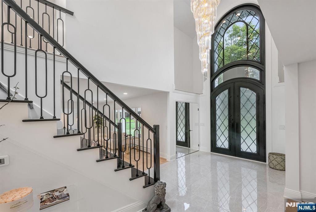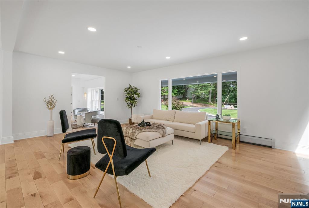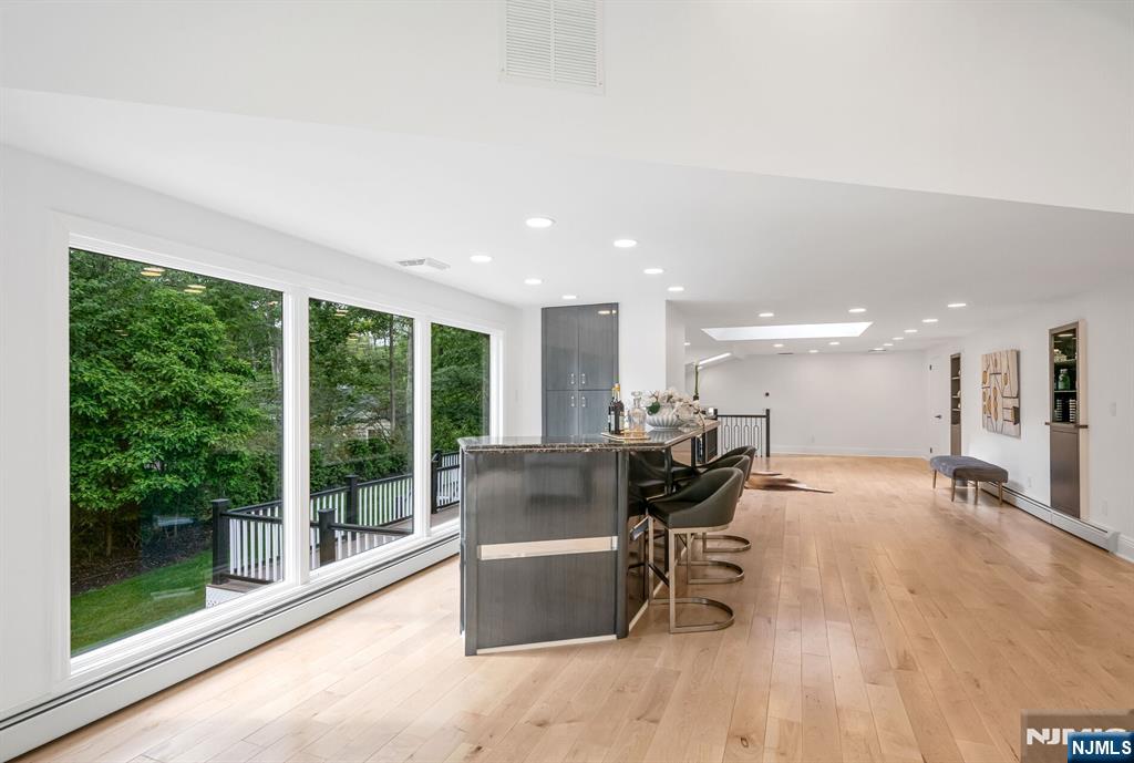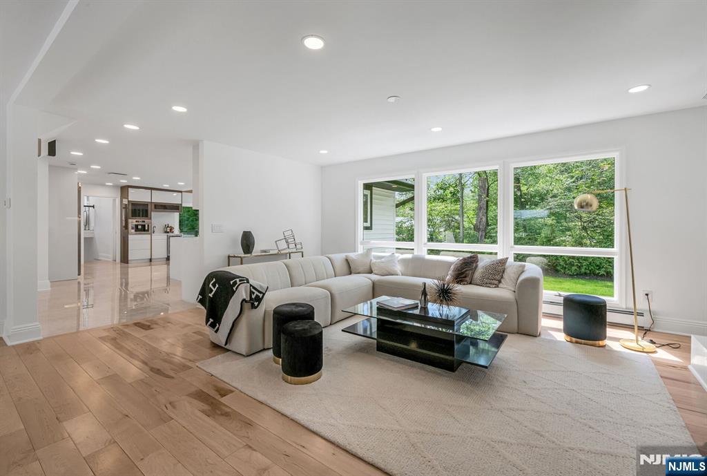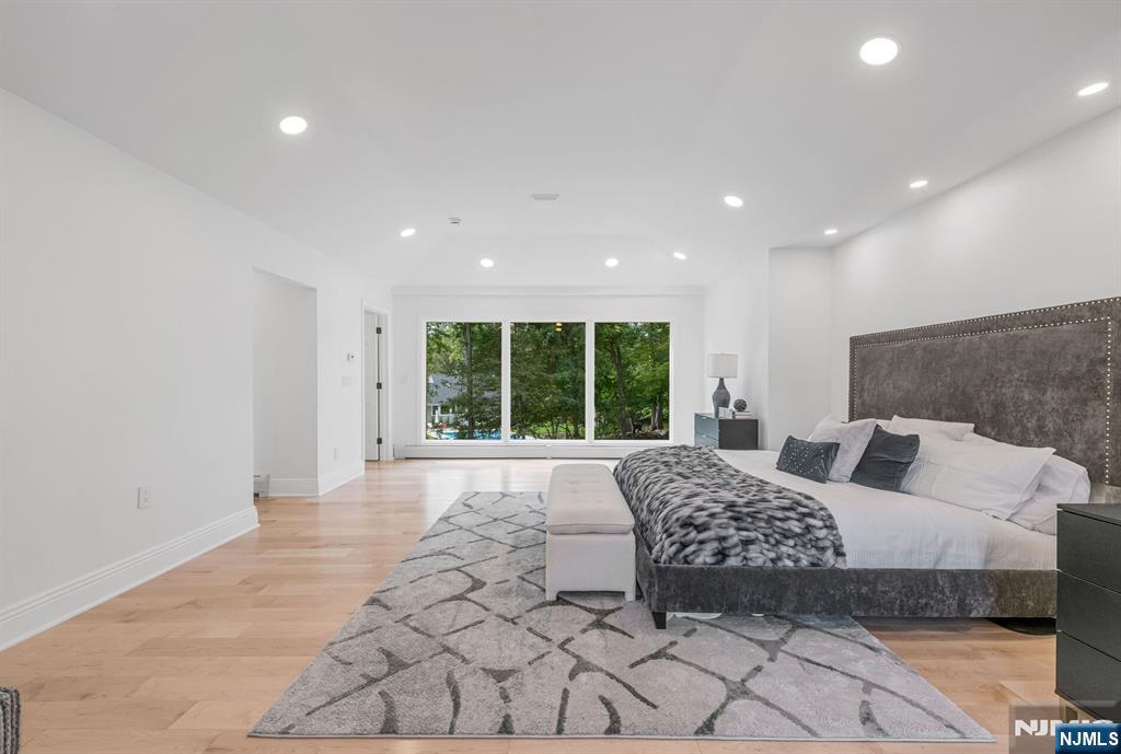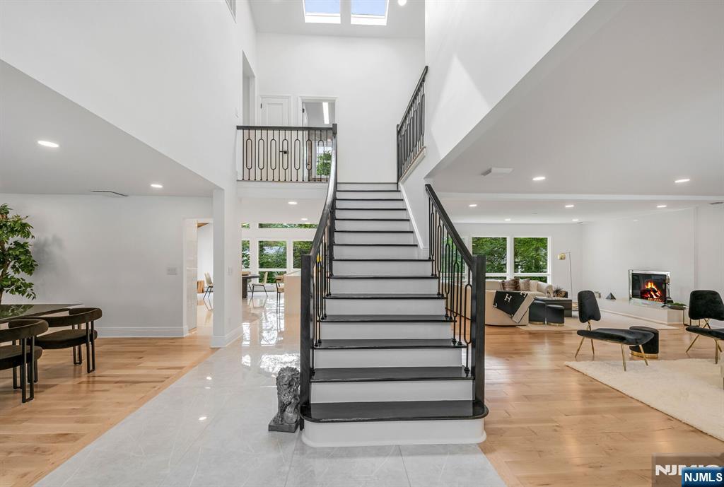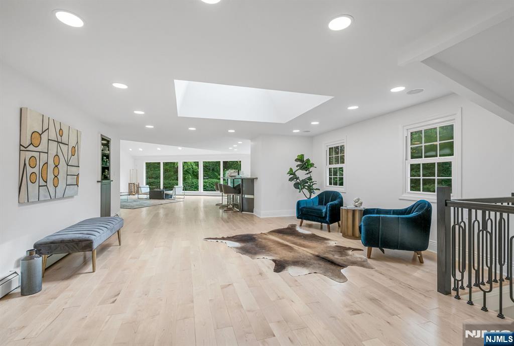 Nestled at the end of a beautiful cul-de-sac, this exquisitely redesigned residence offers the perfect blend of privacy and modern living. A circular driveway with elegant Belgium block pavers welcomes you to this exceptional home, with over 7K sq ft, including finished lower level. Every detail has been thoughtfully curated with the finest details and finishes. A grand two-story foyer with soaring ceilings leads into a breathtaking open-concept layout flooded with natural light. Oversized windows, skylights, and smart lighting enhance the airy, contemporary feel throughout the home. The state-of-the-art kitchen is a chef’s dream, featuring sleek cabinetry, Viking appliances, and a built-in coffee station. Bright breakfast room with custom ceiling. First floor guest suite, sitting area/office. Large dining room, back to front living room and large bonus room with custom bar is one of a kind. Second floor with spa-inspired primary suite with luxurious bath, radiant floors, soaking tub, and dual vanities. Two ensuite bedrooms, two additional bedrooms and hall bath. Lower level offers a large sauna room, gym, rec area and full bath. Outdoors is a serene deck and patio surrounded by privacy trees. Located minutes from top-rated schools, shopping, and NYC. Don’t miss the opportunity to experience luxury living at its finest in one of Bergen County’s most sought-after communities and zip codes!