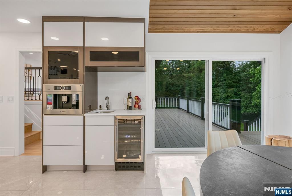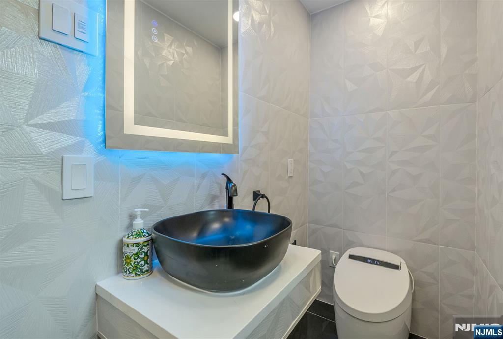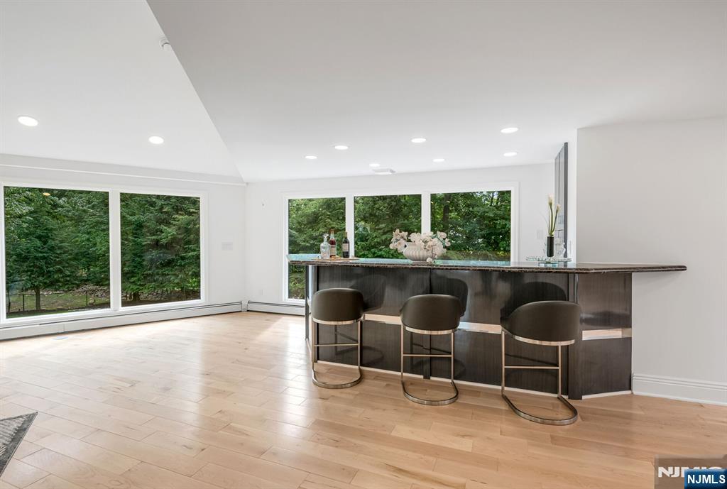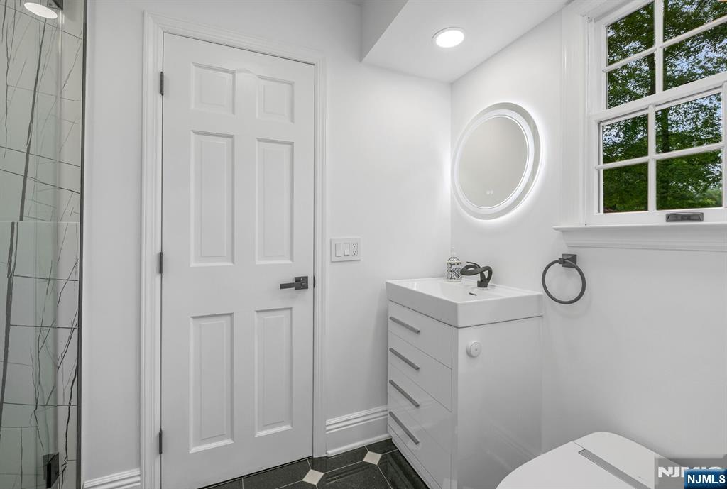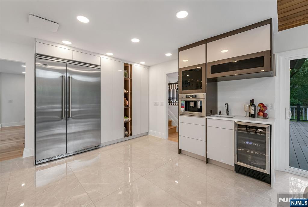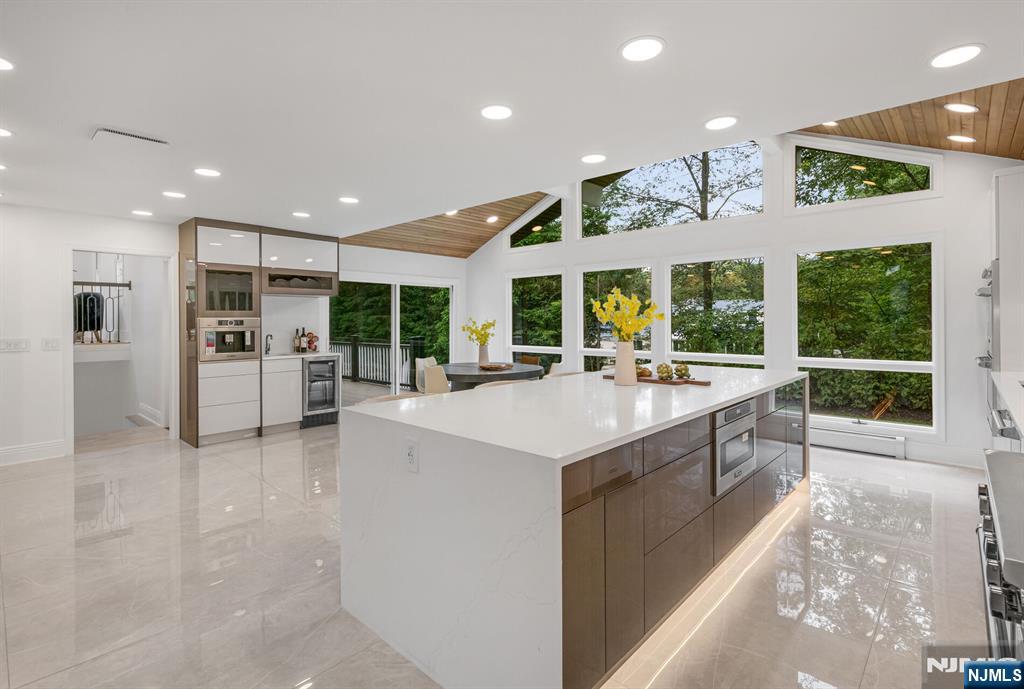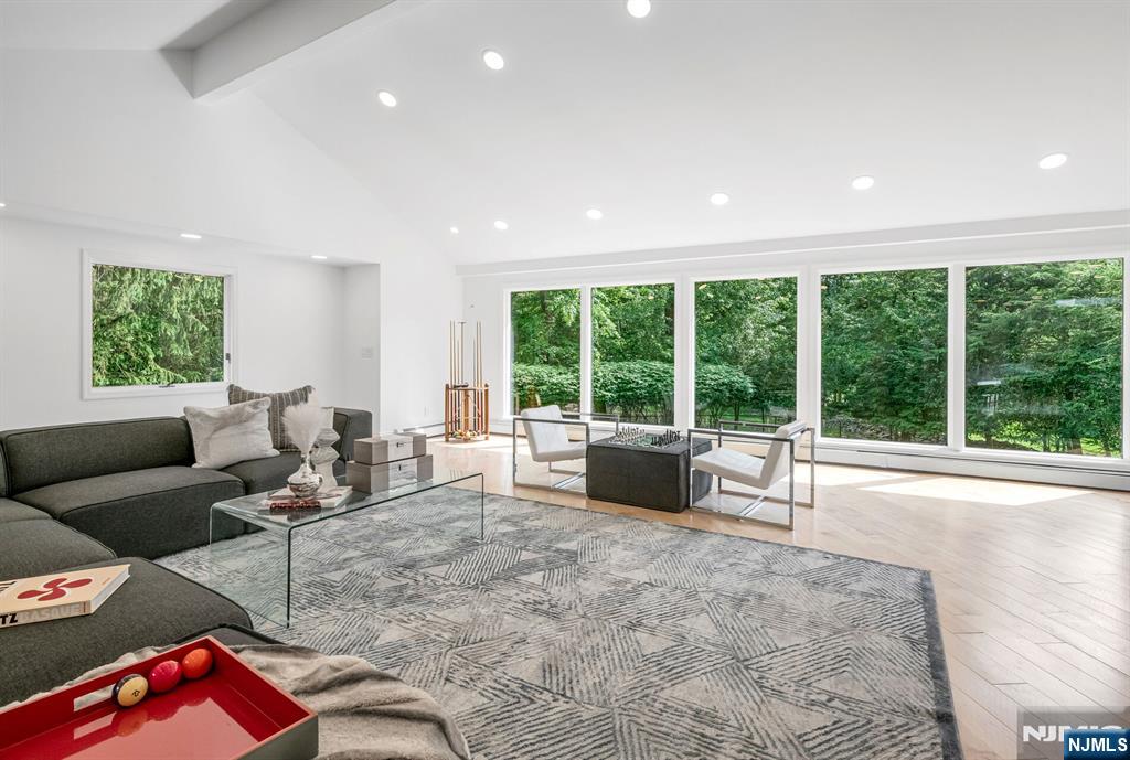Nestled at the end of a beautiful cul-de-sac, this exquisitely redesigned residence offers the perfect blend of privacy and modern living. A circular driveway with elegant Belgium block pavers welcomes you to this exceptional home, with over 7K sq ft, including finished lower level. Every detail has been thoughtfully curated with the finest details and finishes. A grand two-story foyer with soaring ceilings leads into a breathtaking open-concept layout flooded with natural light. Oversized windows, skylights, and smart lighting enhance the airy, contemporary feel throughout the home. The state-of-the-art kitchen is a chef’s dream, featuring sleek cabinetry, Viking appliances, and a built-in coffee station. Bright breakfast room with custom ceiling. First floor guest suite, sitting area/office. Large dining room, back to front living room and large bonus room with custom bar is one of a kind. Second floor with spa-inspired primary suite with luxurious bath, radiant floors, soaking tub, and dual vanities. Two ensuite bedrooms, two additional bedrooms and hall bath. Lower level offers a large sauna room, gym, rec area and full bath. Outdoors is a serene deck and patio surrounded by privacy trees. Located minutes from top-rated schools, shopping, and NYC. Don’t miss the opportunity to experience luxury living at its finest in one of Bergen County’s most sought-after communities and zip codes!