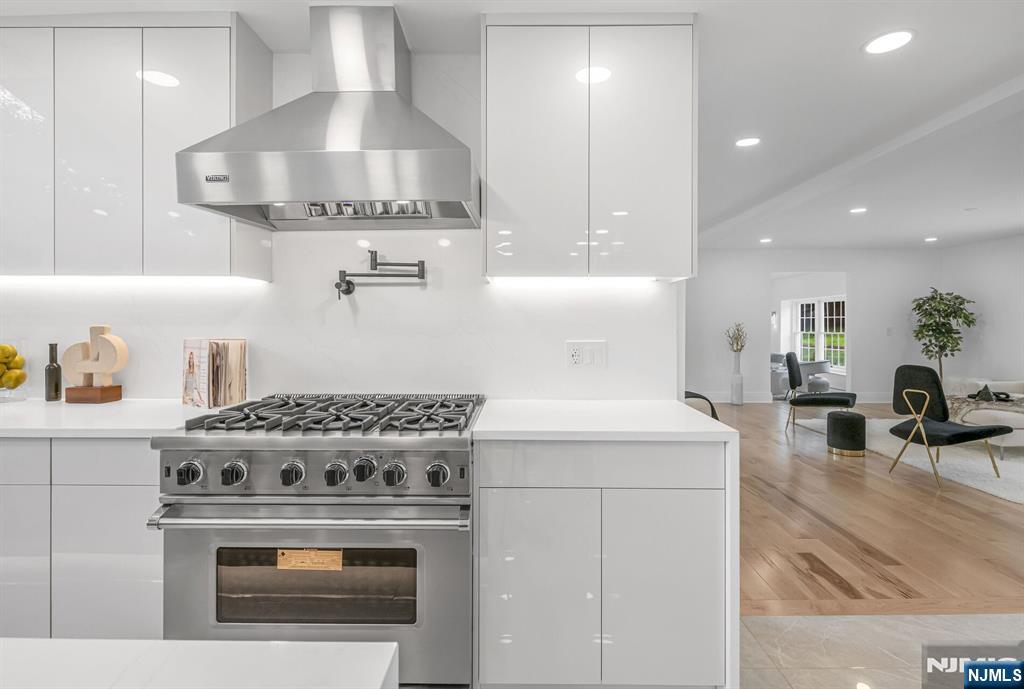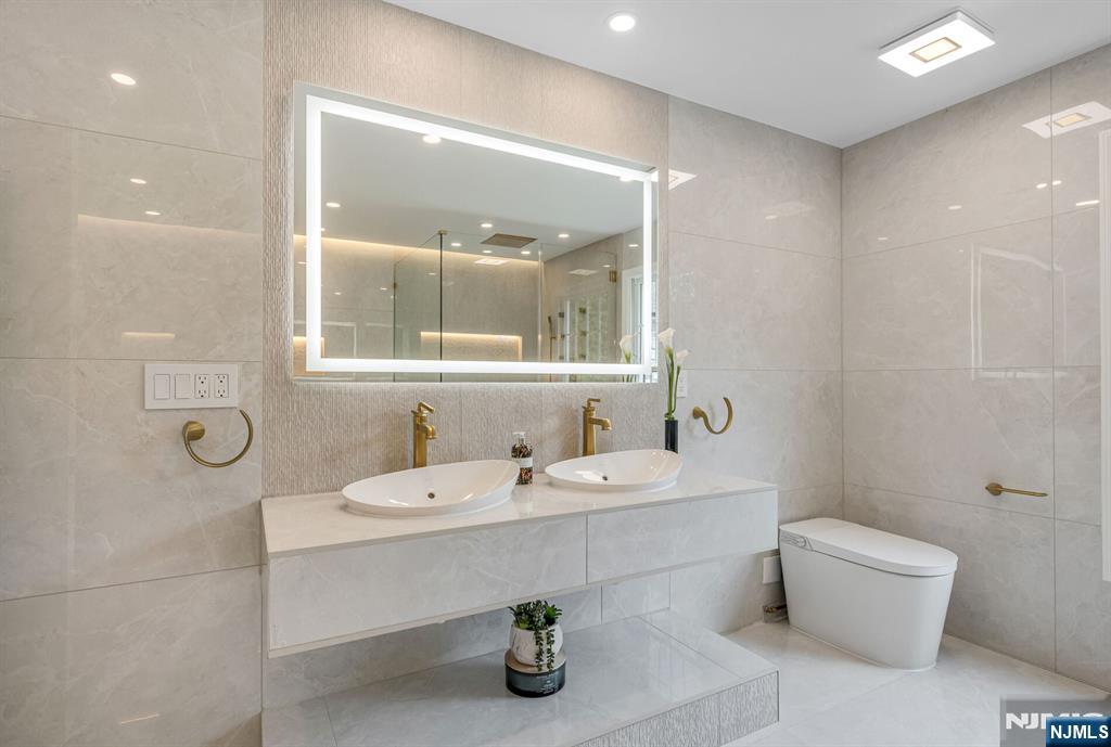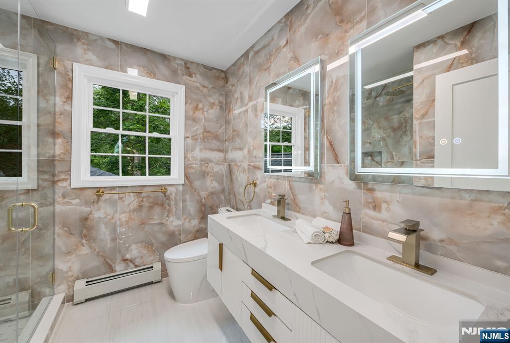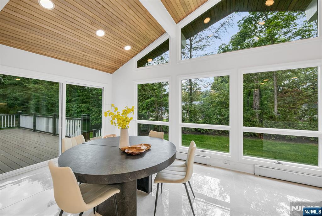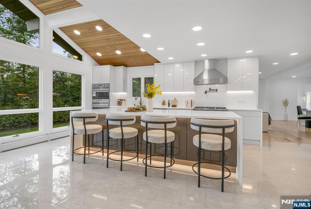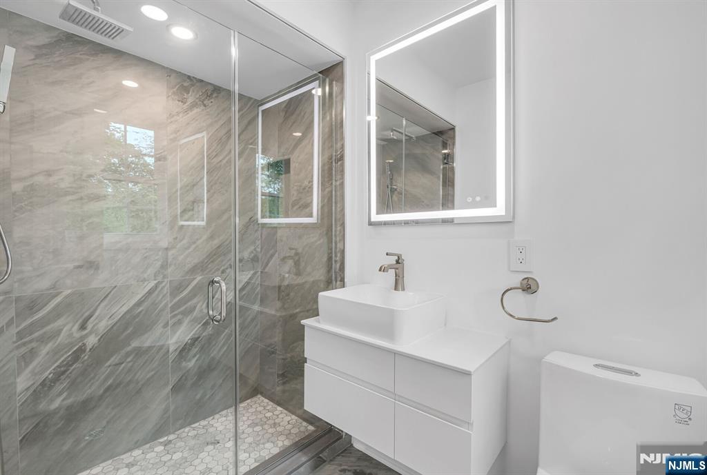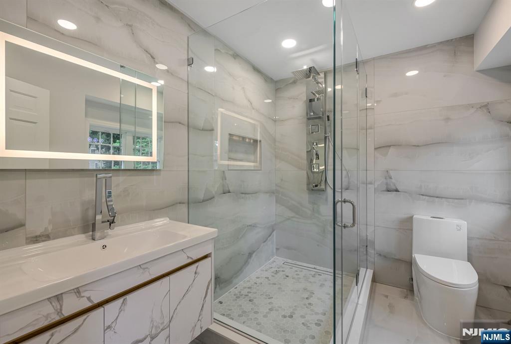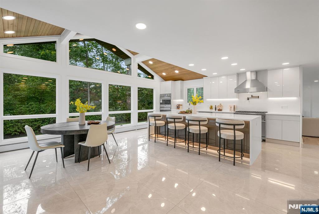 Nestled at the end of a beautiful cul-de-sac, this exquisitely redesigned residence offers the perfect blend of privacy and modern living. A circular driveway with elegant Belgium block pavers welcomes you to this exceptional home, with over 7K sq ft, including finished lower level. Every detail has been thoughtfully curated with the finest details and finishes. A grand two-story foyer with soaring ceilings leads into a breathtaking open-concept layout flooded with natural light. Oversized windows, skylights, and smart lighting enhance the airy, contemporary feel throughout the home. The state-of-the-art kitchen is a chef’s dream, featuring sleek cabinetry, Viking appliances, and a built-in coffee station. Bright breakfast room with custom ceiling. First floor guest suite, sitting area/office. Large dining room, back to front living room and large bonus room with custom bar is one of a kind. Second floor with spa-inspired primary suite with luxurious bath, radiant floors, soaking tub, and dual vanities. Two ensuite bedrooms, two additional bedrooms and hall bath. Lower level offers a large sauna room, gym, rec area and full bath. Outdoors is a serene deck and patio surrounded by privacy trees. Located minutes from top-rated schools, shopping, and NYC. Don’t miss the opportunity to experience luxury living at its finest in one of Bergen County’s most sought-after communities and zip codes!