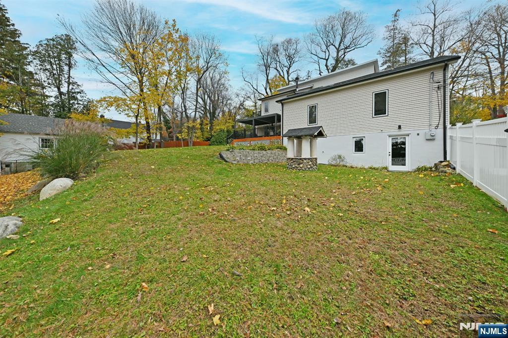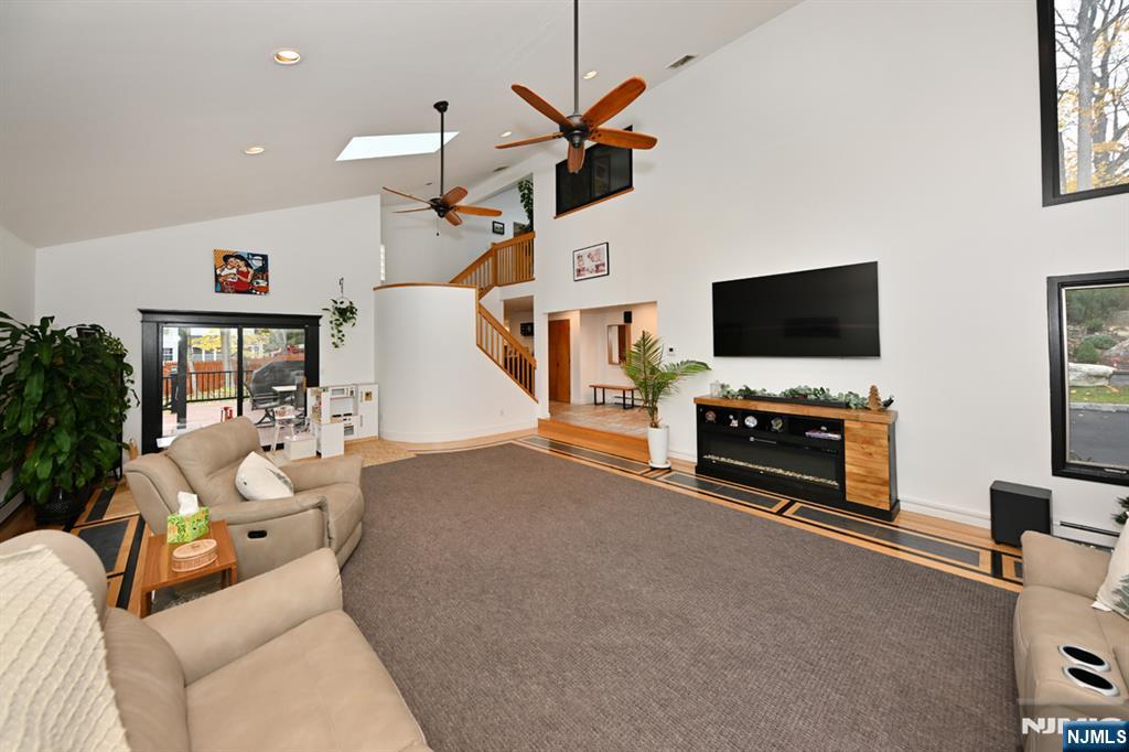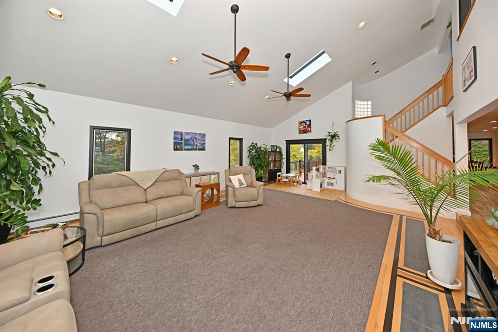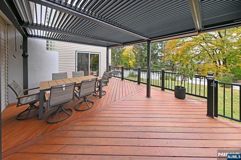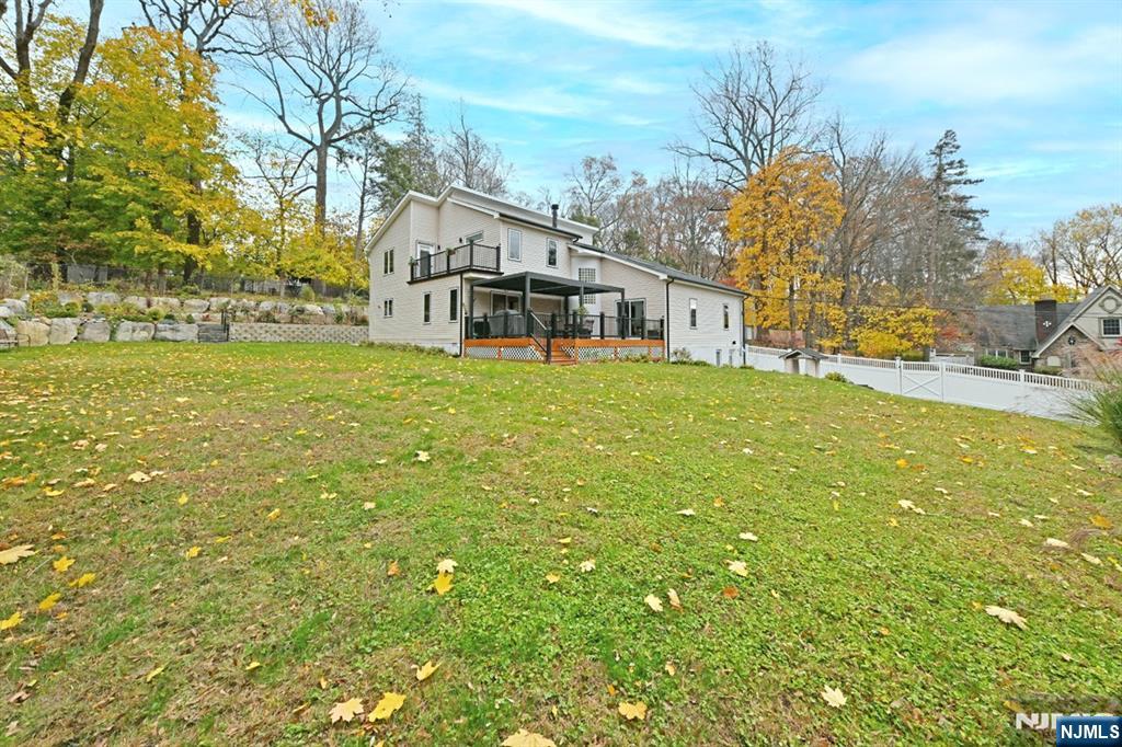 Incredible Contemporary Style home in Woodcliff Lake situated on a quiet street yet close to train, bus, shops and restaurants. Gorgeous, professionally landscaped grounds with specimen plantings, sprinkler system, detailed lighting, boulder rock walls and fully fenced rear yard. Deck offers large pergola with fans, lighting and gas grill. Updated roof, gutters, expanded and sealed driveway, new sheds, updated furnace and hot water heater. Main floor boasts an immense great room with clerestory windows and vaulted ceiling, large dining room opens to the spacious kitchen with center island. Laundry room is right off the kitchen, along with the powder room and access to the 2 car, heated garage. 2nd floor boasts a large open landing, primary bedroom offers a beautiful private terrace, walk-in closet, double door closet, beautiful primary bath with shower stall, double sinks and jetted tub. 3 additional spacious bedrooms and full bath. Lower level in beautifully finished with large rec room, serving station, powder room, storage room and walk out to side yard. The setting, location and detail to this home is amazing!!