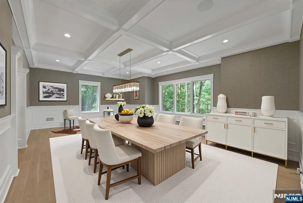 Introducing a stunning new construction in Ramsey, NJ. Nearly 8,000 sq ft of living space on 1.4 acres of private, secluded land. This five bedroom, 6.5 bath masterpiece features radiant heat in all baths and kitchen, top tier plumbing and electrical, and custom walnut woodwork throughout. Enjoy a chef's kitchen with double islands, a butler's pantry, and a wine room. Each bedroom offers custom closets, and the oversized second floor laundry adds convenience. Two fireplaces, two mudrooms, and a fully finished basement with a full bath complete the interior. Smart home technology includes pre wiring for TVs, whole home automation, video intercom, and a six zone in ceiling audio system. The exterior is board and batten with a 3 car garage and long, private driveway. In the backyard, you'll find a flat yard and patio. Take advantage of Ramsey's new low taxes. This is the home you've been waiting for!