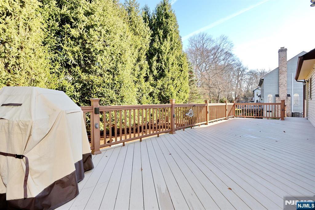This pristine Center Hall Colonial is situated in a highly sought after Paramus community! Boasting five spacious bedrooms, and 4 baths located in a cul-de-sac. You are welcomed by a grand foyer featuring a convenient coat closet, expansive living room enhanced by french doors and custom bay windows creating a bright and inviting atmosphere. Adjacent to the living area, is the formal dining room with recessed lighting and custom bay windows as well. The generous sized family room, complete with a gas fireplace, is open to the gourmet kitchen with custom cabinetry, premium quartz countertops and stainless steel appliances including a wall oven, and a standing gas range. Sliding glass doors lead to a large composite deck, offering serene views of mature evergreen trees that ensure privacy. A laundry room, powder bath, and a separate second staircase provide private access to the fifth bedroom suite with a renovated full bath. Upstairs, four well-appointed bedrooms feature ample closet space, including a luxurious primary suite that boasts a spa-like bathroom. This home is equipped with a commercial-grade C/A conditioning system, central vacuum, sprinkler system and a heated garage. The beautifully landscaped grounds are complemented by a paver driveway and walkway. Located close to parks, bike paths, NYC transportation, shopping, dining, top rated schools, and houses of worship, this residence offers unparalleled access to all that the vibrant town of Paramus has to offer.