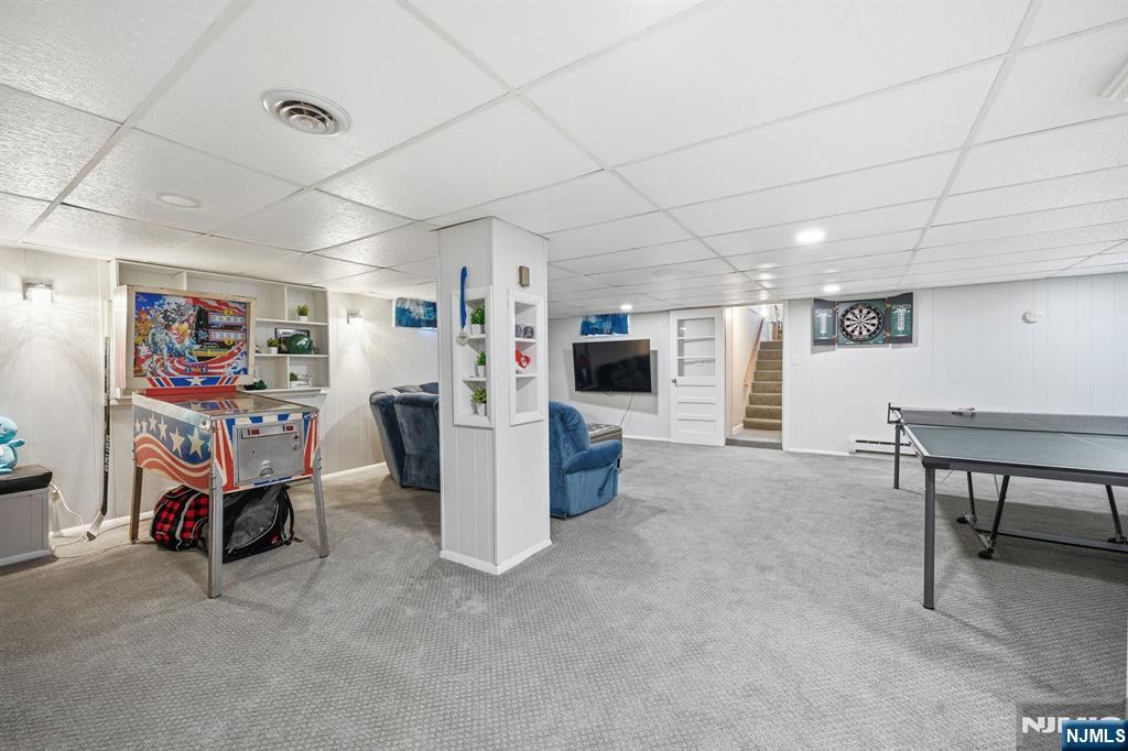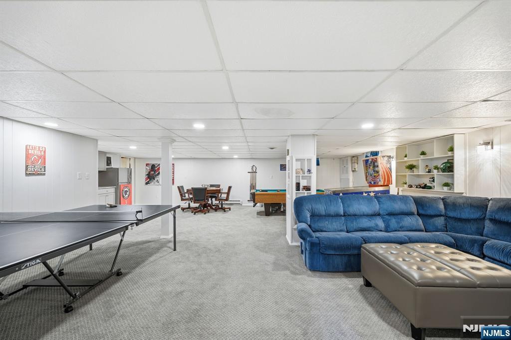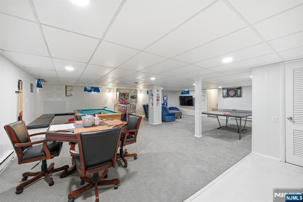 This is a beautifully maintained ranch-style home offering comfort, convenience, and exceptional indoor and outdoor living. Step through the foyer, complete with double closets, and into the spacious living and dining rooms with hardwood floors that flow throughout. The updated kitchen features granite countertops, SS appliances, and a pantry for storage. An inviting family room sits just off the kitchen and boasts sliding doors that open to a large Trex deck. Down the hall, you’ll find additional storage closets and well-proportioned bedrooms, including a serene primary suite with a private full bath and nearby laundry. A second full bathroom completes the main level. Step outside to your private backyard oasis, featuring a heated, in-ground Roman-shaped saltwater pool and a lighted cabana, ideal for summer gatherings and quiet evening retreats. The finished basement expands your living space with a recreation room featuring built-in benches, a convenient kitchenette, ample storage, a powder room, and a second laundry hookup. Additional peace of mind comes with a 5-year-old HVAC system. Enjoy a walk-up attic for additional storage as well as a one-car detached garage. Located in sought-after Glen Rock, this home provides access to a vibrant community known for its excellent school system, town pool, and the convenience of two train lines to NYC, making commuting effortless. A rare blend of comfort, style, and location, this home is ready to welcome its next owner.