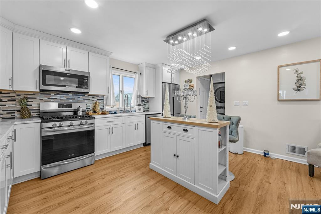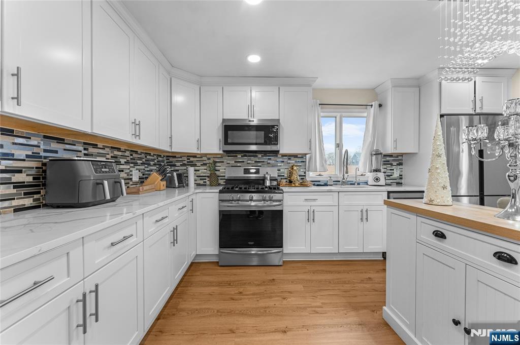 Beautifully renovated 3-bedroom, 3-full-bath home in desirable Bergen County featuring a spacious first floor with a welcoming living room with fireplace, a bedroom, updated kitchen, dining room, and full bath. The second floor offers two additional bedrooms and another full bath, while the fully finished basement includes a convenient kitchenette and a third full bath perfect for guests or extended living space. Enjoy a spacious 4-car driveway, a huge backyard ideal for entertaining, and fully paid-off solar panels providing energy savings and efficiency. Conveniently located close to major highways, schools, parks, and shopping, this move-in ready home offers modern finishes, comfort, and an unbeatable location.