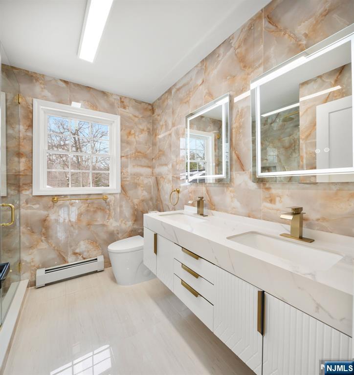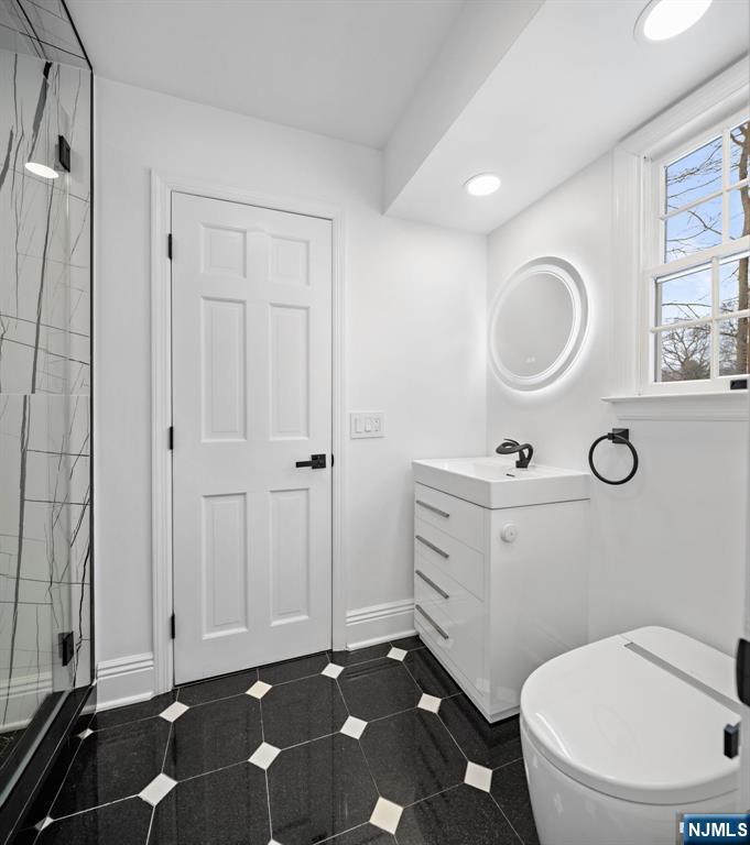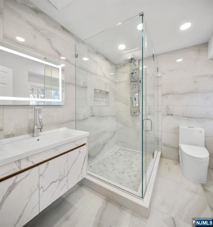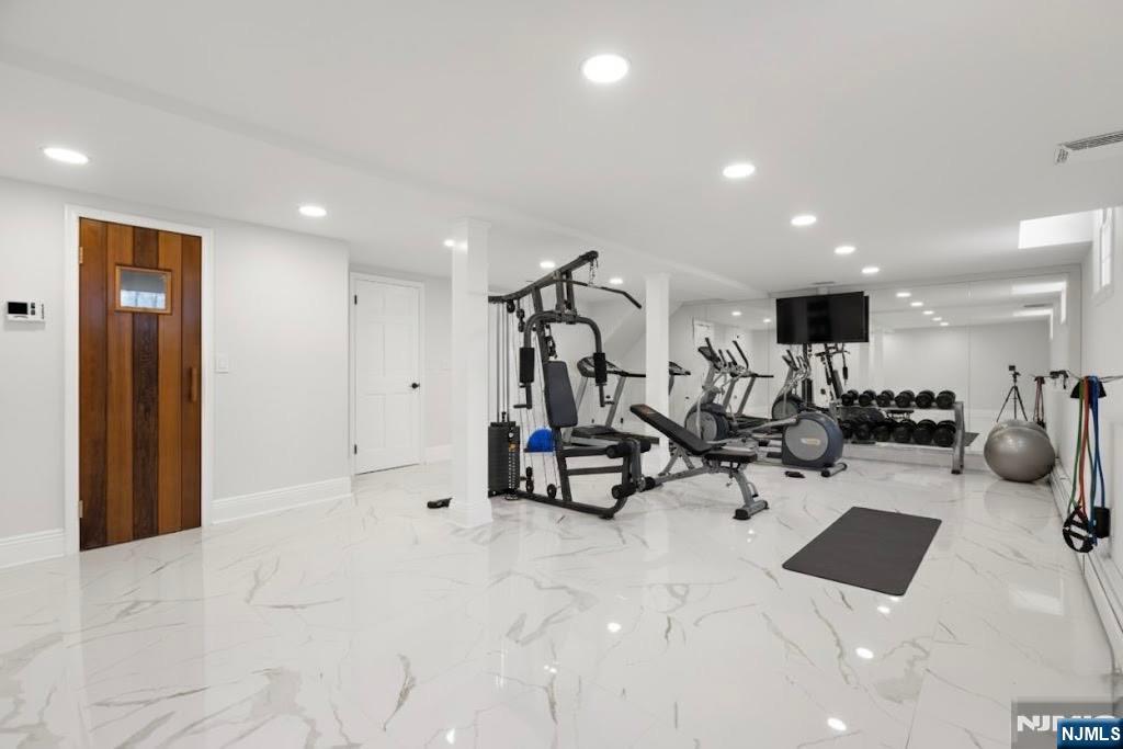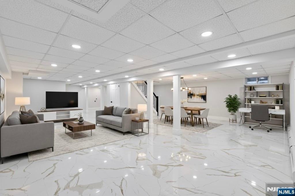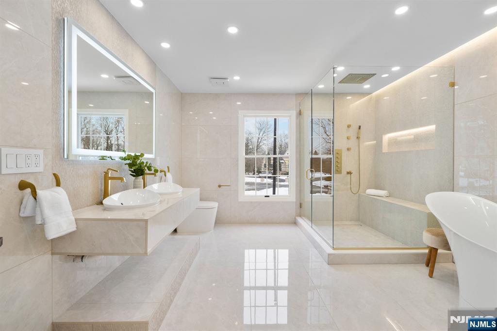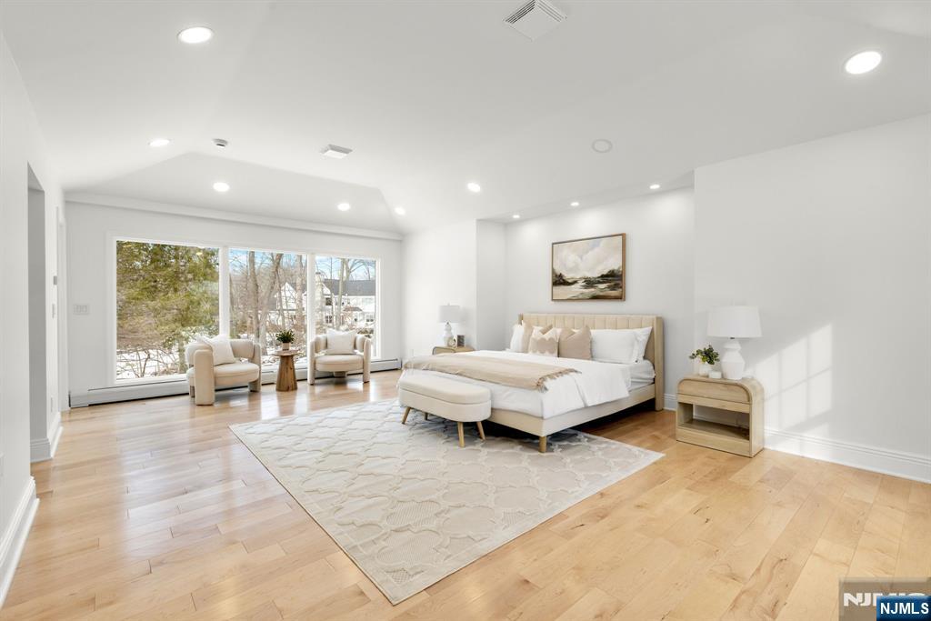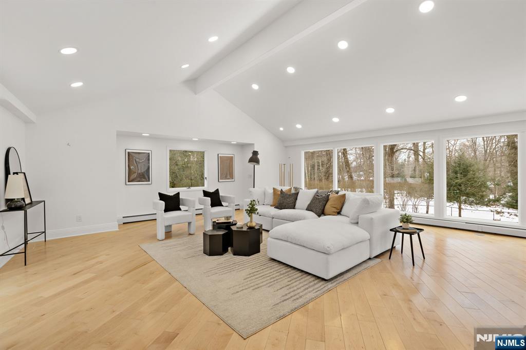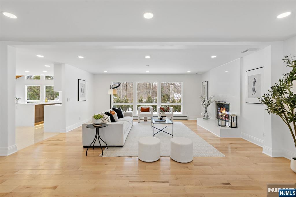 Set at the quiet end of a picturesque cul-de-sac in the prestigious Upper Saddle River community, this exceptional redesigned home offers privacy, scale, and refined modern living. A circular driveway creates a grand arrival and leads to over 7,000 sq ft of beautifully finished space across three levels, including a fully finished lower level. Impeccable craftsmanship and high-end finishes are showcased throughout. A dramatic two-story foyer opens to a sun-filled, open layout ideal for both everyday living and entertaining. Oversized windows, skylights, and smart lighting enhance the home’s bright, contemporary feel. The gourmet kitchen is a true focal point with custom cabinetry, Viking appliances, a built-in coffee station, and a breakfast area accented by a custom wood ceiling. The main level includes a guest suite, sitting room or office, formal dining room, front-to-back living room, and an impressive bonus entertaining room with custom bar. The primary suite offers a spa-like bath with radiant heated floors, soaking tub, and dual vanities. Two ensuite bedrooms, two additional bedrooms, and a hall bath complete the second level. The lower level features a sauna, gym, recreation area, and full bath. Outdoor living includes a serene deck and patio surrounded by mature trees with potential for a pool. Ideally located near top-rated schools, shopping, and NYC access.