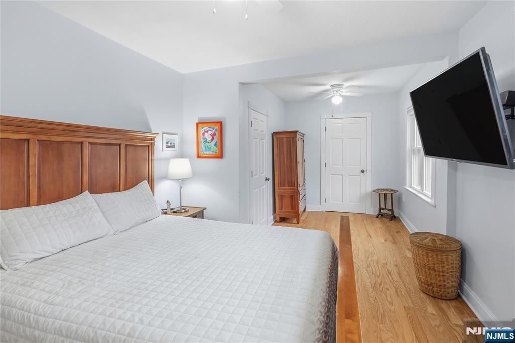 Ditch the car and head downtown. Grab dinner, coffee, shop local, or hop the train to NYC. Westwood living doesn’t get better than this! This three-story 3-bedroom, 2.5-bath home blends classic character with contemporary style. The sun-filled main level features an open living and dining area with gleaming hardwood floors, oversized windows, and plenty of room to entertain. The updated kitchen has clean lines, modern cabinetry, quartz counters, and a bold blue back door that leads directly to your deck for effortless indoor/outdoor living. The convenience continues with main-level laundry (a total game-changer). On the second level, you’ll find two comfortable bedrooms and a stunning five-piece hall bathroom. Think spa vibes: large glass-enclosed shower, double vanity, and a deep soaking tub perfectly positioned near a sunny window! Go ahead, picture yourself relaxing there. On the third level you have another bedroom with en suite half bath, office space, and large storage area. Need more room? The unfinished basement offers great storage or future expansion potential. Outside, the fully fenced large backyard is where this home really flexes. There’s room for everyone and a deck that's ready for summer! The 2 Car detached garage adding extra storage or workshop potential, is being sold AS IS.