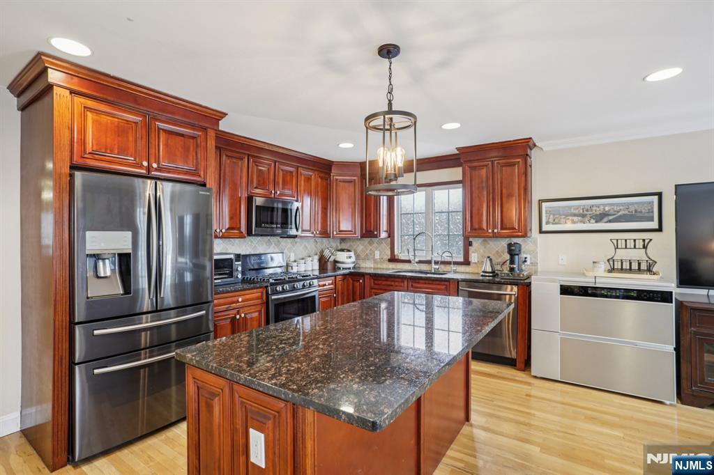 Welcome to 784 Kinderkamack Rd. Unit #101, a move-in ready, end-unit, townhouse-style condo situated in an intimate 9-unit community. Built in 2009, with 1,880 sq ft of living space and hardwood floors throughout, this 3-story home opens up to a living room and an adjacent dining room. The kitchen includes a large kitchen island, granite countertops, and black stainless steel appliances. This part of the house also features a family room, complete with a terrace, and a convenient powder room nearby. The wooden staircase leads to three bedrooms and two full bathrooms, including a master suite with 2 walk-in closets and a master bathroom. The finished basement provides versatile space for a home gym, office, or playroom, and walks out to a 2-car garage. Dual-zone HVAC keeps each level comfortable by allowing independent temperature control for the first floor, and separately for the second floor. New water heater installed (Dec 2025). Low-maintenance living with HOA-covered exterior maintenance, including roof, siding, snow clearing, and landscaping. Ideally located in central Bergen County, providing excellent NYC access with train and bus stops only a 3 minute walk away, and access to top-rated schools. Available for private showing. Showing starts on Jan 29th.