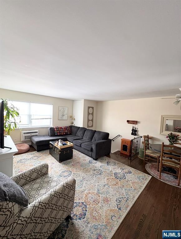 Beautiful 2-bedroom, 1-bath condo in a prime Ramsey location. This condo offers a private entrance, dedicated parking, and an open-concept living and dining area with hardwood floors throughout. The sun-filled kitchen features excellent natural light, abundant cabinet space, and a convenient seating area ideal for casual dining, with appliances including a refrigerator, range/oven, and dishwasher. Both bedrooms are spacious and well-proportioned, offering comfortable living and storage flexibility. In-unit laundry, heat and hot water included, and through-the-wall A/C units provide year-round comfort. Ideally located near major highways, NJ Transit train station, and bus routes, with shopping and dining nearby.