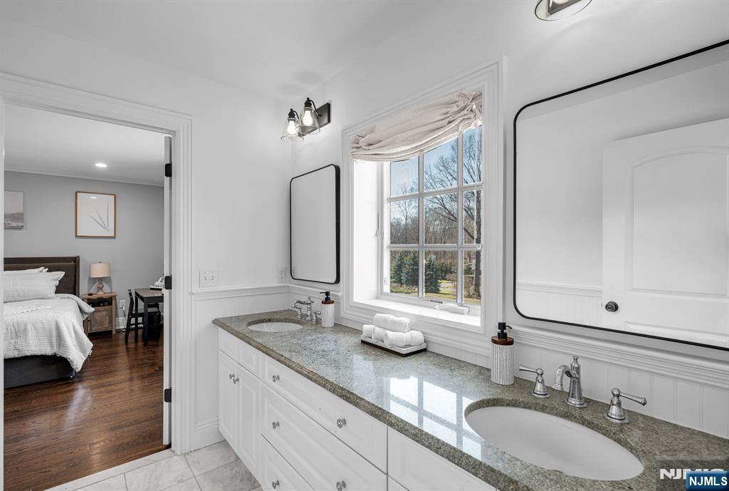 Magnificent custom-built ~6,000 sq. ft. Colonial on a flat acre at the end of a rare double cul-de-sac in one of the most coveted Ho-Ho-Kus neighborhoods. This 5-bedroom, 5.5-bath residence is designed for today’s lifestyle, offering scale, privacy, and sophistication rarely available in town. The main level features a gracious foyer, powder room, living room with bar and fireplace, banquet dining room, and an expansive gourmet eat-in kitchen with large island, walk-in pantry, and top-tier appliances, all with an effortless flow for hosting. A first-floor wing with its own playroom/guest bedroom, full bath, den, mudroom, wet bar, direct access from the oversized three-car garage, and an expansive great room with soaring vaulted ceilings and fireplace creates an ideal setup for multi-generational living or guests. Upstairs, a generous primary suite offers a tray-ceiling bedroom, separate library, dedicated home office, and two walk-in closets with spa bath. Three additional ensuite bedrooms feature excellent closet space, including two with walk-in closets, plus a convenient laundry room. The finished lower level provides flexible recreation space, gym, and full bath. Outside, a newly fenced, resort-like backyard showcases a free-form Gunite pool, expansive patio, and lawn perfect for summer gatherings. This is a rare opportunity to enjoy a move-in-ready home in Ho-Ho-Kus, offering top-rated schools, a vibrant downtown, and convenient NYC transportation.