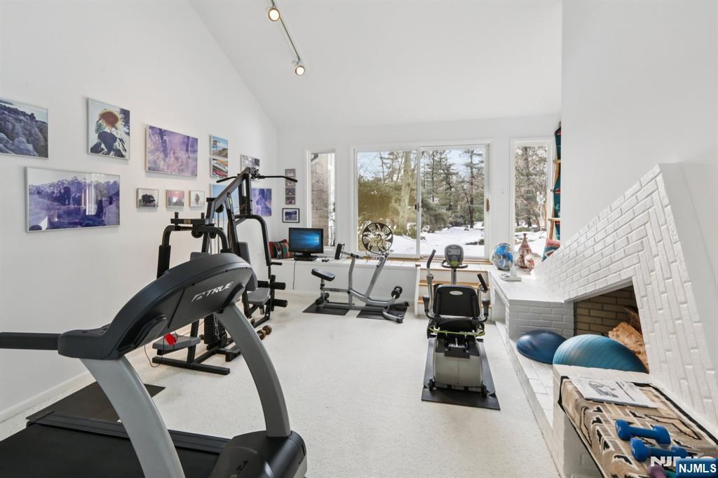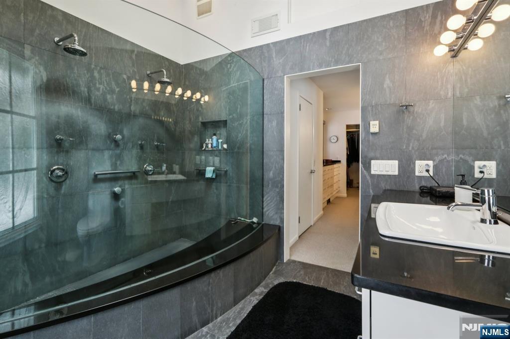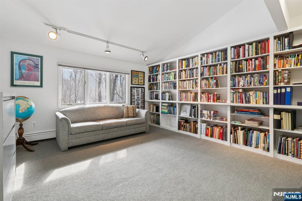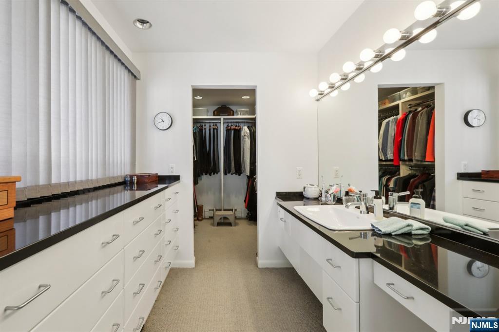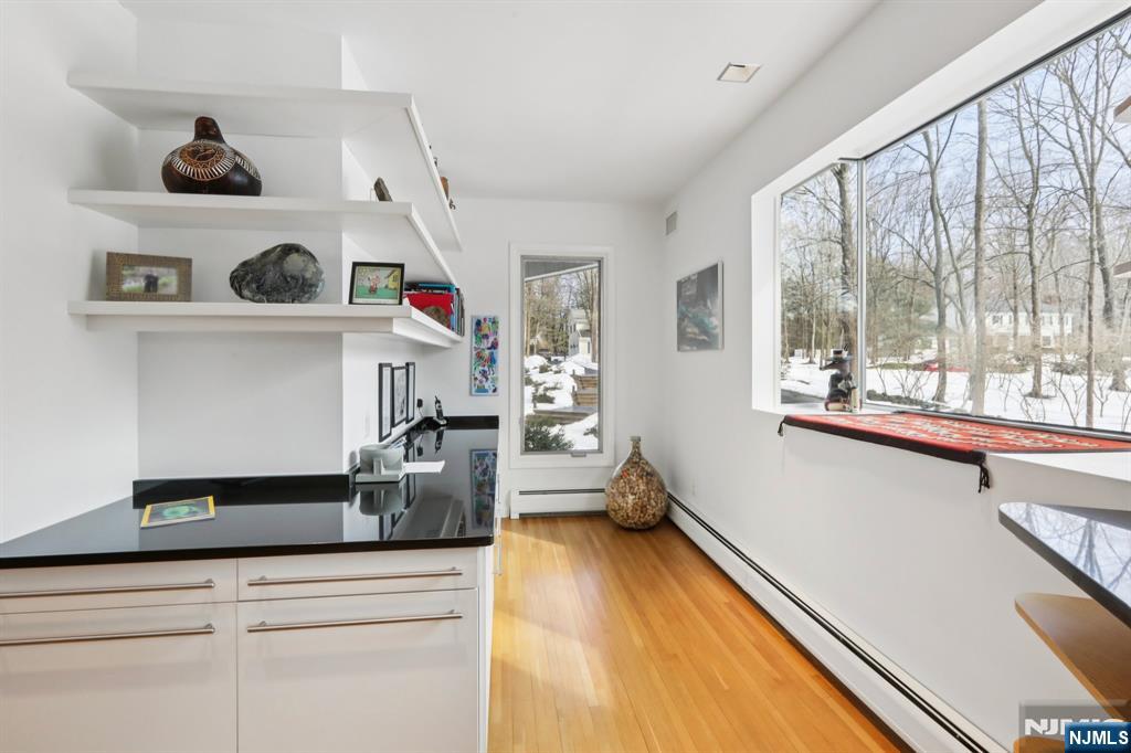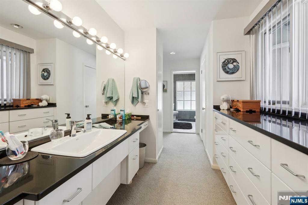 Set in a premier Upper Saddle River location, this custom home offers exceptional craftsmanship, comfort, and timeless appeal. Cathedral ceilings, large sun-filled windows, and elegant custom details create a warm yet sophisticated atmosphere throughout. The custom kitchen features oak cabinetry, an induction cooktop, Sub-Zero refrigerator, KitchenAid microwave/oven, built-in breakfast nook, and adjoining laundry/mudroom. Multiple sliding glass doors lead to an expansive deck and serene koi pond, creating an effortless indoor-outdoor flow for entertaining. The first-floor primary suite includes a beautifully appointed bath with double vanities and an oversized dual-outlet shower. Additional highlights include a three-floor elevator, three fireplaces, custom built-ins, and an integrated entertainment center. Upstairs, a library with built-in bookshelves and a dedicated office with custom workstations add charm and functionality. A full unfinished basement with built-in workbench, second washer/dryer, and a three-car garage complete this distinctive offering. Designed for both elegant entertaining and everyday ease, this is a home that feels as remarkable as it looks; warm, refined, and ready to be experienced in person.