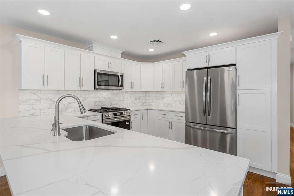 Luxury newer-construction end-unit townhome in highly desirable Waldwick, Bergen County! Rare no HOA fees and large private yard space. Enjoy 4 bedrooms, 3.5 baths, fenced backyard, and modern finishes throughout. Prime location on a quiet non cut through street with end of block access to the Waldwick train station for an easy NYC commute, 5-10 min walk to restaurants and shops, 10 mins to downtown Ridgewood, and 10 mins to 3 Whole Foods and 3 major malls. Top rated schools nearby. Main floor features a chef’s kitchen with brand new quartz countertops, stainless steel appliances, dining area, and open concept living room with a half bath. Upstairs offers 3 bedrooms and 2 full baths, including a primary suite with walk in closet and en suite bath. Ground level includes a garage, additional parking, 4th bedroom, and full bath.