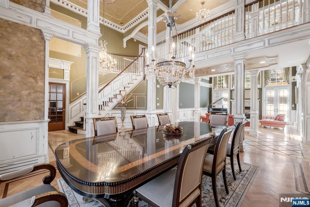 Nestled in the prestigious East Hill section of Upper Saddle River, this exquisite all-brick custom-built masterpiece embodies the perfect balance of luxury, craftsmanship, and modern comfort. Offering 5 bedrooms, 4 full bathrooms, and 3 half bathrooms, this regal residence exudes sophistication at every turn. Dramatic two-story foyer welcomes you to elegant formal spaces, adorned with intricate moldings and detailed trimwork throughout. The stunning columned dining room and richly paneled mahogany library set an elegant tone, while the expansive great room showcases a fireplace and custom millwork. The gourmet kitchen features professional-grade appliances, a large center island, and 2 dishwashers, and opens seamlessly to the inviting family room with 2nd fireplace. Luxurious first-floor primary suite offers a spa-inspired bath and custom closet, creating a serene retreat. Upstairs, a 2nd primary suite is joined by 3 additional en-suite bedrooms. Phenomenal lower level is an entertainer’s dream with a home theater, gym, recreation rooms, ample storage, and a half bath. Outside, enjoy a resort-style oasis featuring a sparkling pool, outdoor kitchen, and multiple patios, ideal for both grand entertaining and relaxed leisure. Additional highlights include heated floors, integrated speakers indoors and out, plus a 3 car garage. This exquisite and regal residence is a rare Picasso gem, a true architectural masterpiece representing prime, elite real estate in Upper Saddle R