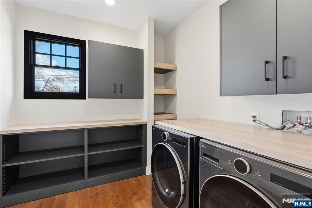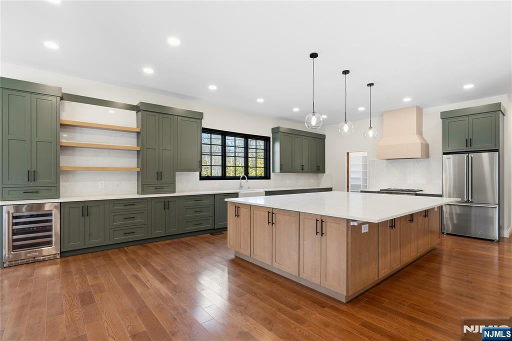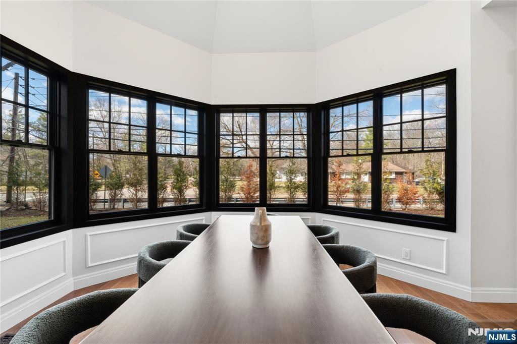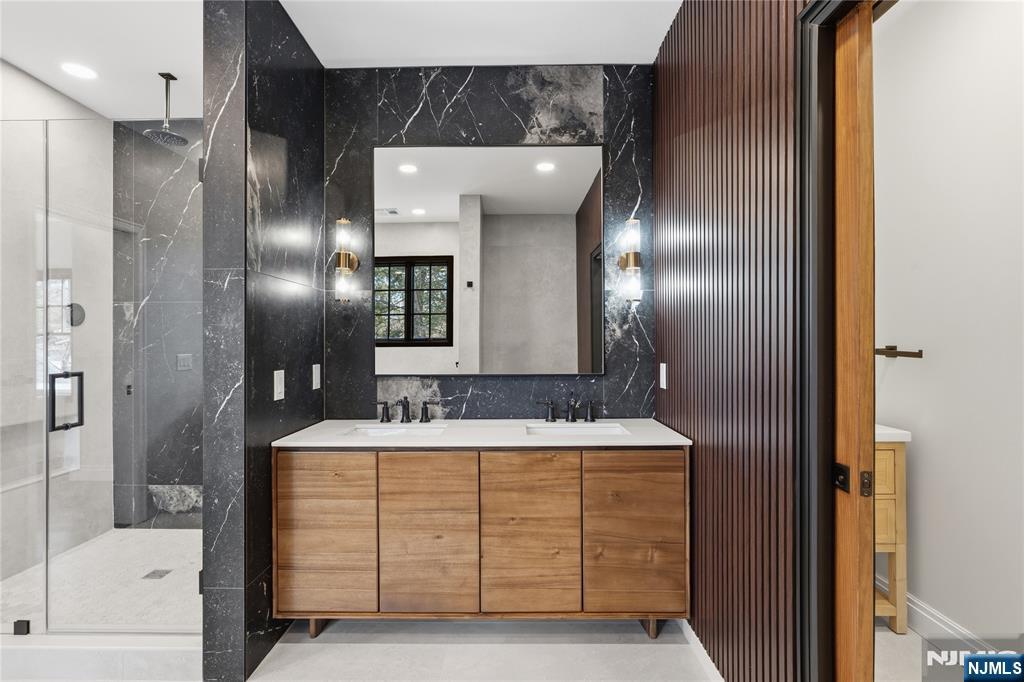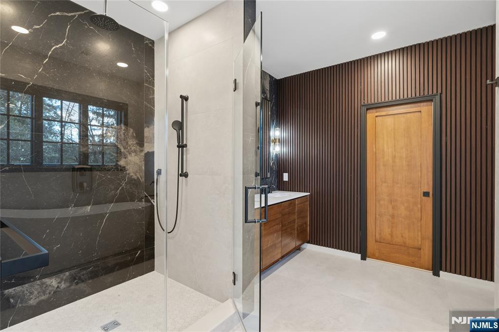 Set in the heart of River Vale, New Jersey, 803 Marshall Road presents a one-of-a-kind new construction defined by bold design and elevated craftsmanship. From the moment you arrive, the home impresses with striking curb appeal and a thoughtfully designed exterior. Inside, white oak flooring and abundant natural light complement soaring 10-foot ceilings and an open, airy layout. The chef-inspired kitchen features a quartzite island, high-end appliances, a spacious pantry, and refined finishes. A rotunda-style dining area offers sunset views, while a 25-foot sliding glass door creates seamless indoor-outdoor living, opening to an expansive deck. The main level includes a bedroom, office, and two full bathrooms, offering flexible living options. Upstairs, the primary suite features coffered ceilings, a custom walk-in closet, and a spa-like bathroom. Three additional en-suite bedrooms and a bonus room provide versatility for a variety of uses. The lower level offers approximately 2,500 sq ft with high ceilings, ready to be customized. Conveniently located near parks, shopping, and transportation, this home offers a rare opportunity in Bergen County.