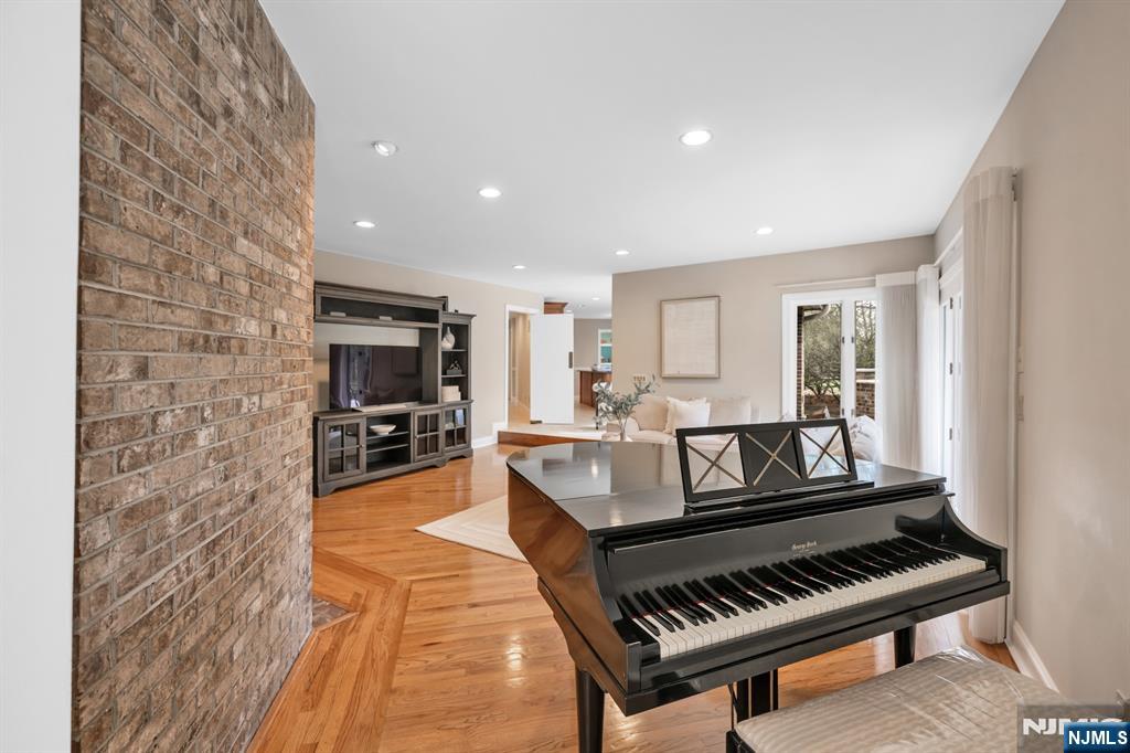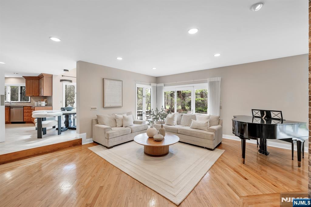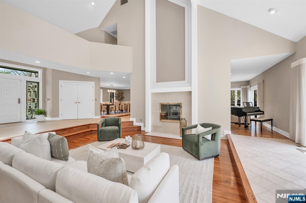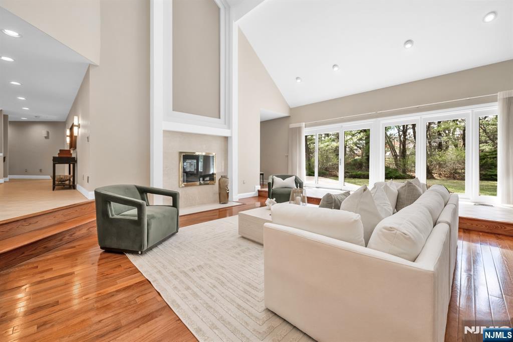 Expansive contemporary residence set on a tranquil cul-de-sac in ultra-desirable Franklin Lakes, located within Walder Estates. This impressive home offers 5 bedrooms, 3 full bathrooms, & 2 half bathrooms. Situated on a professionally landscaped 1-acre lot with a grand circular driveway, the property seamlessly blends modern elegance with exceptional privacy. A stately all-brick exterior provides timeless curb appeal. Inside, a dramatic two-story foyer opens to a sun-filled great room with soaring ceilings and a wall of windows overlooking the lush property, creating a seamless indoor-outdoor connection. A two-sided fireplace elegantly anchors both the great room & the adjacent living room, while the open-concept layout is ideal for both everyday living and entertaining. The 1st floor primary suite offers the convenience of main-level living. Thoughtfully updated and well maintained, the home features a 2019 renovation including new hardwood flooring throughout & multiple recent system and appliance upgrades. Beautifully maintained grounds feature mature landscaping, a large patio, and an outdoor kitchen plus a full irrigation system. A large unfinished basement offers excellent potential for future expansion or customization. Truly move-in ready, this home offers quality construction, thoughtful updates, and an exceptional location near top-rated schools, premier shopping, parks, & nature. Conveniently located just 30 minutes from NYC, with low Franklin Lakes property taxes.