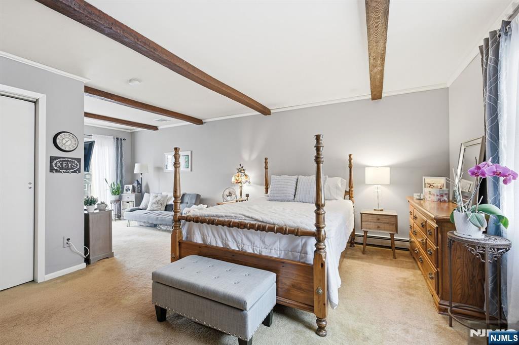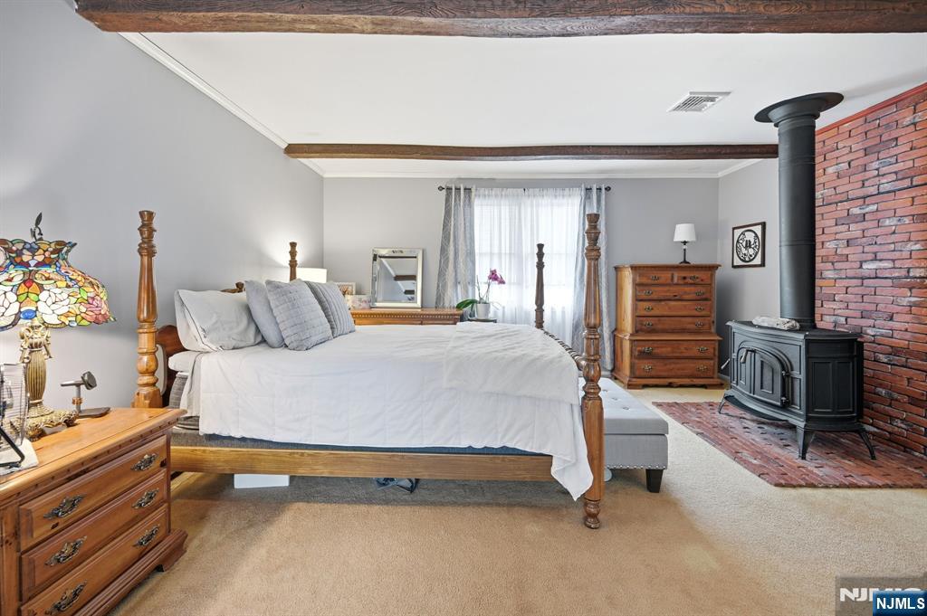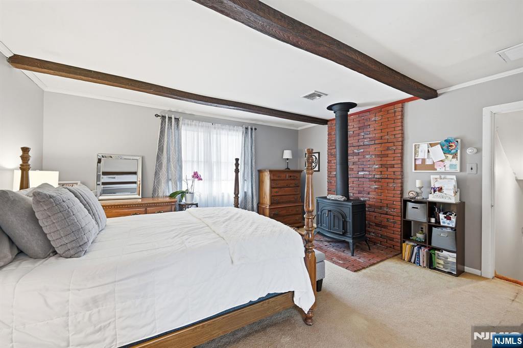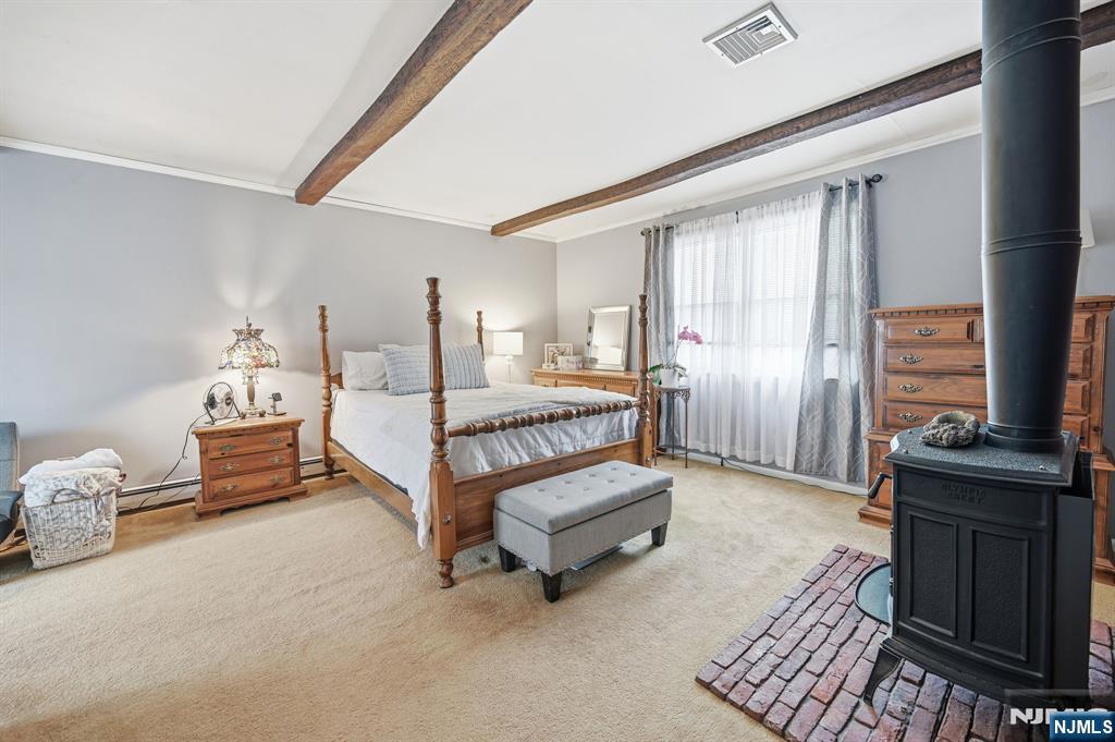 Sought-after "college section" location! This 3 BR/2FBA expanded ranch presents a fantastic opportunity to create your dream home! Beneath the carpeting on 1st floor, there is hardwood floors that span the living room and formal dining room. The first level also features an eat-in kitchen, two bedrooms with hardwood flooring, and a full bath. Upstairs, a spacious and private primary suite addition offers a true retreat, complete with a cozy sitting area, wood-burning stove, and sliding doors leading to a deck overlooking the serene backyard. A full bath with a shower stall completes this inviting space. The full, partially finished basement adds valuable living space with a family room, laundry area, storage, and utilities. Step outside to a flat, fenced backyard featuring an in-ground pool, perfect for relaxing or entertaining. Conveniently located near Heights Elementary School, NYC transportation, and quick access to Routes 208 and 287, this home combines comfort, potential, and commuter ease. Enjoy all that Oakland has to offer, including top-rated schools, beautiful parks, and recreation programs.