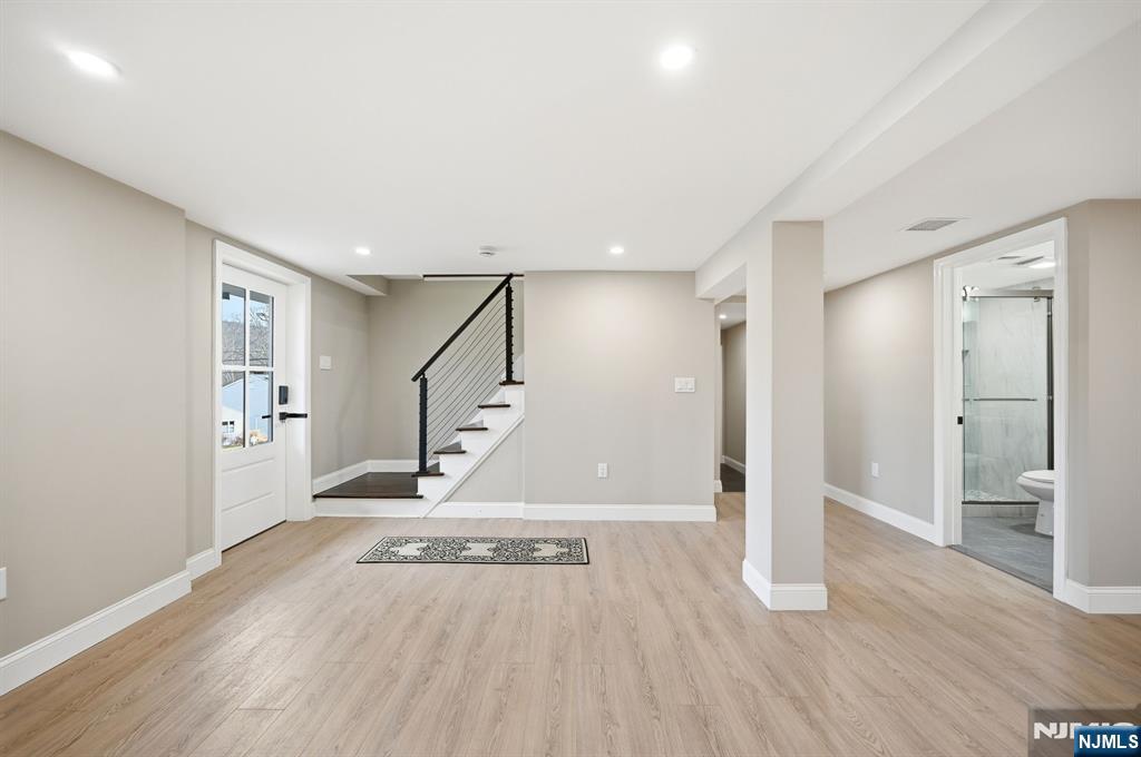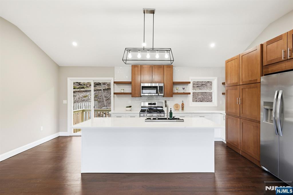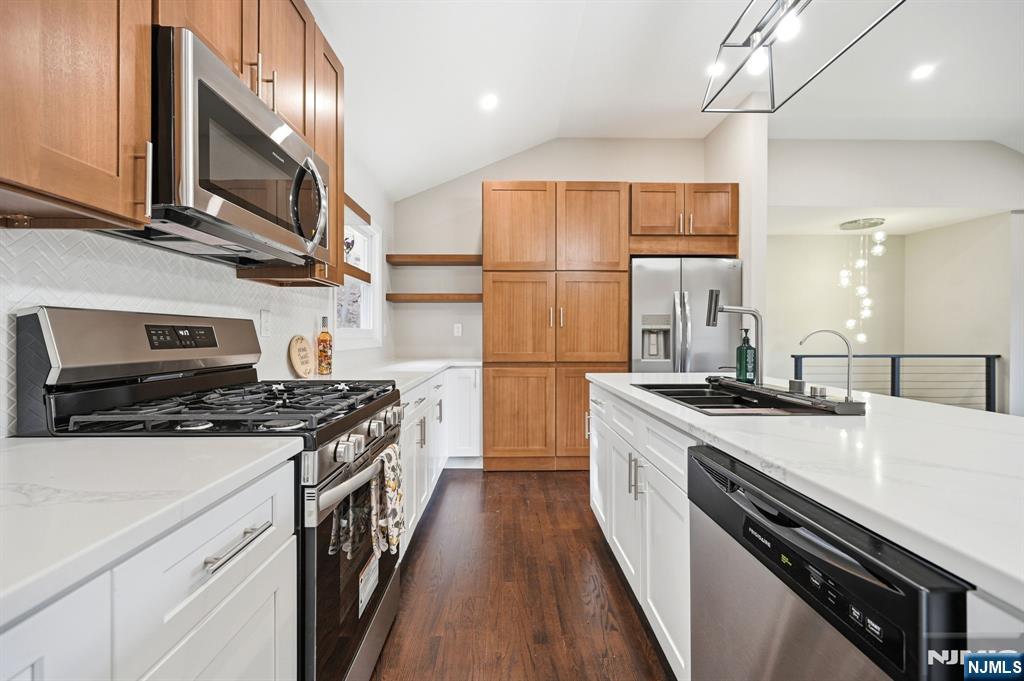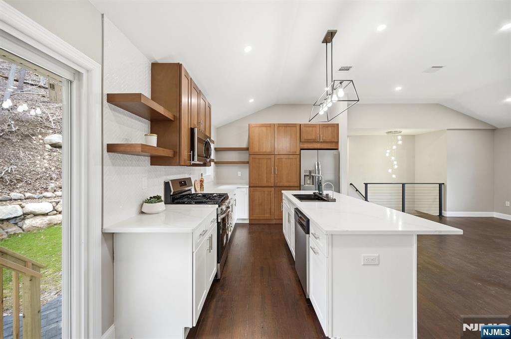 Luxury living with new-construction quality (without the premium price or taxes!) This fully rebuilt,move-in-ready home offers refined finishes,smart technology,energy efficiency,and a private natural setting.Rebuilt from the studs,it features all-new high efficiency HVAC,plumbing,electrical,roof,windows, siding,mechanicals and tankless Wi-Fi wtr htr.Smart-home upgrades incl keyless Wi-Fi entry and Wi-Fi-enabled gar door.Custom driveway fits 6 vehicles and has easy turnaround for convenient entry/exit.Upstairs, a sun-filled open-concept layout showcases soaring 10-ft vaulted ceilings and seamless flow through the living, dining, and kitchen areas!Chef-inspired kitchen features oversized 8-ft island w/seating, custom cabinetry, quartz countertops, ss appl, and spacious hidden pantry.Sliding doors open to a private deck and paver patio for effortless indoor-outdoor living.The secluded yard offers wooded privacy, space to explore or hike, and beautiful mountain, lake, and sunset views.The primary suite has vaulted ceilings, 3 closets, and spa-style bath w/dbl vanity and glass shower. 2 addtl. bedrooms and a full bath complete the level.Downstairs offers flexible living space w.luxury waterproof laminate floors,a large family room,private office or guest area,full bath, laundry, mudroom,and direct garage access.Located in desirable Oakland near top-rated schools, parks, Crystal Lake Beach Club, shopping, dining, and convenient NYC commuting.One year builder’s warranty incl