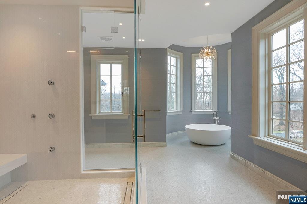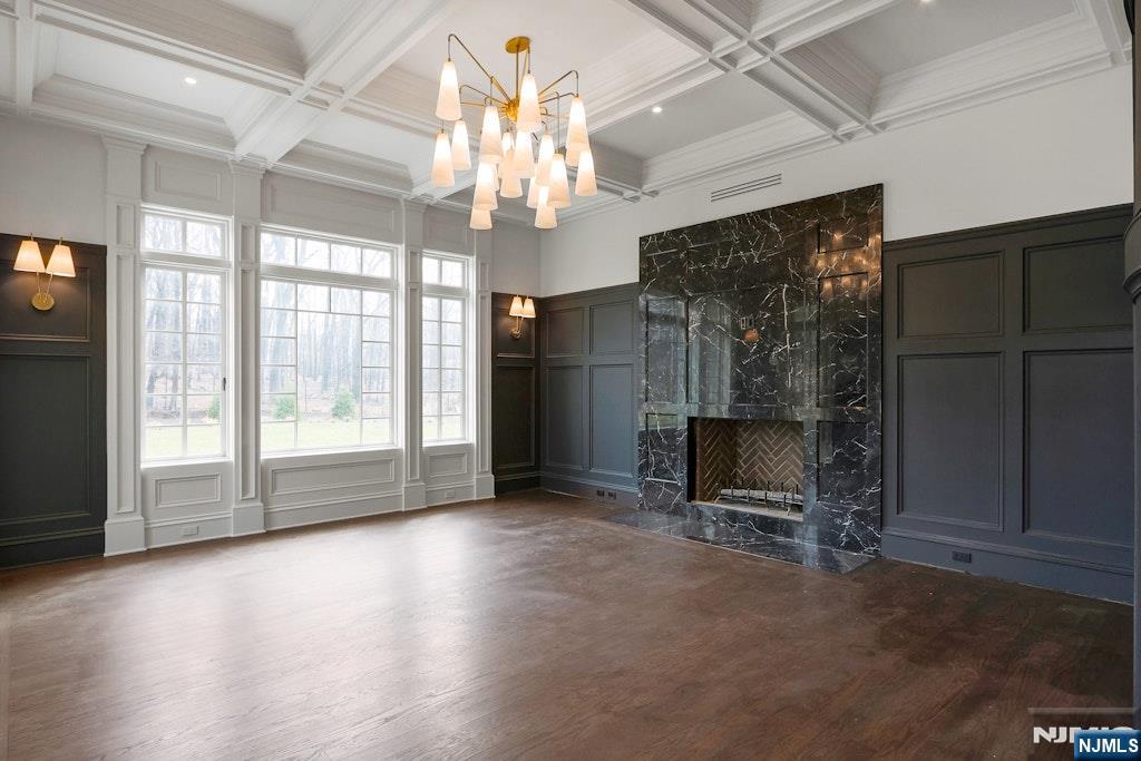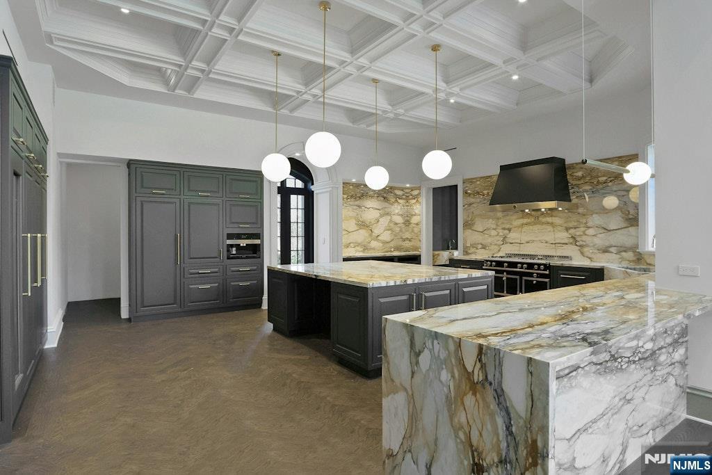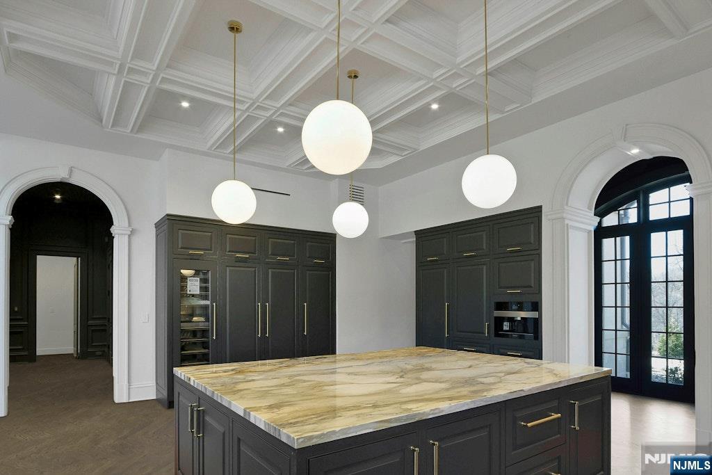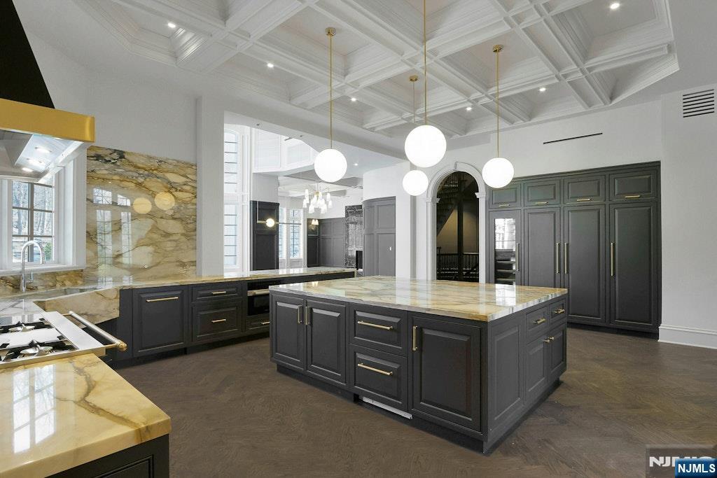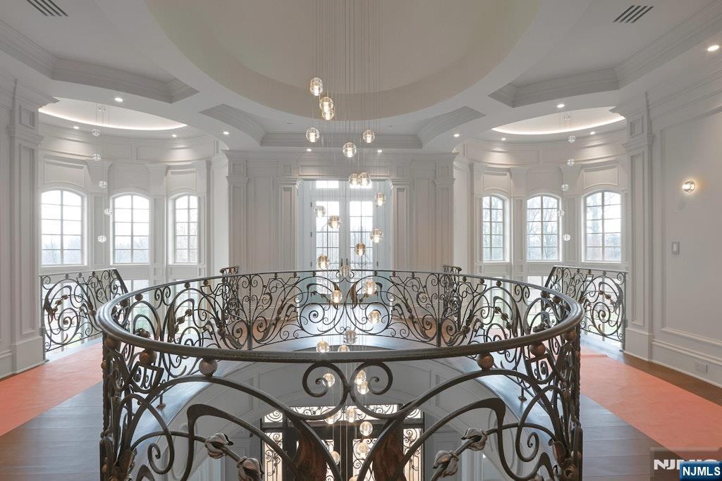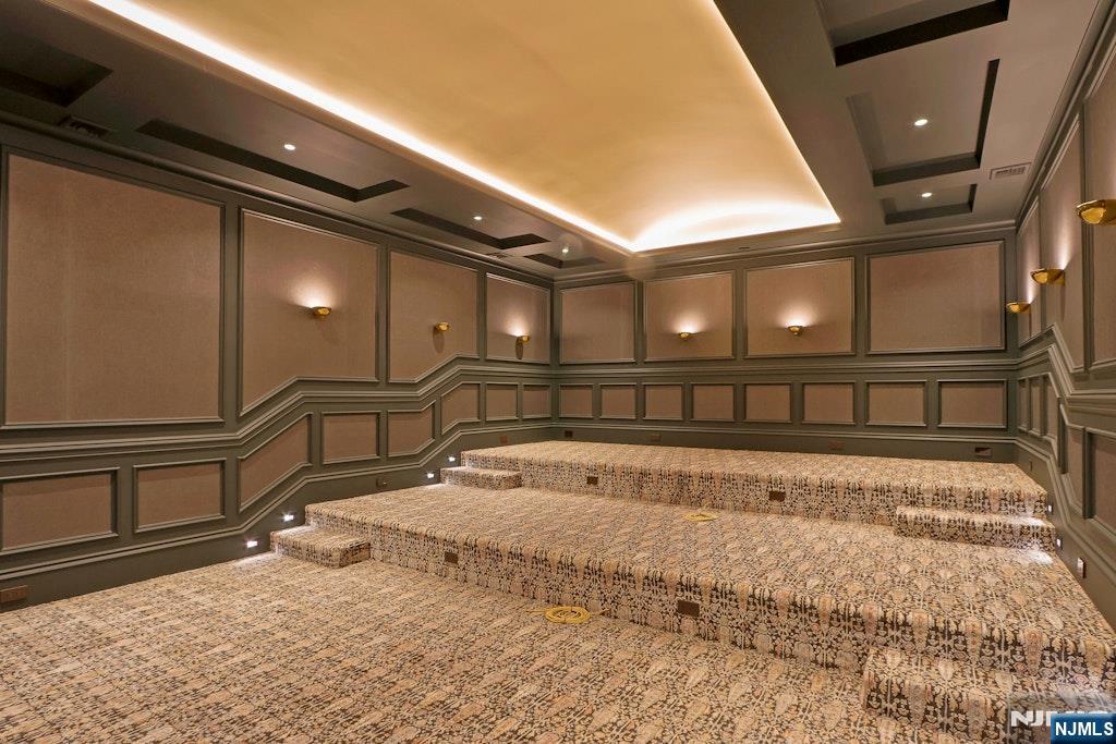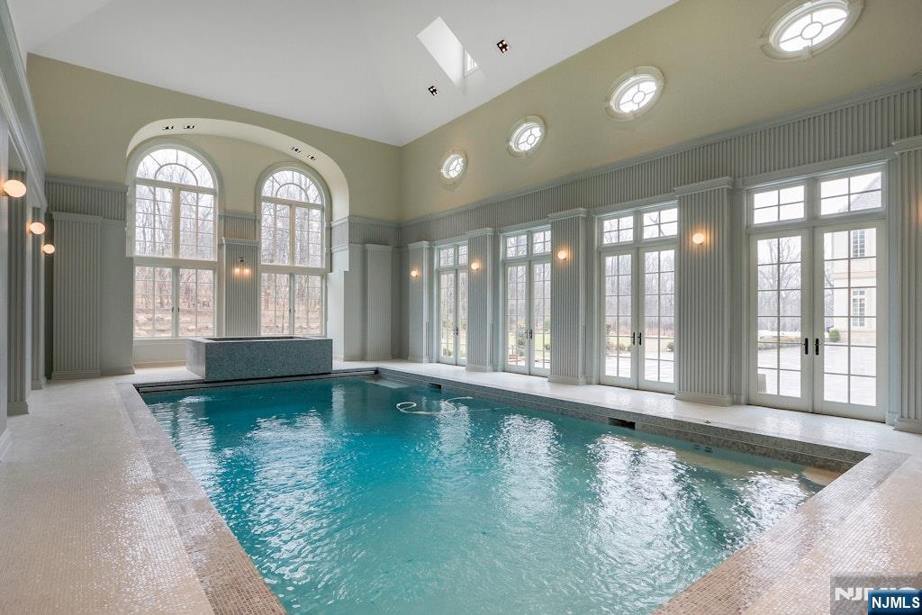A newly completed interior renovation has transformed 10 Frick Dr into an architectural estate of extraordinary grandeur.. Spanning 24,000 sq ft across 4 thoughtfully designed levels, this 9 BR , 11 full and 3 half bathroom residence offers a rare combination of scale and functionality on a 2 ac lot, situated on the only private guard-gated street in all of Alpine. Beyond its architectural presence, the home unfolds as a fully realized lifestyle compound. The entry is framed by double doors opening into the great room w/ fpl and triple French doors. The kitchen is an architectural statement featuring a deeply coffered ceiling and marble island w/waterfall edge. The adjacent family room is wrapped in custom millwork and at the heart of the home is a dramatic 18’ x 32’ indoor pool. A 300 SF+/- spa complements the space. Upstairs, the primary suite is a vaulted retreat with a limestone fireplace and wall upholstery in Phillip Jeffries linen. The lower level is dedicated to entertainment and wellness, featuring a glass enclosed wine room, immersive theater, spa lounge with cold plunge, sauna, steam room, massage area, and fitness suite. A heated garage with ceiling heights suitable for lifts offers the potential for expanded capacity. Outdoor living is equally articulated. At the rear of the home, a dining terrace adjoins a colonnade of stone arches. The outdoor kitchen is fully equipped with a refrigerator, BBQ, sink, and ice maker, and opens to expansive lawns.