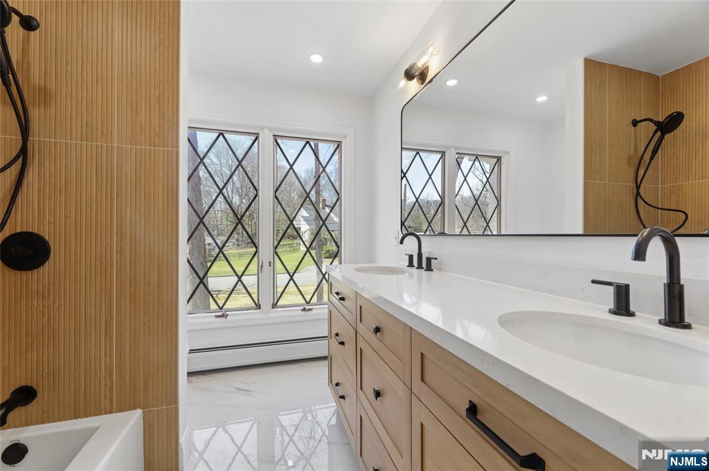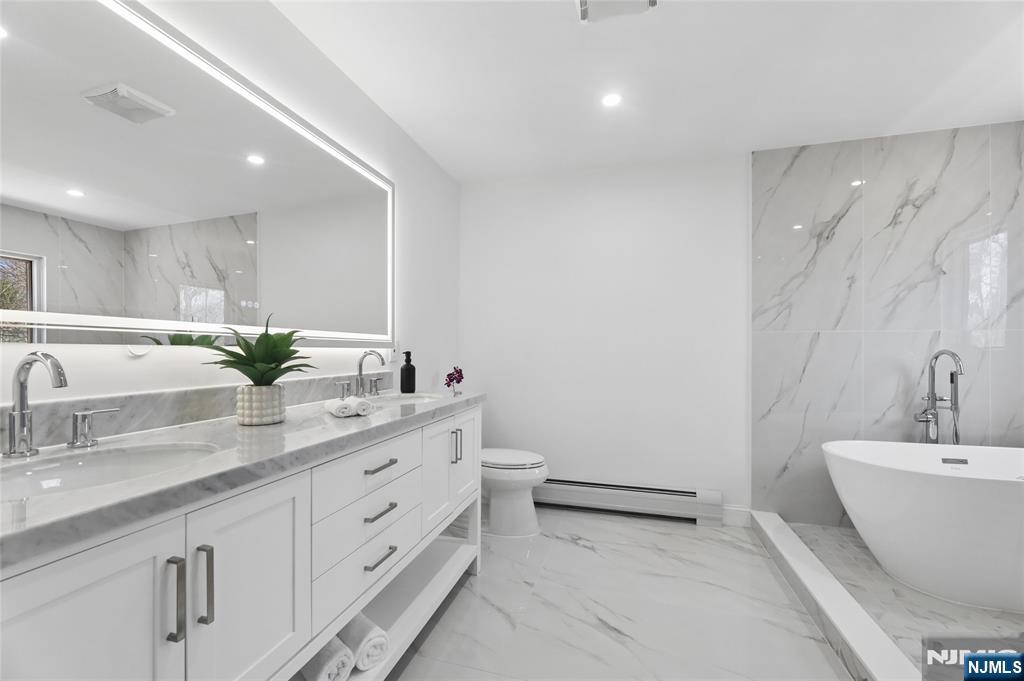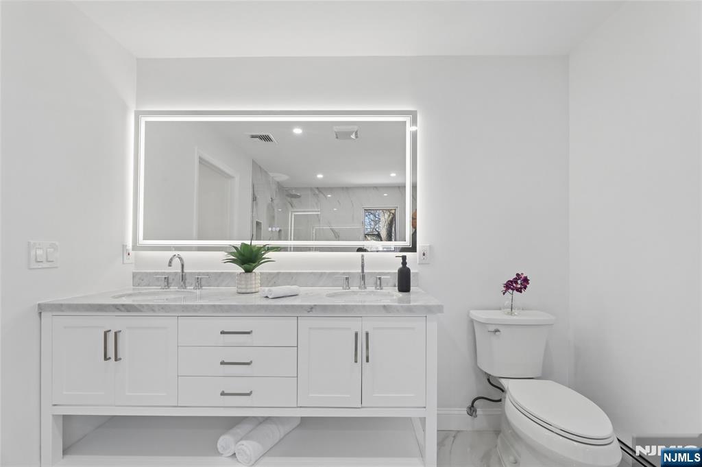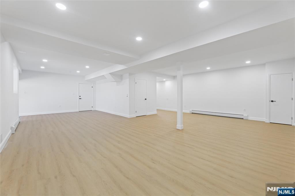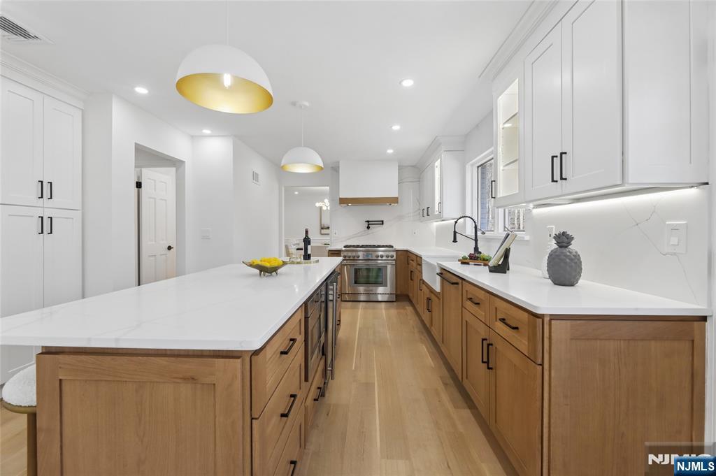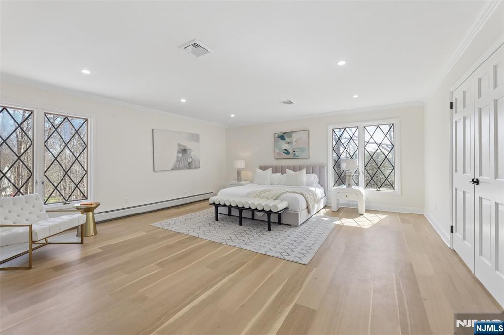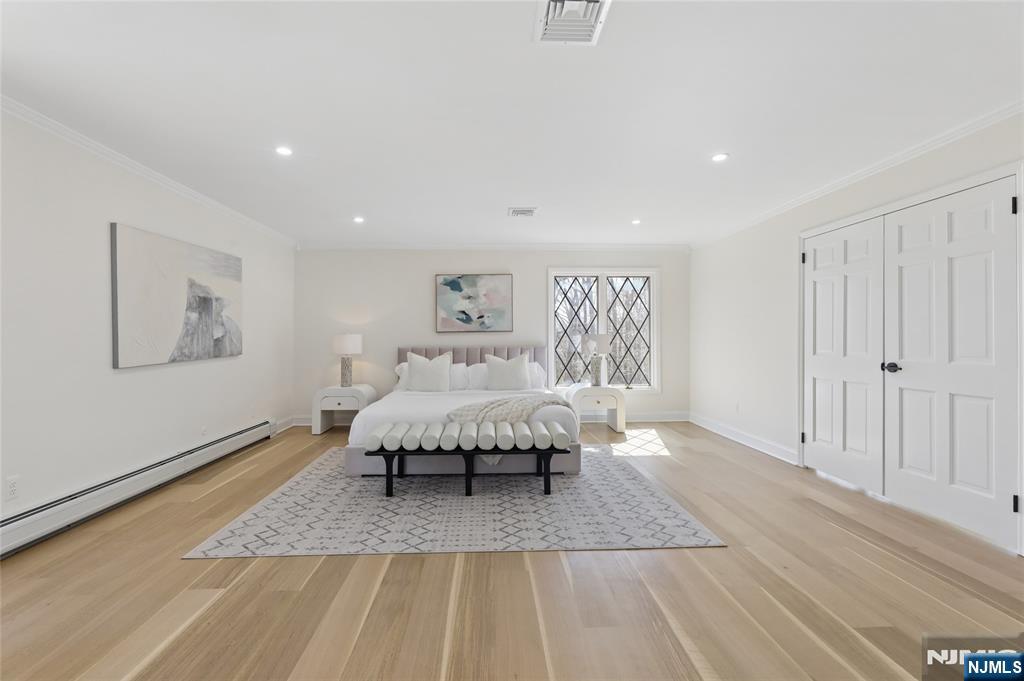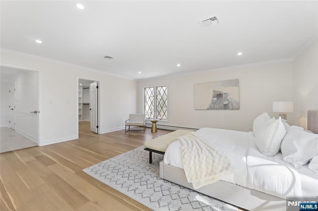 Set on a quiet dead-end street in Franklin Lakes, this fully renovated colonial offers privacy, scale, and standout design. A double French door entry opens to a welcoming foyer that leads into a true great room with double-height ceilings, exposed beams, and a full brick wood-burning fireplace wall. Oversized sliding doors extend the space to a large composite deck, creating seamless indoor-outdoor flow. The kitchen is built for both function and presence, featuring white oak cabinetry, high-end appliances, and a built-in 48â€Â쳌 refrigerator. Formal dining and living rooms sit just off the main living space, along with a well-designed powder room. Wide-plank 7â€Â쳌 rift and quartered white oak floors run throughout the home, complemented by abundant natural light from oversized windows. Upstairs, the dream primary suite is positioned for impact and privacy, offering generous proportions, a Juliet balcony overlooking the great room, a huge custom walk-in closet, and a distinctive wet room-style bathroom. Three additional bedrooms, a full bath, and a second-floor laundry room complete the level. The walkout basement adds significant usable space with a massive rec area and soaring ceilings, ideal for a variety of uses. The property is set on a picturesque 1-acre lot with a U-shaped driveway and a charming pond, offering both curb appeal and a unique outdoor setting.