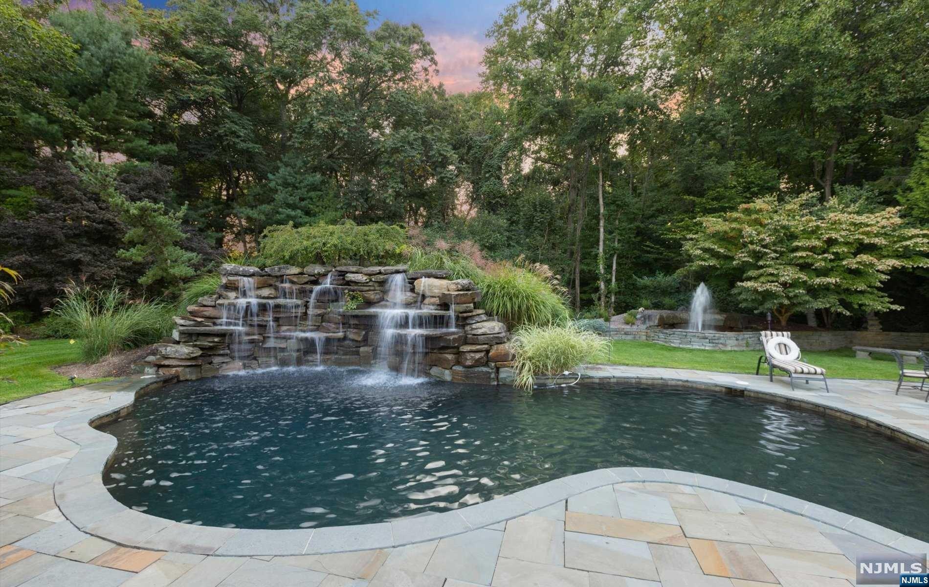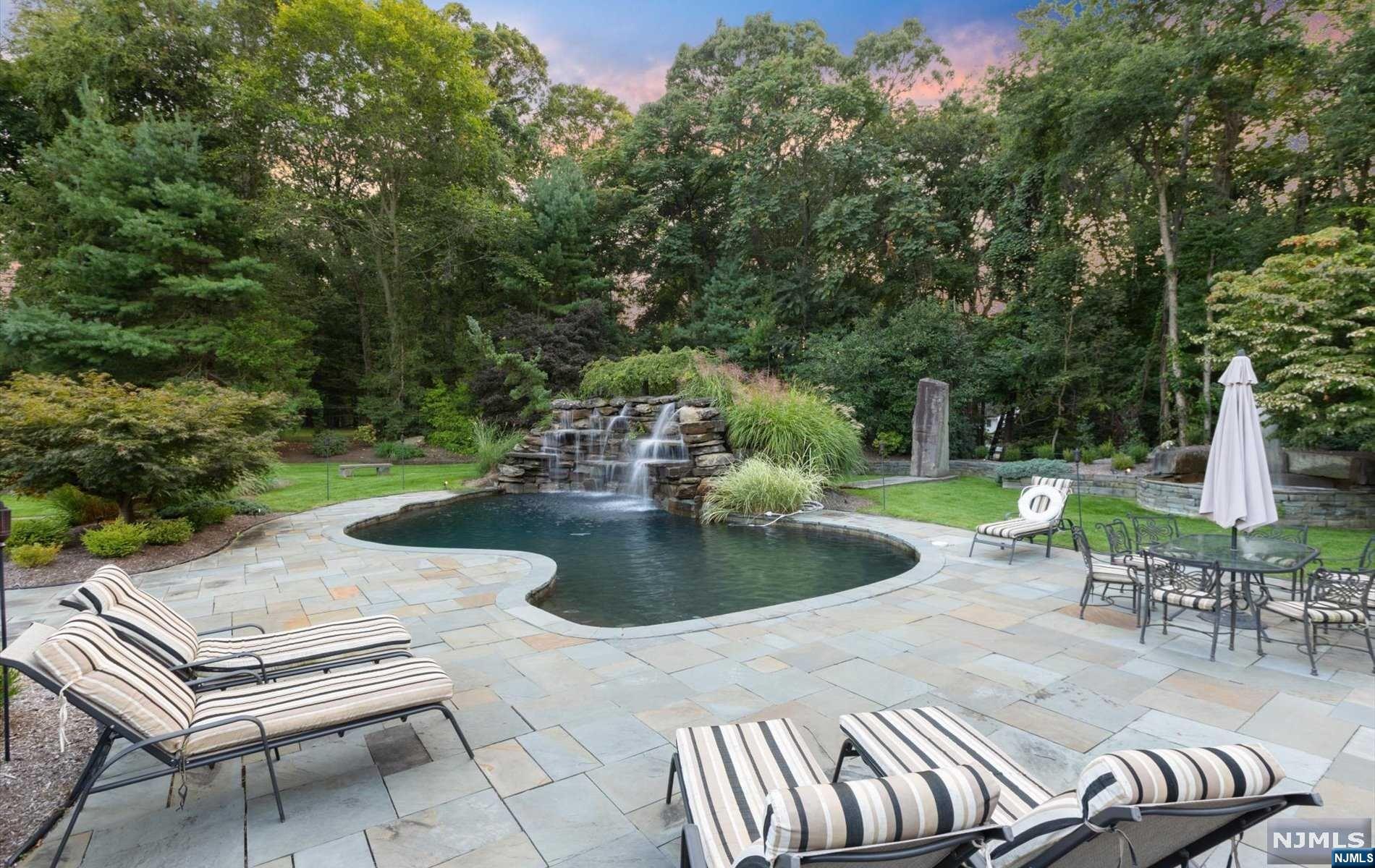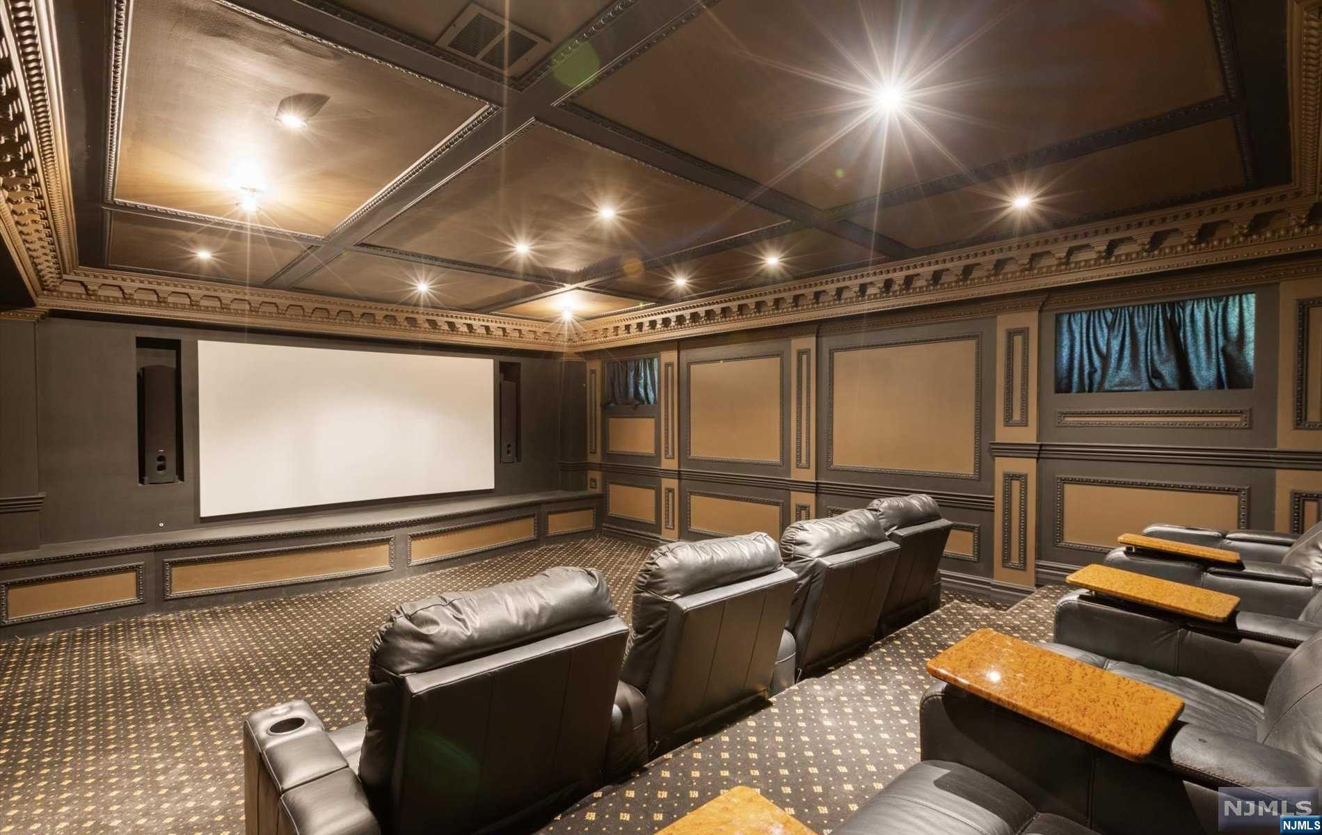 Le Palais of Saddle River. Over 10,000 sq ft of luxurious space greeted by a 2 1/2 story foyer featuring Italian ironwork on its stunning bridal staircase. The ballroom impresses w/ soaring 24-ft ceilings w/ extensive wood trim, 3-ft corbels, and 2 imported crystal chandeliers. The new GCEIK is a culinary dream, equipped w/ 60" Wolfe range and Miele appliances, completed w/ Soho-style open ceiling rafters, Waterstone faucets and Calacatta marble. The 14-seat frml DR is perfect for all affairs. A primary suite w/ cozy sitting area, oversized WIC, and all-marble bath enjoys a private terrace as well. 4 additional en-suite BDRMs 1 w/ spiral staircase to a private loft and another w/ a terrace is perfect for families and guests alike. Additional highlights include a home theater, a dedicated gym, and a seven-car garage. Outside the heated free formed gunite pool w/ a stunning 8' waterfall, surrounded by a bluestone patio and an outdoor cabana perfect for entertaining: WATCH VIDEO TOUR