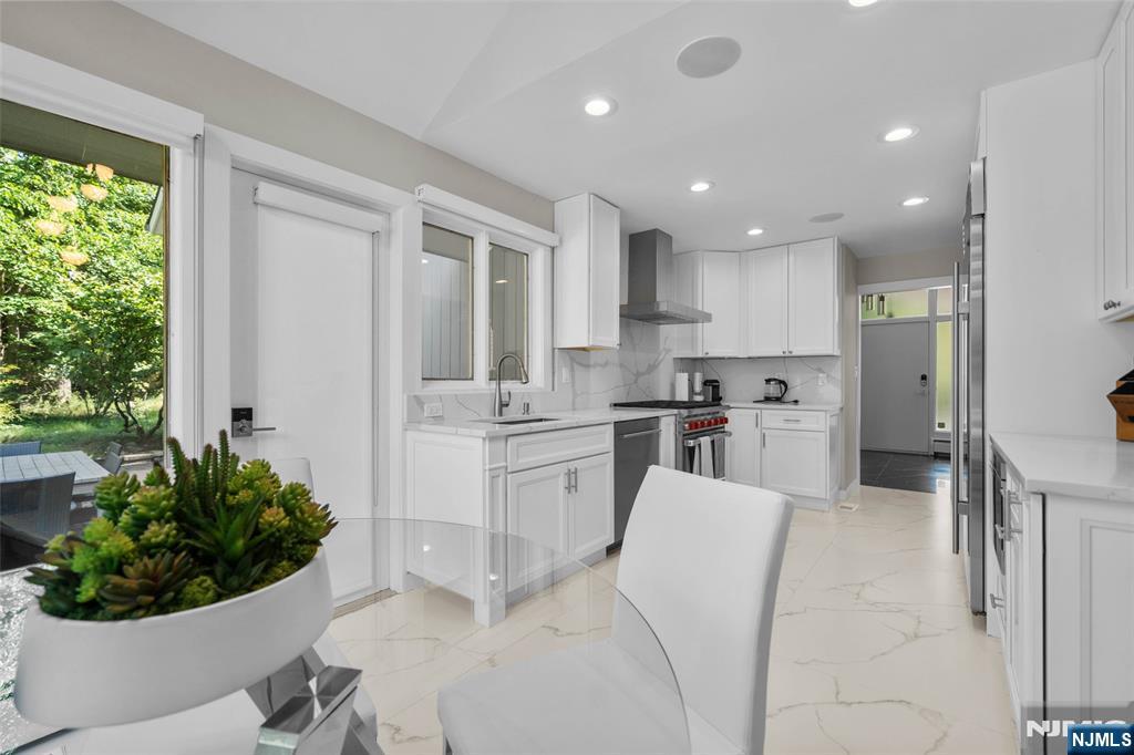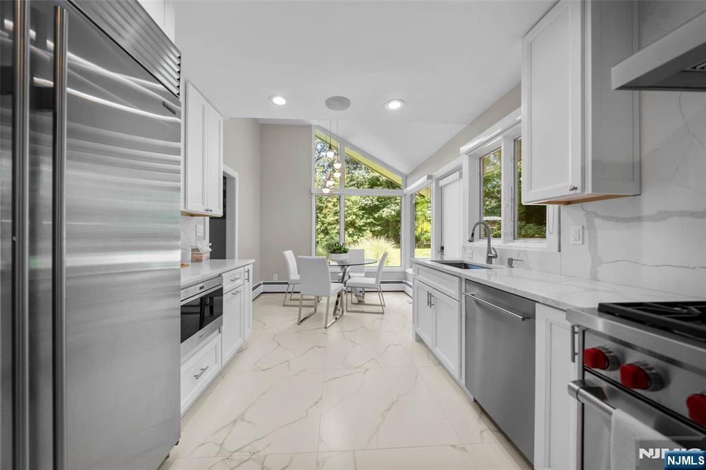 Completely updated and renovated 4 bedroom, 2.5 bath contemporary split-level style home set on a lush, park-like acre in prestigious Upper Saddle River with a beautiful in-ground pool and backyard. Stunning finishes inside and out. The gourmet kitchen features high-end Sub-Zero & Wolf appliances with a breakfast nook overlooking the peaceful and serene backyard. Enjoy elegant entertaining in the formal dining room and spacious living room with FP and vaulted ceilings. Finished lower level with its own private entrance makes ideal space for Rec Room, home office, or home gym. Finished basement with plenty of storage and large rec room. Primary bedroom with ensuite full bath and WIC. Built-in speakers and security cameras. Attached 2-car garage with direct access into the home. Large driveway can accommodate multiple vehicles. Step outside to the stunning outdoor spaces with a large patio, fire pit, basketball court, and fenced-in pool area with a spa-like atmosphere. Beautiful lush landscaping and charming covered front patio. Conveniently located near major highways, shopping, and top-rated schools. Also available for sale. Fully Furnished!