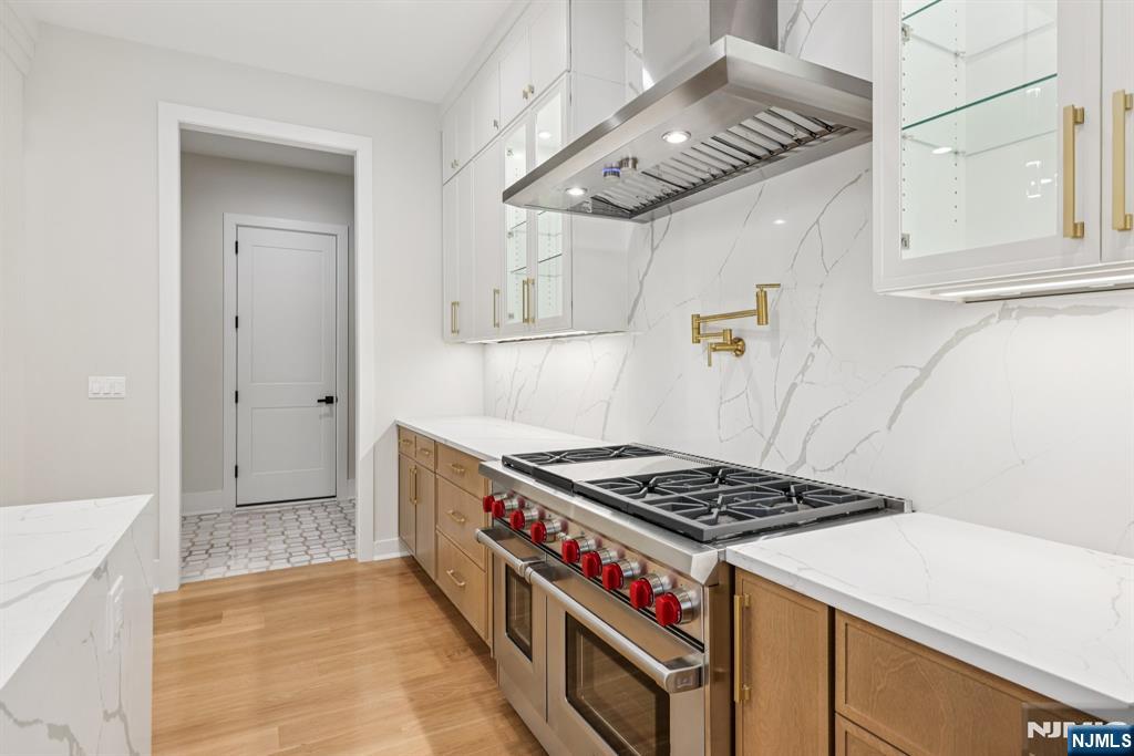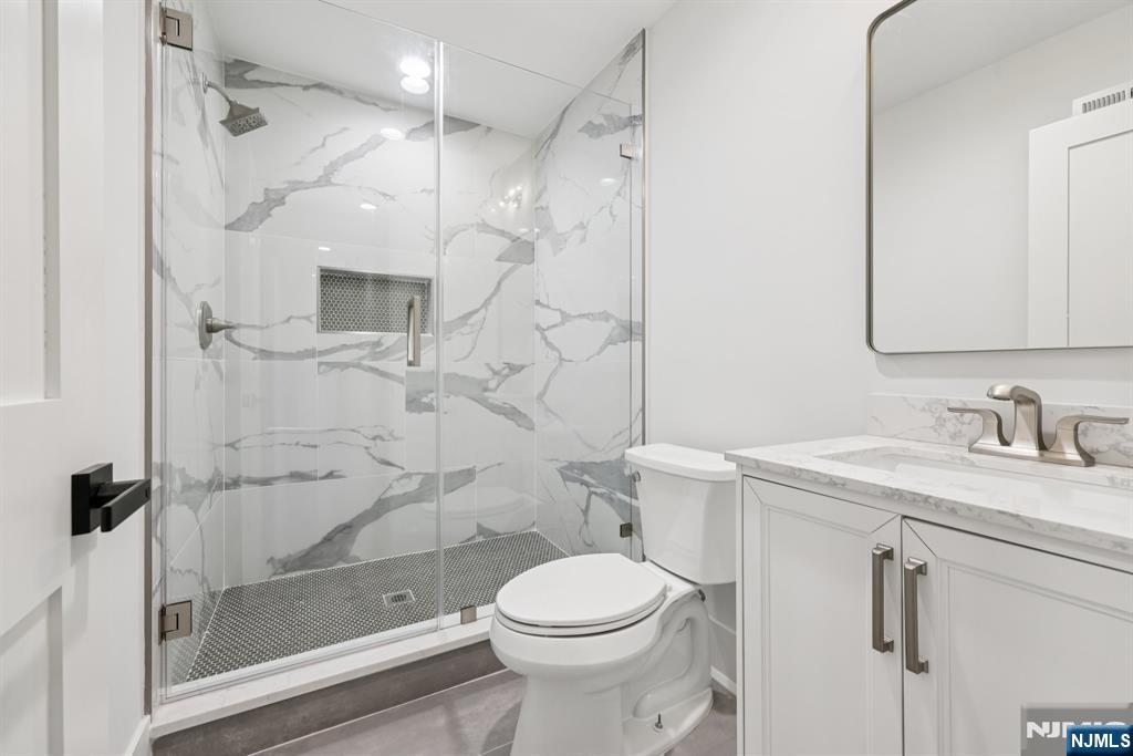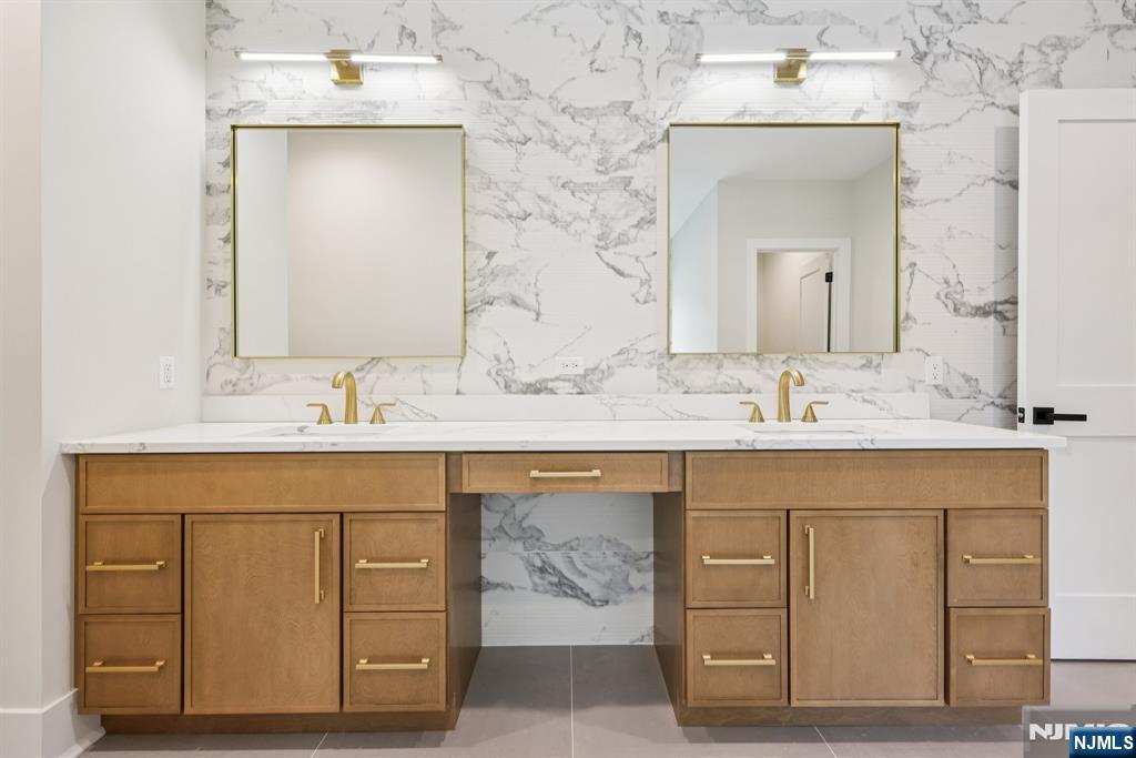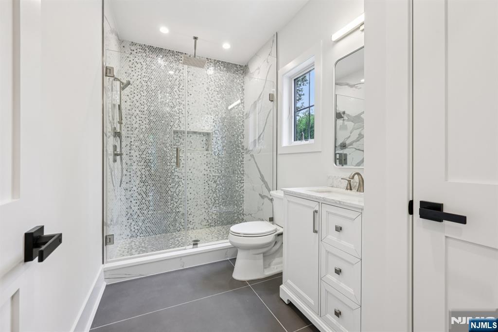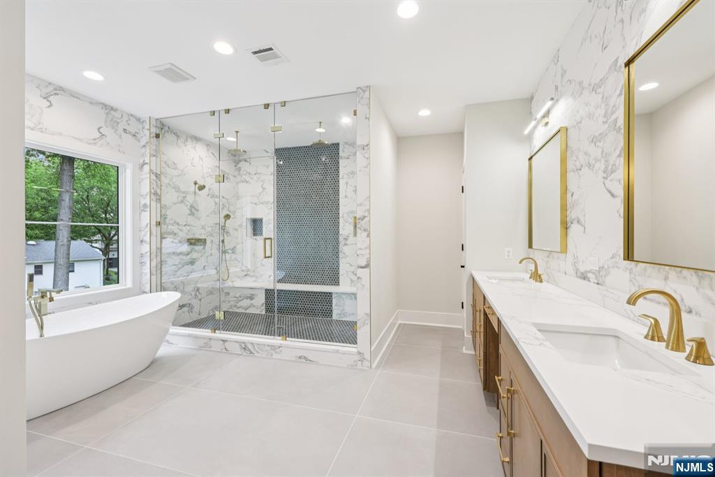 Brand new construction masterpiece on the ultra-desirable West side of Paramus featuring 6 bedrooms and 6 1/2 bathrooms. Modern 2 story entry foyer w/heated floors leading to formal LR & formal DR w/accent walls, & beautiful 6" white oak hardwoods throughout. Butler's pantry w/wet bar leads to dream kitchen w/waterfall island, full quartz backsplash, professional appliances, breakfast area, and hidden walk-in pantry. The large family room w/elegant fireplace provides for seamless entertaining. A sleek powder room, bed w/full bath, & mudroom complete the 1st floor. The 2nd floor features a primary suite w/custom accent wall, 2 spacious walk-in closets & spa bath w/huge walk-in shower, soaking tub, & heated floors. 3 additional ensuite bedrooms with walk-in closets, plus a spacious laundry room, complete the 2nd floor. Full finished basement w/home theater, gym, rec room w/wet bar, bed, full bath, and plenty of storage. 10 ft ceilings on the 1st floor and 9 ft ceilings on the 2nd floor and in the basement, security cameras, speakers, central vac, sprinklers, generator, & fully fenced oversized yard with a covered patio perfect for all of your entertaining. Paramus is home to amazing schools, LOW TAXES, easy commuting, & great shopping. Don't miss your chance to make this home yours!