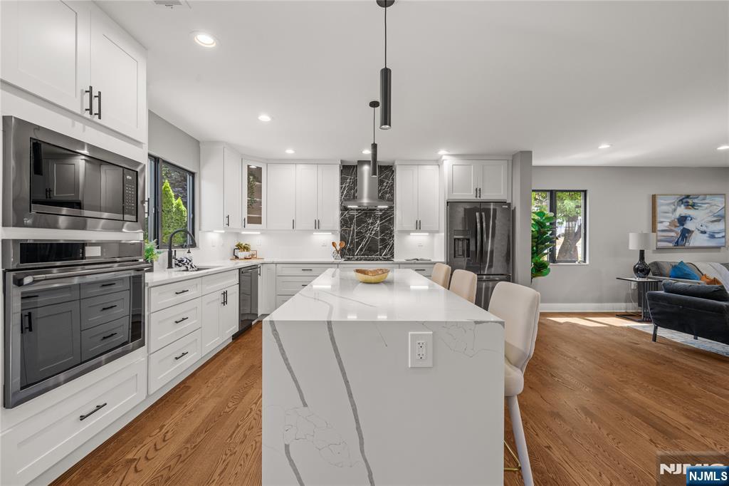 Welcome to your dream home in Fair Lawn, one of Bergen County's most desirable communities! This stunning 5-bedroom, 3-bath residence is brand-new construction on its existing foundation, showcasing exceptional craftsmanship and attention to every detail. The first floor offers a bright and spacious living room with a cozy fireplace, an elegant dining area, and a chef's kitchen featuring premium finishes and modern appliances. A convenient first-floor bedroom and full bath provide the perfect setup for guests.Upstairs, the luxurious primary suite boasts a spa-like bathroom and generous closet space, complemented by three additional bedrooms and another full bath. The fully finished basement expands your living options ideal for a recreation room, gym, home office, or media space. Step through the kitchen's sliding doors onto a beautiful deck that overlooks a spacious backyard and a detached garage, perfect for storage or a workshop. With its flawless design, thoughtful layout, and top-quality finishes throughout, this home offers the very best of Fair Lawn living move right in and make it yours!