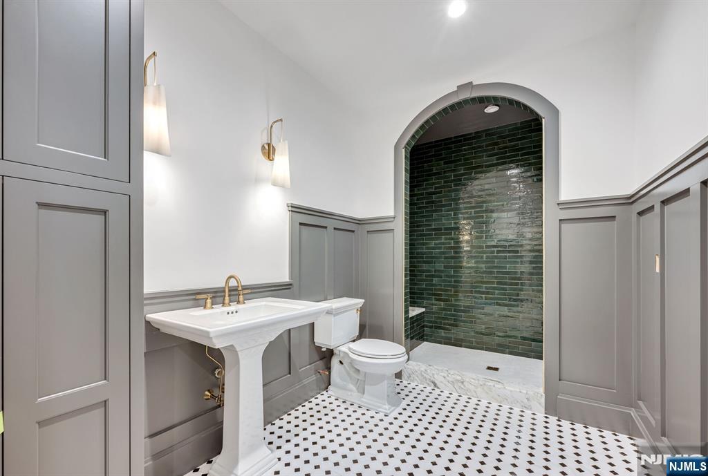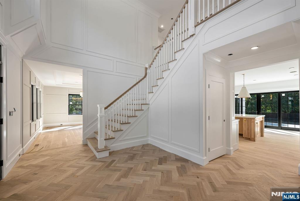 Stunning NEW construction Hampton style home located on the East Hill of Upper Saddle River is the epitome of luxury. This custom-built masterpiece by high end builder showcases 7,961 sq ft on 3 levels. Gorgeous exterior w/ covered front porch, sweeping roof lines & large level property. Enter to a 2 story EF w/ wide plank white oak floors, banquet size DR w/cstm clg, large LR w/panel walls. Dream designer kitchen w/ breakfast rm with all the amenities, custom island, high end appliances, built-in coffee bar, opens to outdoor living space w/raised 36' x18' bluestone patio w/outdoor kitch & FP. 2-story great rm w/ vaulted ceiling, custom beams & FP opens to patio. First fl BR, full bath, pantry, butler pantry, powder rm, & built-in mudroom area w/ access to 3-car garage w/ EV charger complete the 1st level. The second level offers 5 large BRs, 3 en-suite, 2 Jack & Jill, office, & laundry rm. The primary suite is a masterpiece w/ vaulted ceiling showcasing custom beams, FP, 2 WICs, & luxurious bath w/ oversized marble shower, dual vanity & soaking tub. The finished lower lvl offers a 7th BR, full bath, gym, theater, rec area, kitchen, & 2nd laundry rm. CAT5 cables all BRs, gym, theater, office, & great rm. Movie rm w/ 120 in. retractable acoustic weave screen, projector w/ wall speaker subwoofers & data tower. Security w/ 16 port w/ 9 cameras. Prewired for 6 Wifi hotspots. Wired speakers and dedicated amps to kitch, back patio & gym. 26 KW generator. Truly exceptional!