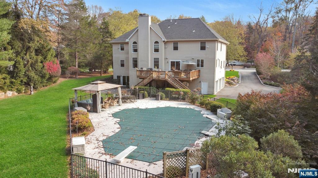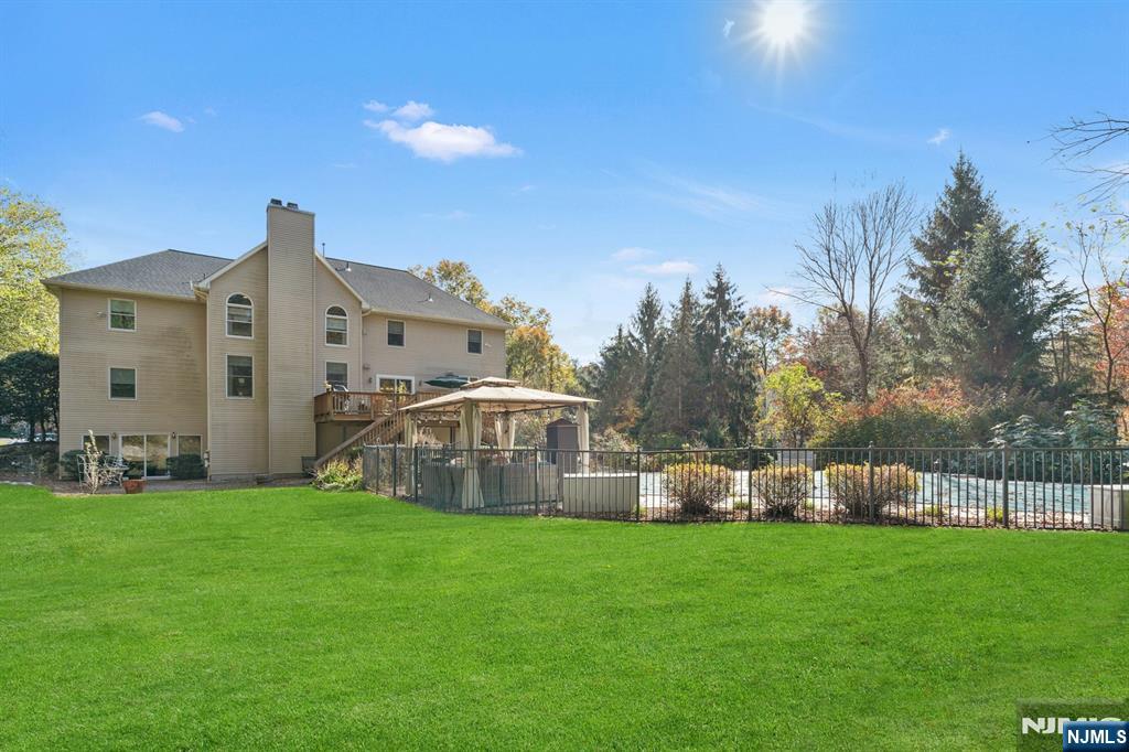 Welcome to 7 Valley Forge Drive, Oakland perfectly positioned near the heart of everything, yet set on a serene and private 1.31-acre property. This impressive 5-bedroom, 4-full-bath home offers a wonderful blend of comfort, space, and functionality. The main level features a convenient first-floor bedroom with an adjacent full bath ideal for guests or extended family. The two-story Great Room with a cozy fireplace creates a stunning focal point, while the formal dining room is perfect for entertaining. The expansive kitchen is a true showstopper with a large granite-topped island, quartz countertops, and plenty of space for gathering and cooking. Step outside to a beautiful deck overlooking the property, complete with a sparkling inground saltwater pool and fully fenced yard, your own private retreat! The walk-out lower level offers incredible versatility with a full bath, kitchenette with fridge and sink, guest area, and large recreation space great for entertaining or multigenerational living. A three-car garage with extra storage completes this exceptional home. Experience the best of Oakland living, privacy, convenience, and resort-style amenities all in one stunning property!