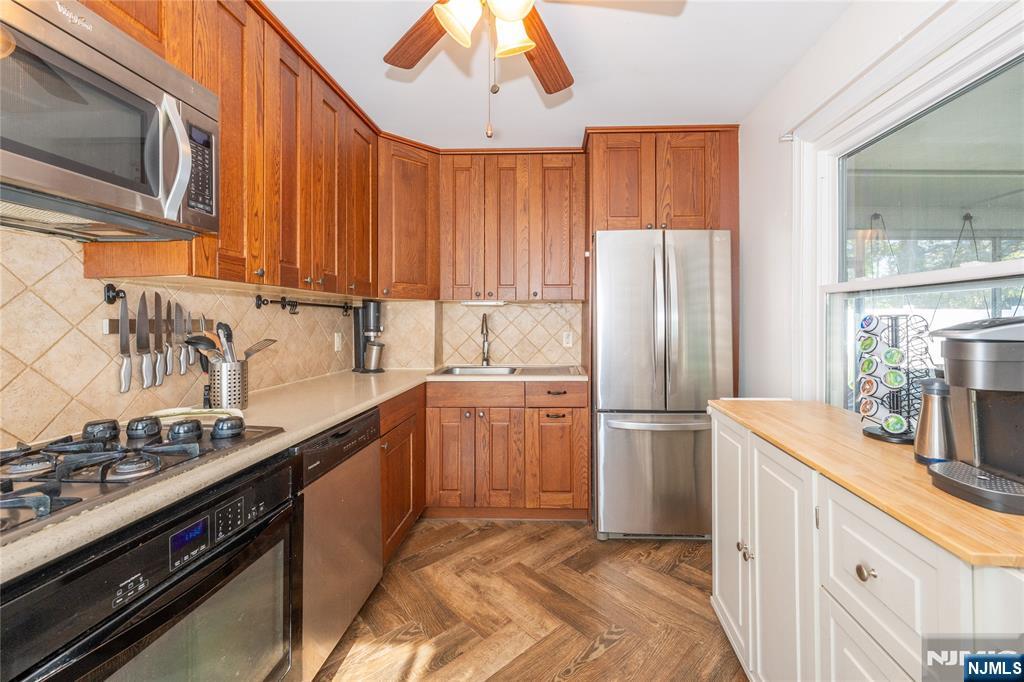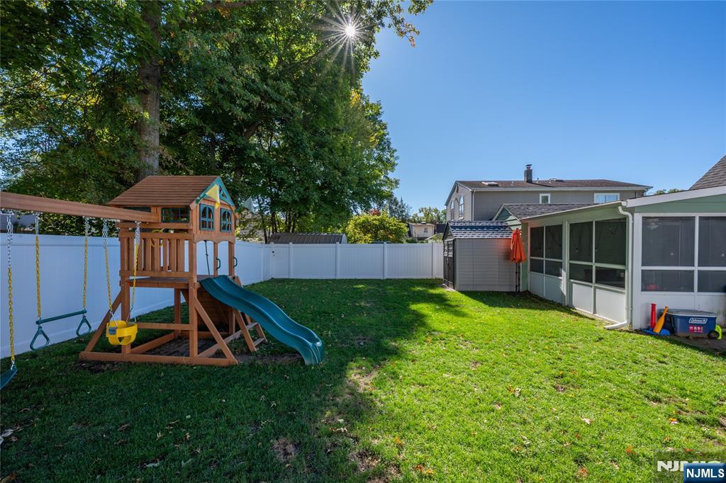 Welcome to this well maintained 3 bed, 2 bath home in highly sought-after Radburn Elem. School neighborhood (not HOA). Filled w/warmth & natural light, home offers a perfect blend of classic charm & thoughtful updates. The 1st fl features an inviting open-plan living & dining rm w/hardwood floors. Updated kitchen is complete w/SS appliances. Lovely 3 season rm overlooks the flat, fully fenced backyard & includes gate access to private neighborhood parkâ€â€쳌 perfect for outdoor play & relaxation. The 1st fl bedrm comfortably fits a king-size bed & is conveniently located near a newly renovated full bath featuring a step-in shower. Upstairs, 2 spacious beds offer jumbo closets, w/one large enough to double as a bonus rm or play area. Both levels boast beautiful hardwood flooring, newer windows, & efficient climate control w/central air on the 1st fl & ductless mini-splits upstairs. Additional highlights include a 1 car attached garage w/driveway for 2+ cars, finished basement w/rec rm, laundry, & storage space, as well as modern updates such as 4-years-young HWH, furnace & 1st fl A/C, 200AMP electric service. Ideally located near top-rated schools, houses of worship, shopping, restaurants, transportation, & the Radburn train station, this home offers convenience & community in one of Fair Lawn’s most desirable areas. Enjoy access to the town’s many amenities, incl. community pool, rec center w/gym, theatre, arcade & indoor walking track. Warm & welcoming, your