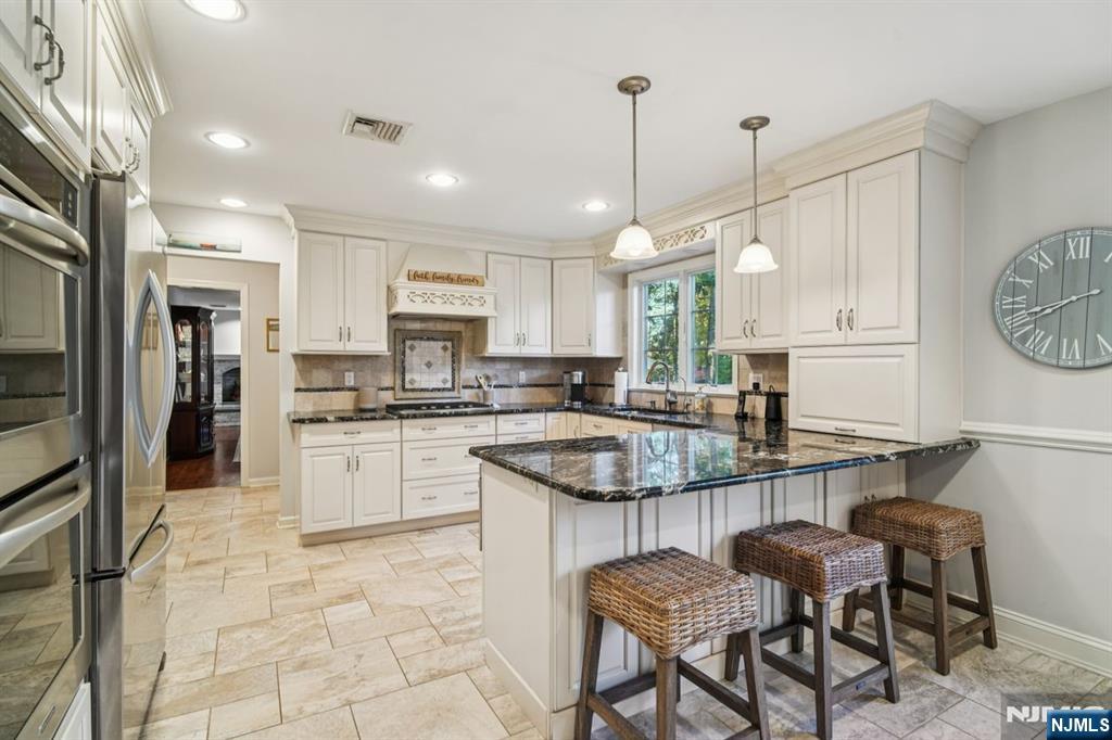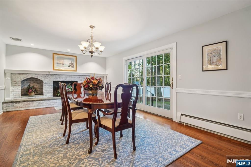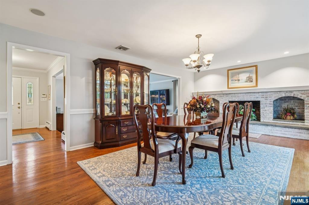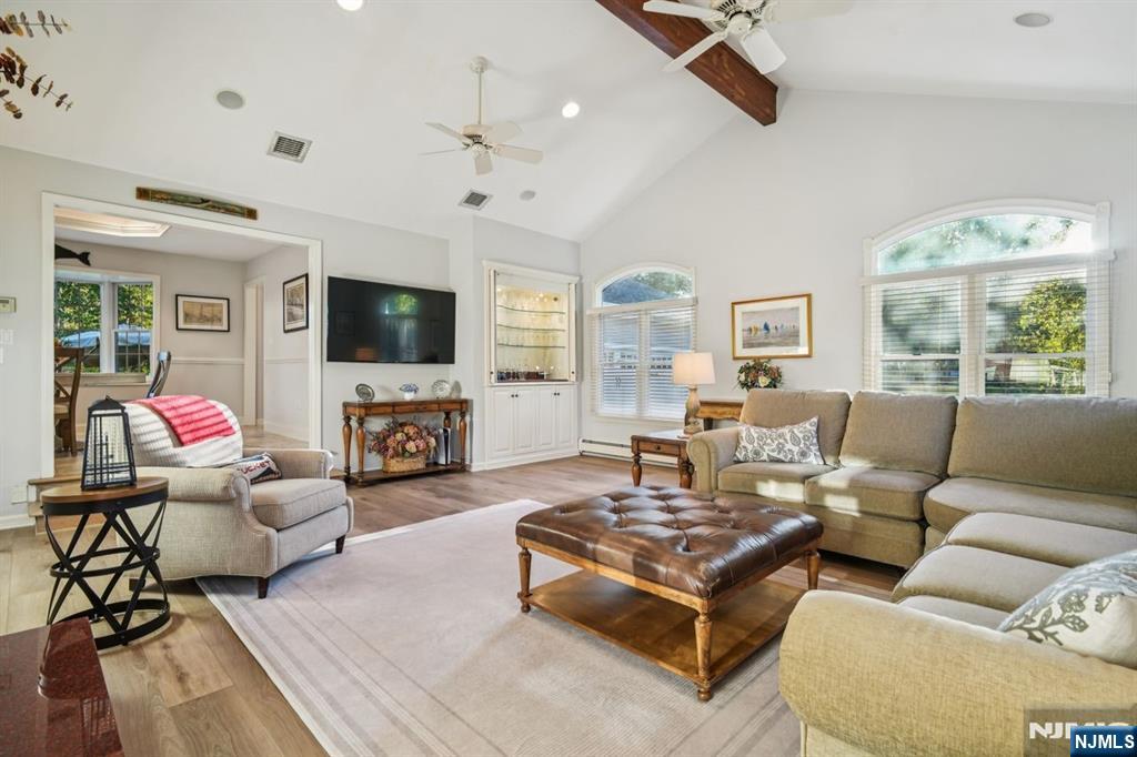 Absolutely immaculate 4 bedroom, 2.5 bath colonial located in the highly desirable Scotch Hills neighborhood of Mahwah. Set on a beautifully landscaped, serene, and private one-acre lot, this home offers space, elegance, and comfort in a peaceful setting. The large, updated eat-in kitchen features heated floors, two ovens, abundant counter space, and a view of the expansive backyard, flooding the space with natural light. The main level also includes a warm and cozy living room with a woodburning fireplace, a formal dining room and formal living room large enough to accommodate banquet-style gatherings. A tremendous great room addition off the kitchen offers even more entertaining space, complete with vaulted ceilings, a wet bar, and a third fireplace. Upstairs, you will find four spacious bedrooms, including the primary suite with its own private bath, plus an additional full bathroom with modern updates. Additional highlights include a two-car garage with an attached storage room, hardwood floors throughout most of the home, and thoughtful upgrades. Enjoy privacy and tranquility while still being conveniently close to top-rated Mahwah schools, major highways, shopping, dining, and NYC transportation. This exceptional home in one of Mahwah’s most sought-after neighborhoods is truly move-in ready. Don’t miss the opportunity to make it yours!