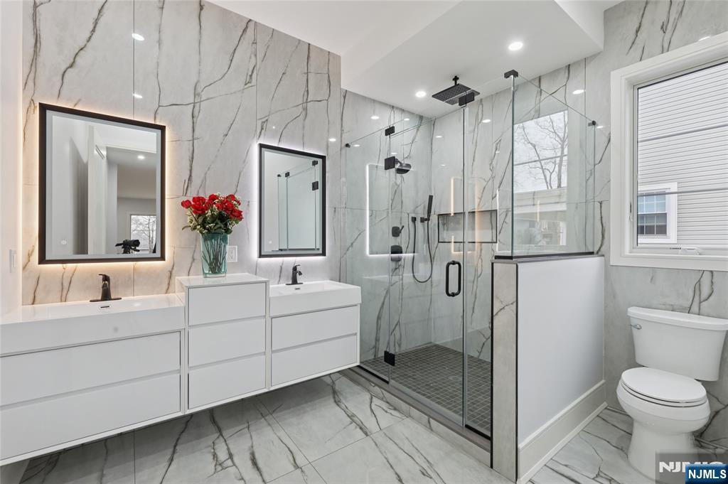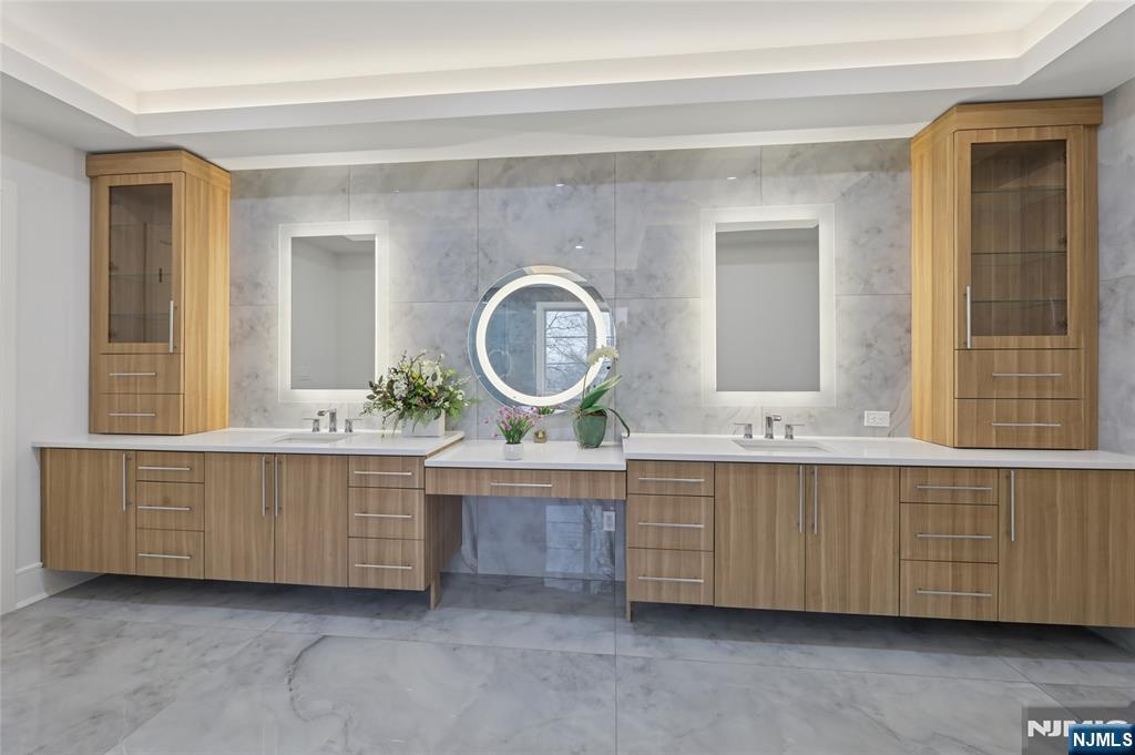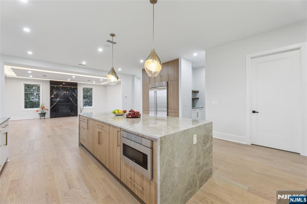 Welcome to this exceptional new construction home set on an oversized lot in Paramus, offering nearly 10,000 square feet of thoughtfully designed living space with 6 bedrooms and 6.5 bathrooms. The main level features soaring 10-foot ceilings, a dramatic entry foyer, impeccable top-of-the-line finishes, and a private bedroom suite that can be used as an in-law suite. The designer kitchen boasts high-end appliances and Taj Mahal natural stone countertops, flowing seamlessly into the main living and entertaining areas. Additional highlights include a custom wrought-iron front door, 3-car garage, and a large covered rear porch overlooking a beautifully manicured backyard with breathtaking sunset views. The second level showcases an impressive primary suite with double-door entry, sitting room or office, custom his-and-her walk-in closets, and a spa-like bathroom, along with three additional junior suites featuring walk-in closets and en-suite baths. The finished lower level offers a home theater, gym, expansive recreation room with bar, walk-out access to the yard, and an additional bedroom with full bathroom. Completing the home is a large paver driveway with parking for over 10 cars and professionally landscaped grounds providing a private, gated feel.Owner has real estate license