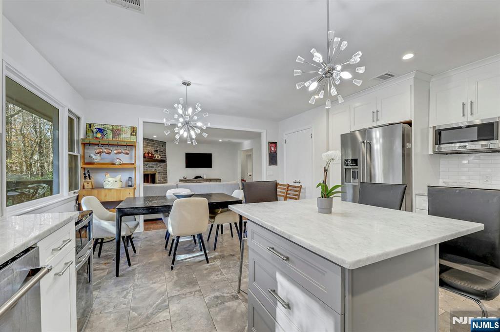 Beautifully renovated, expansive Ranch offering over 2,400 square feet of sun-filled living on one level. This home features an open-concept kitchen and family room, hardwood floors throughout the main living areas, and generous formal living and dining rooms that create an ideal flow for everyday living and entertaining. The chef’s kitchen boasts a 6-burner Viking range, center island, white shaker cabinetry, and granite countertops, opening to a spacious family room with stone fireplace and sliders to a large deck overlooking a private, wooded backyard. Four bedrooms include a serene primary suite with renovated en-suite bath. Convenient main-level laundry. Full unfinished basement with wood stove and direct access to a two-car garage offers endless potential. Ideally located across from protected woodlands for privacy, yet close to shops, dining, and major highways including GSP and Palisades Parkway. NOTE: House has well water, not municipal water.