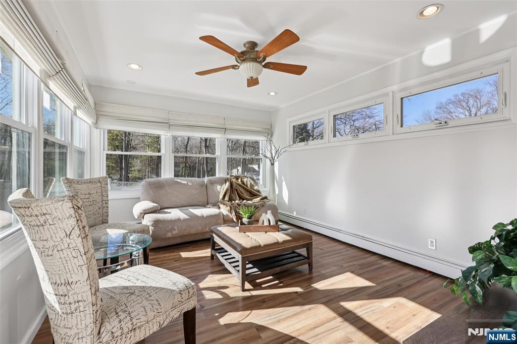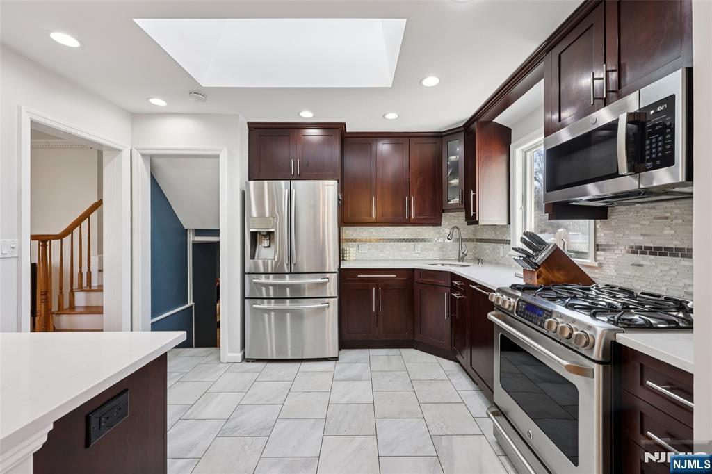 Welcome to this meticulously maintained Oradell residence, where classic split-level charm converges with modern updates. Nestled in a prime commuter location and close to top-rated public schools, this home beams with pride of ownership from the moment you arrive. Enter the natural light-filled main level and find a seamless open layout between the spacious living room, formal dining area, sunroom, and a bright, modern eat-in kitchen with a skylight, - all designed for both daily living and effortless entertaining. Retreat to the upper levels to find three ample bedrooms - with hardwood floors preserved under the carpet - and remodeled bathrooms. The ground level offers a versatile family room with a full bathroom and attached garage access. Descend to the fully finished basement with plenty of space for recreation or an extra living/office space. Outside, the large, level, and fully fenced backyard provides a private space for relaxation or play. Complete with a 10-year-young roof and a series of 2013 renovations, this home is move-in ready and perfectly positioned less than a mile from Oradell Public Schools, the train station, and major highways for easy access for NYC commuters.